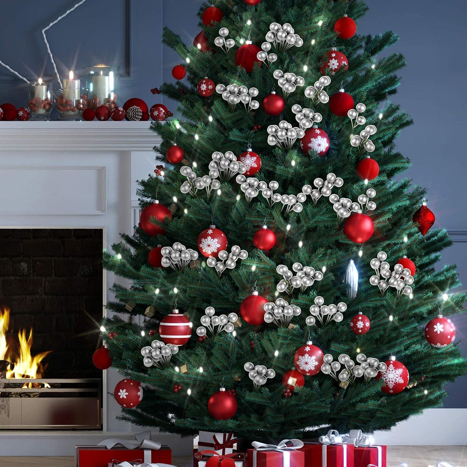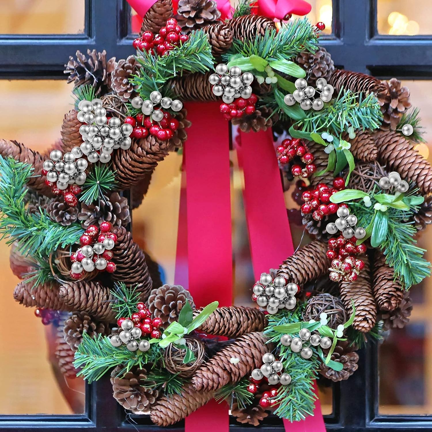 WILLBOND 200 Pieces Artificial Holly Berries for Christmas Tree Decor Fake Berry Stems Picks Set Winter Home Decor Crafts DIY Wreath Garland Christmas Decoration(Silver)