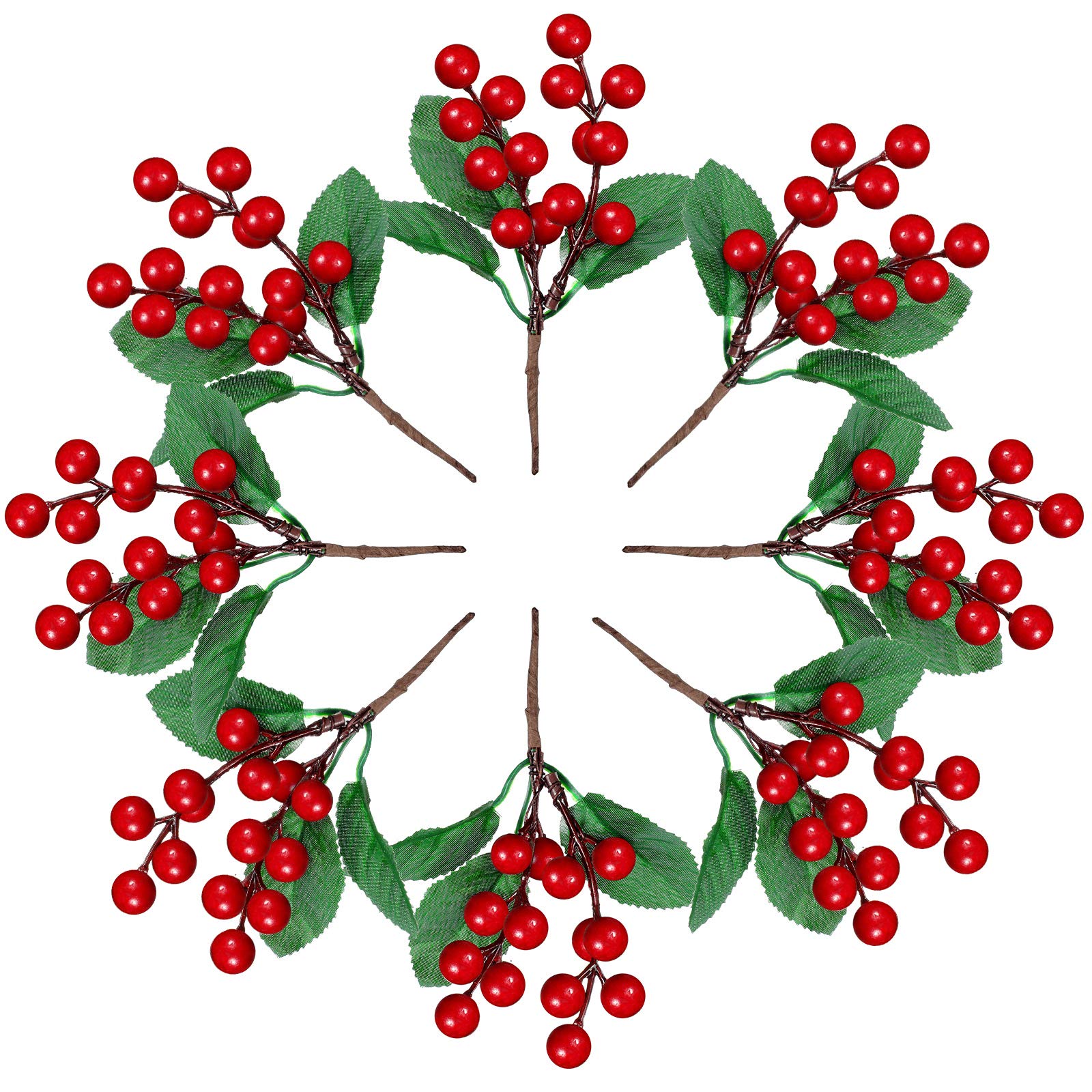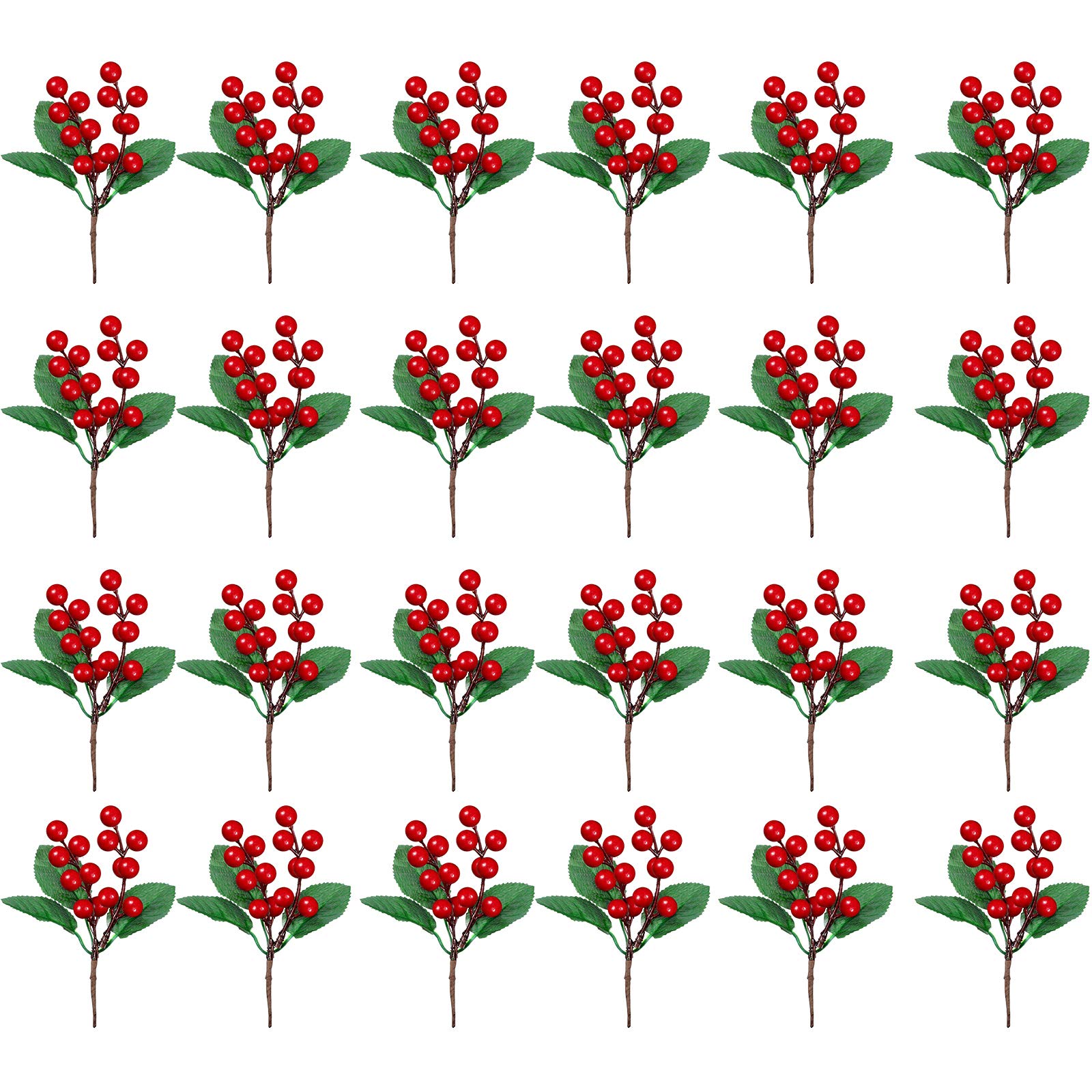 WILLBOND 24 Pieces Artificial Christmas Berry Picking Berry Branches Holly Leaves Picking Fake Berries Christmas Crafts Party Holiday Decoration (Natural Color)