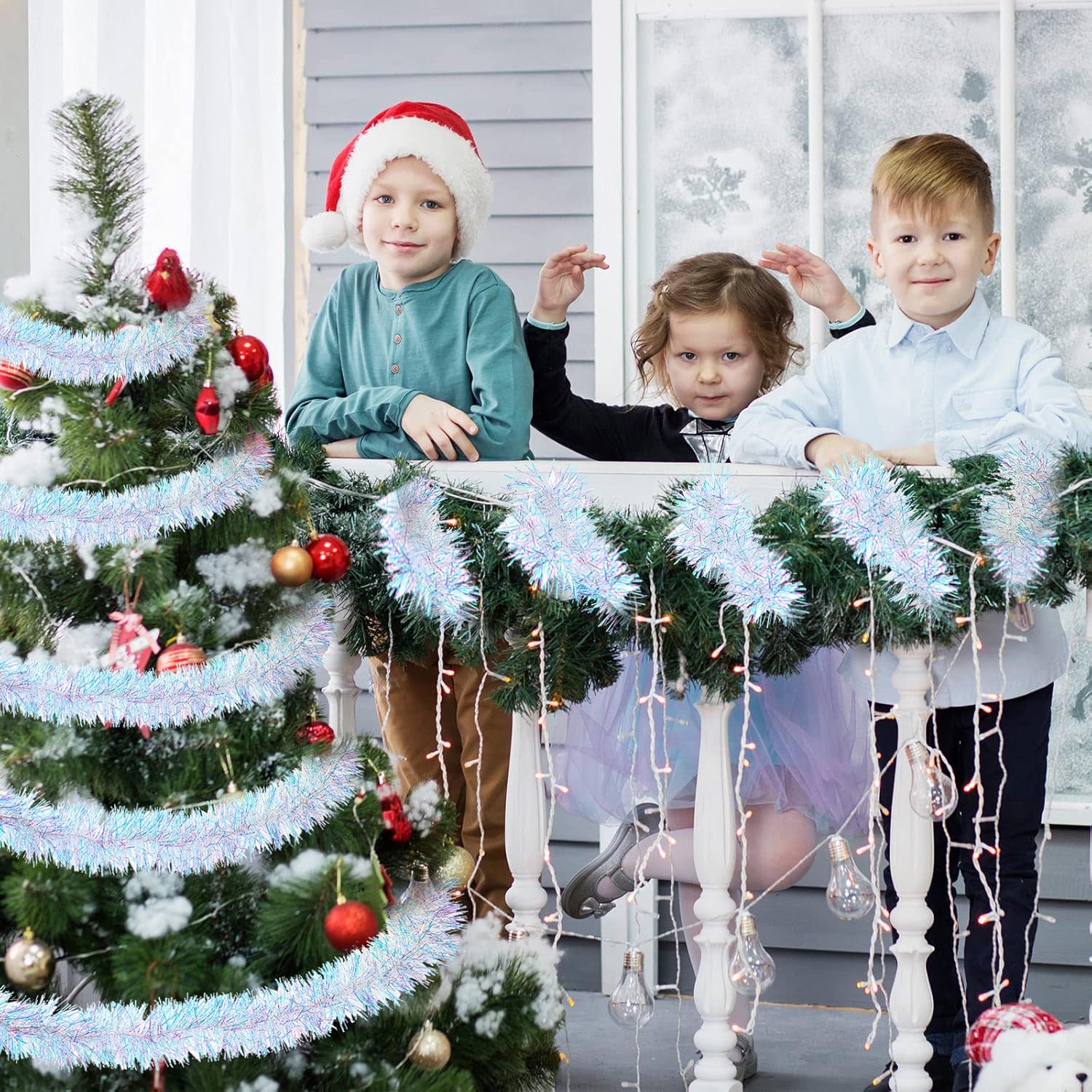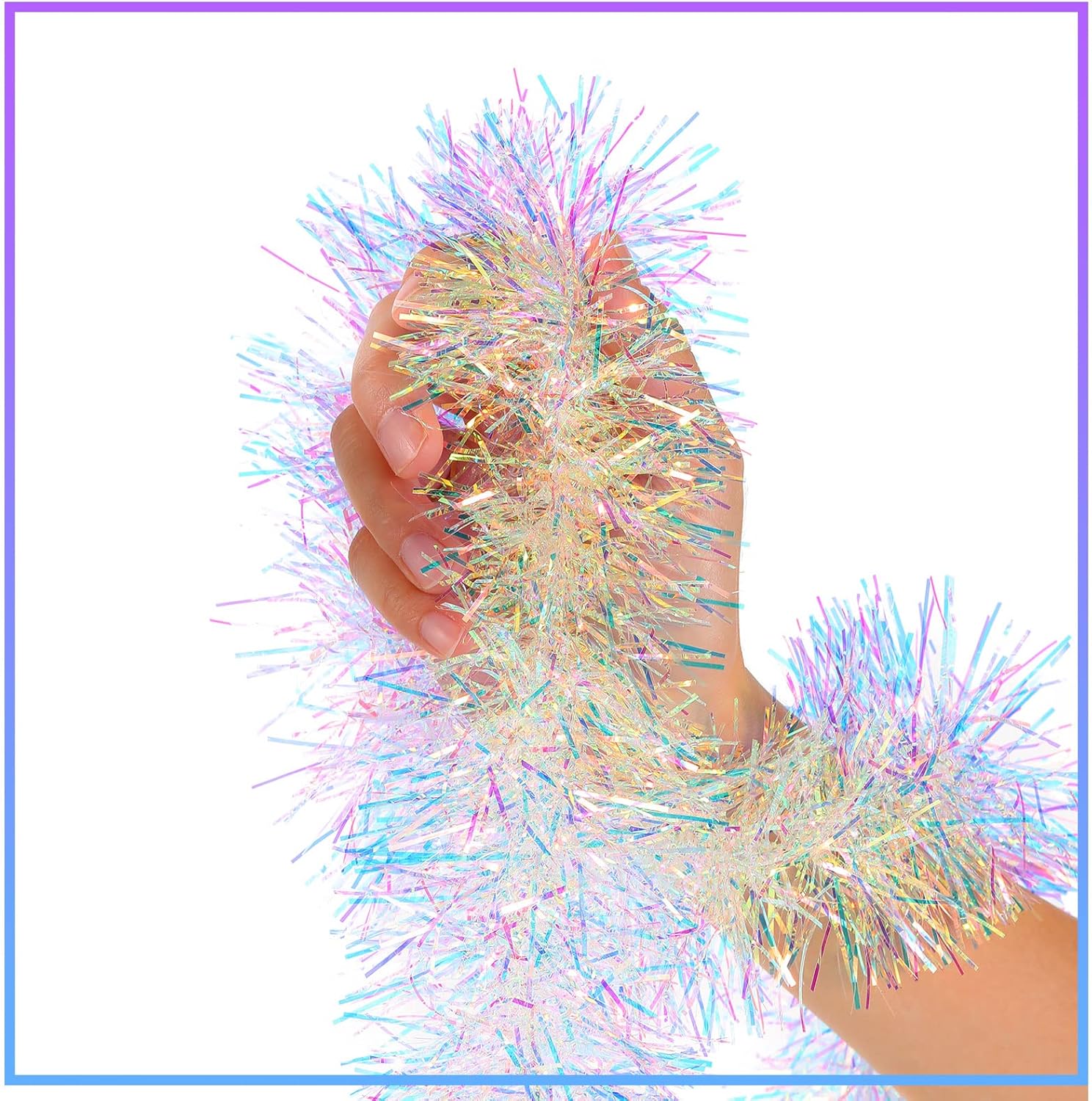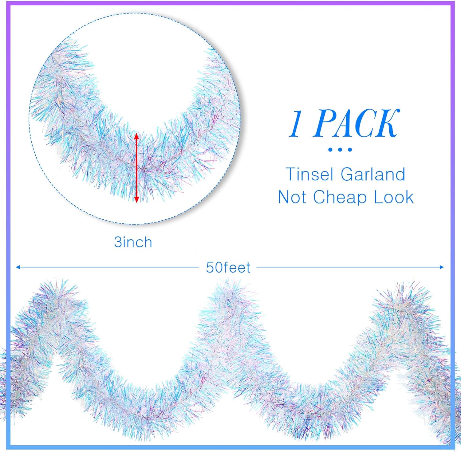 Package includes: 1 pack Christmas tinsel garland, 50 feet in length and 3 inch in width, with a beautiful soft and fluffy look Long enough to circle the big Christmas tree from head to toe Add festive atmosphere for your homeSuit for: the iridescent metallic hanging garland is suitable for Christmas, Year, wedding, birthday and any party or anniversary, you can put it anywhere you like, such as living room, bedroom, garden, hall, supermarket, etc.