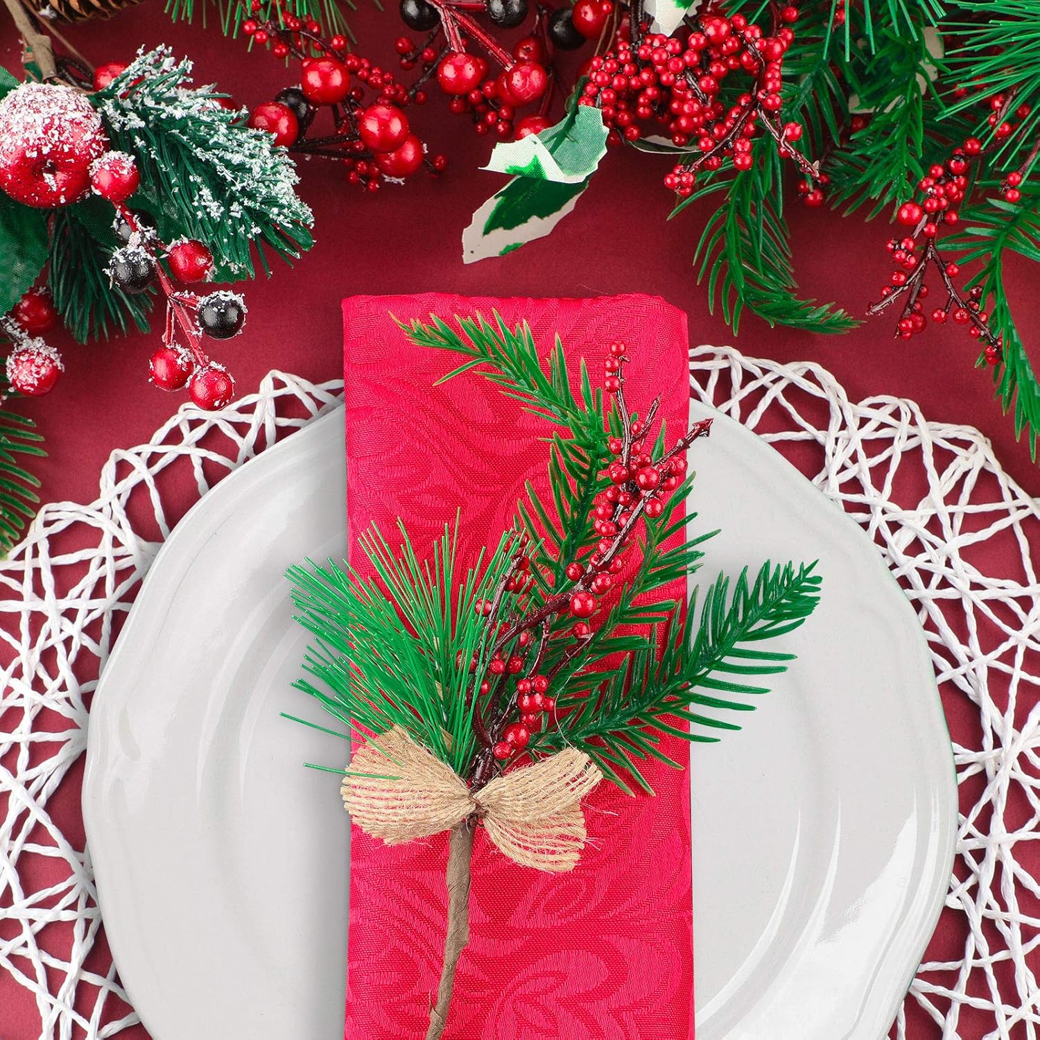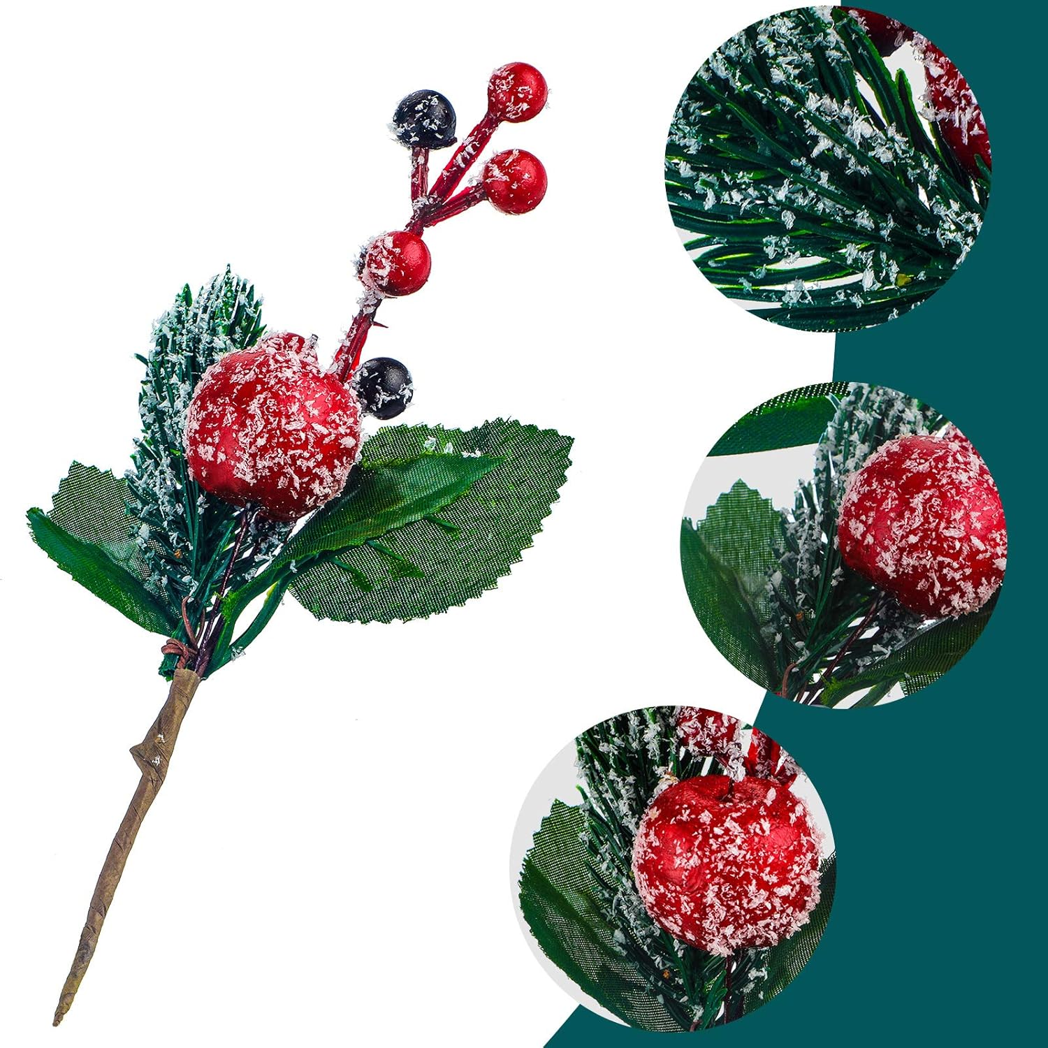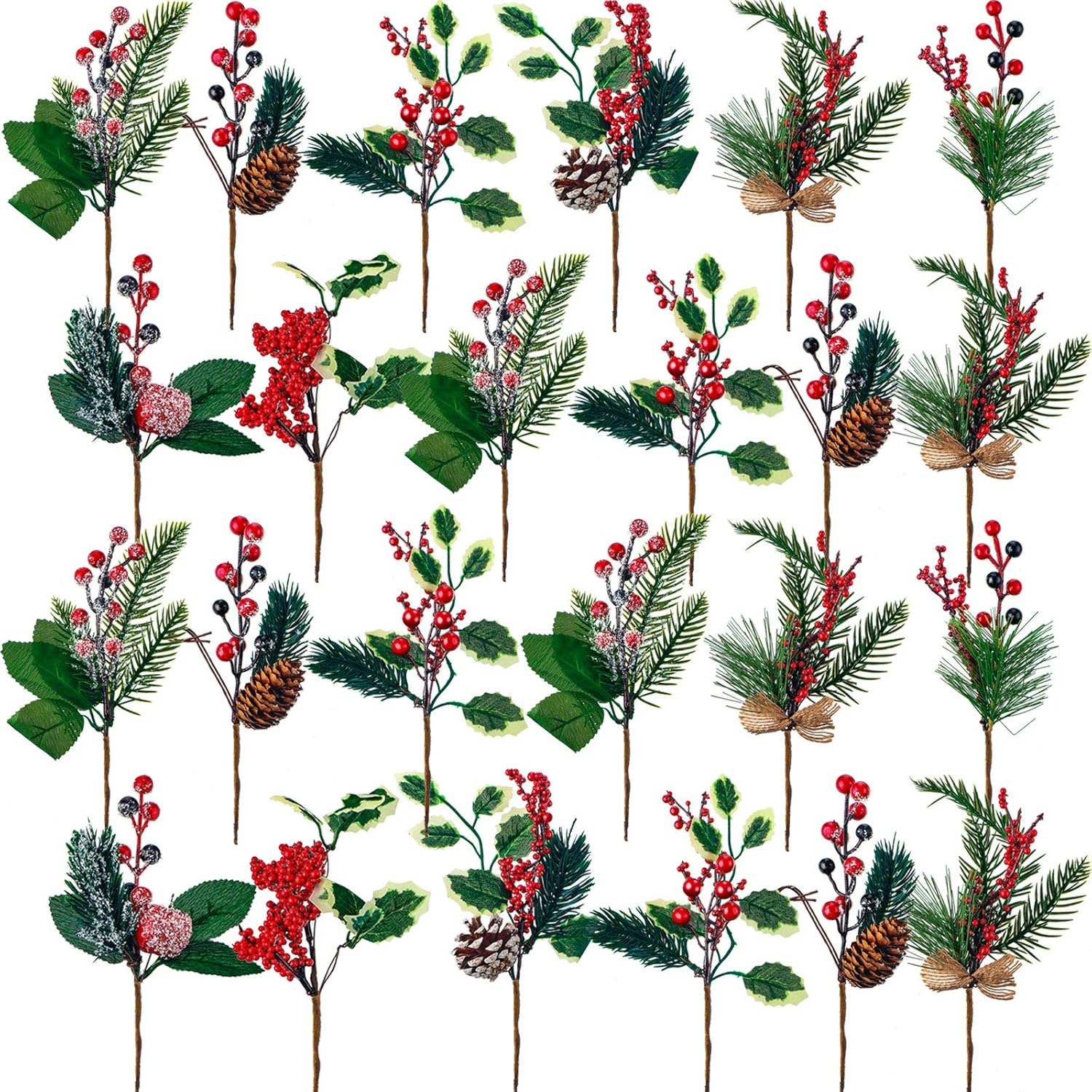 WILLBOND Artificial Christmas Tree Picks Red Berry Pine Picks Spray Berry Branches Holly Pine Flower Pick Berry Pinecones for Christmas Crafts Party Festive Home Decor (Classic Style,24 Pcs)