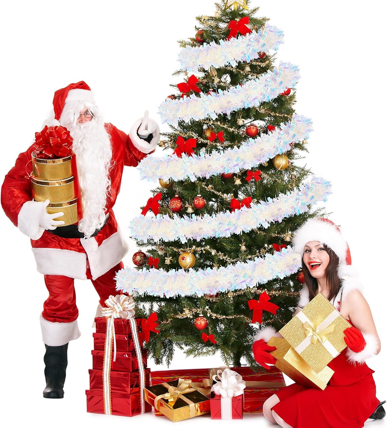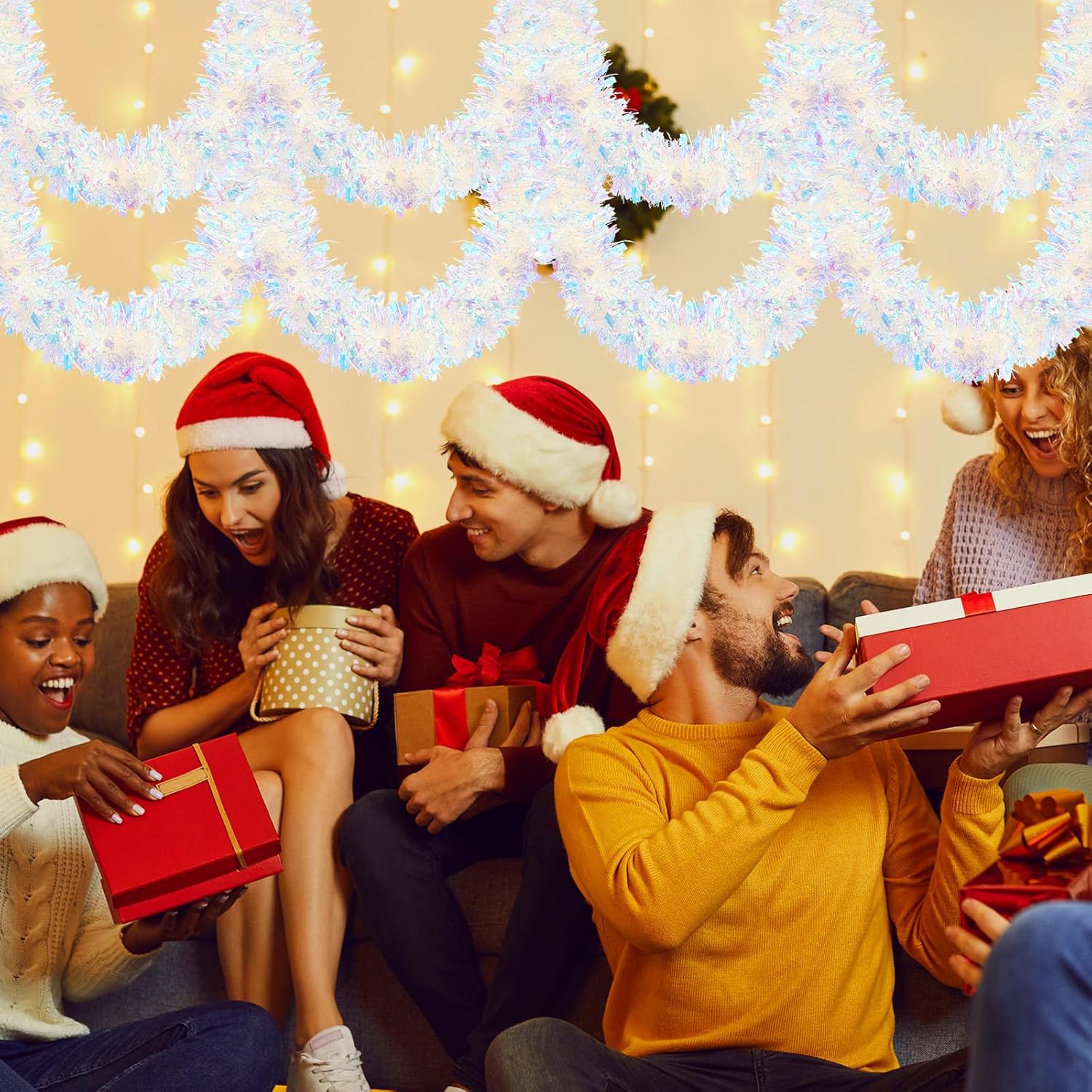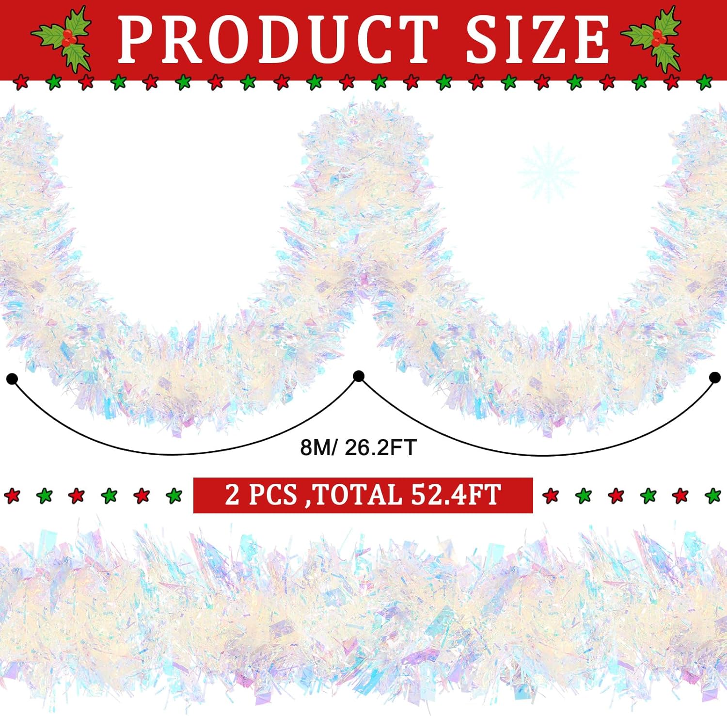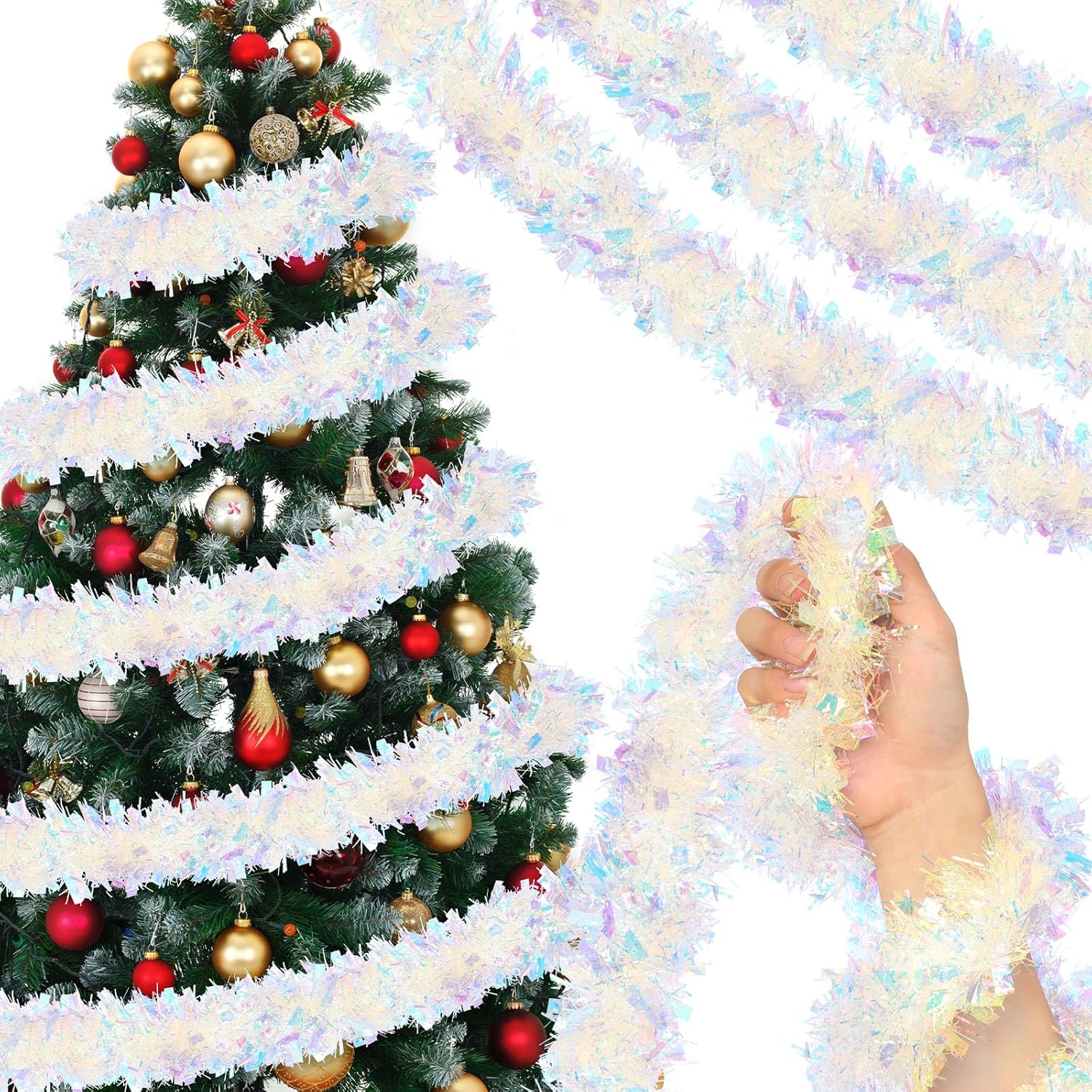 WILLBOND Christmas Tinsel Garland Xmas Metallic Tinsel Twist Garland Glitter Christmas Tree Hanging Wreath Decor for Staircase Railing Banister Indoor Outdoor Ornament (Pink, 52.5ft)