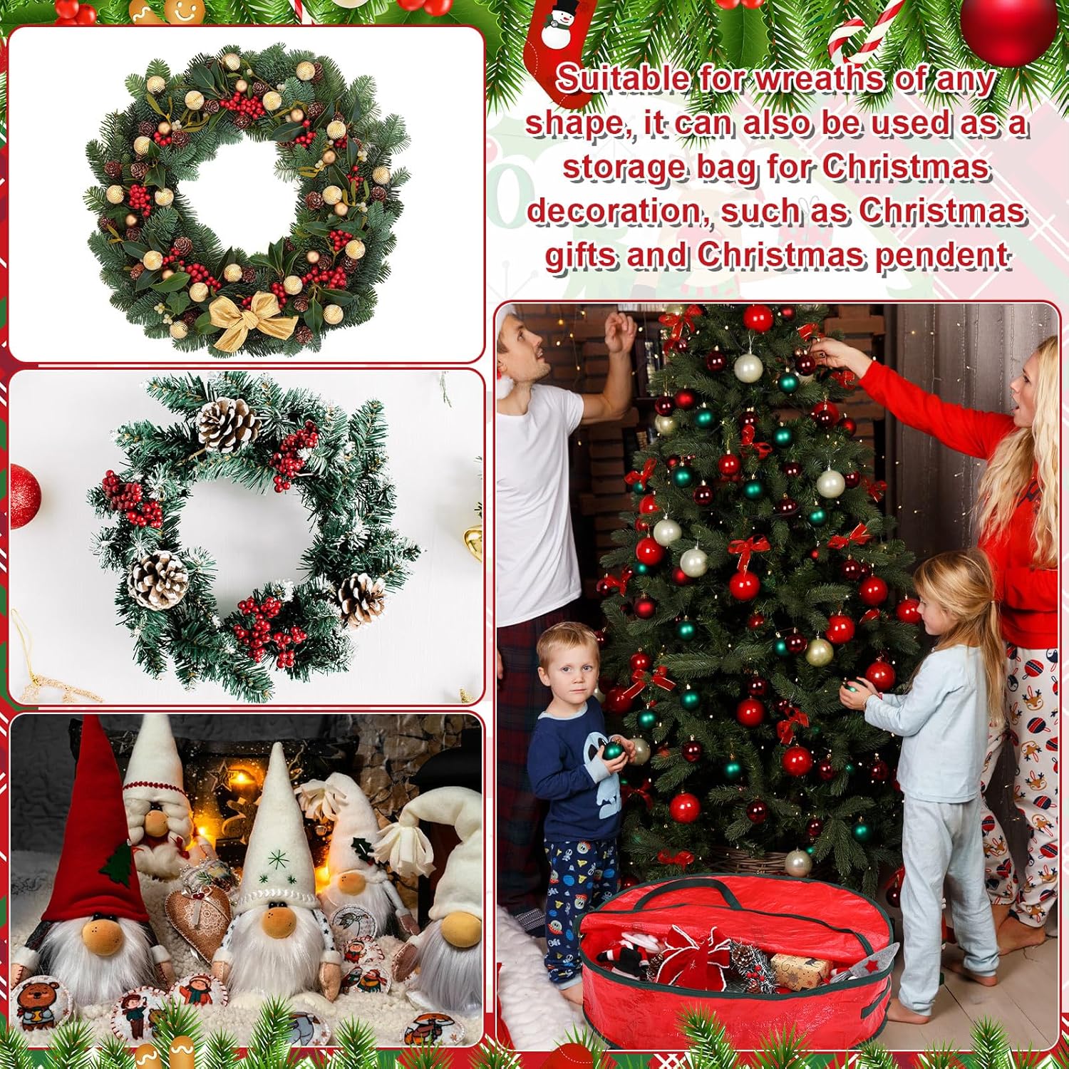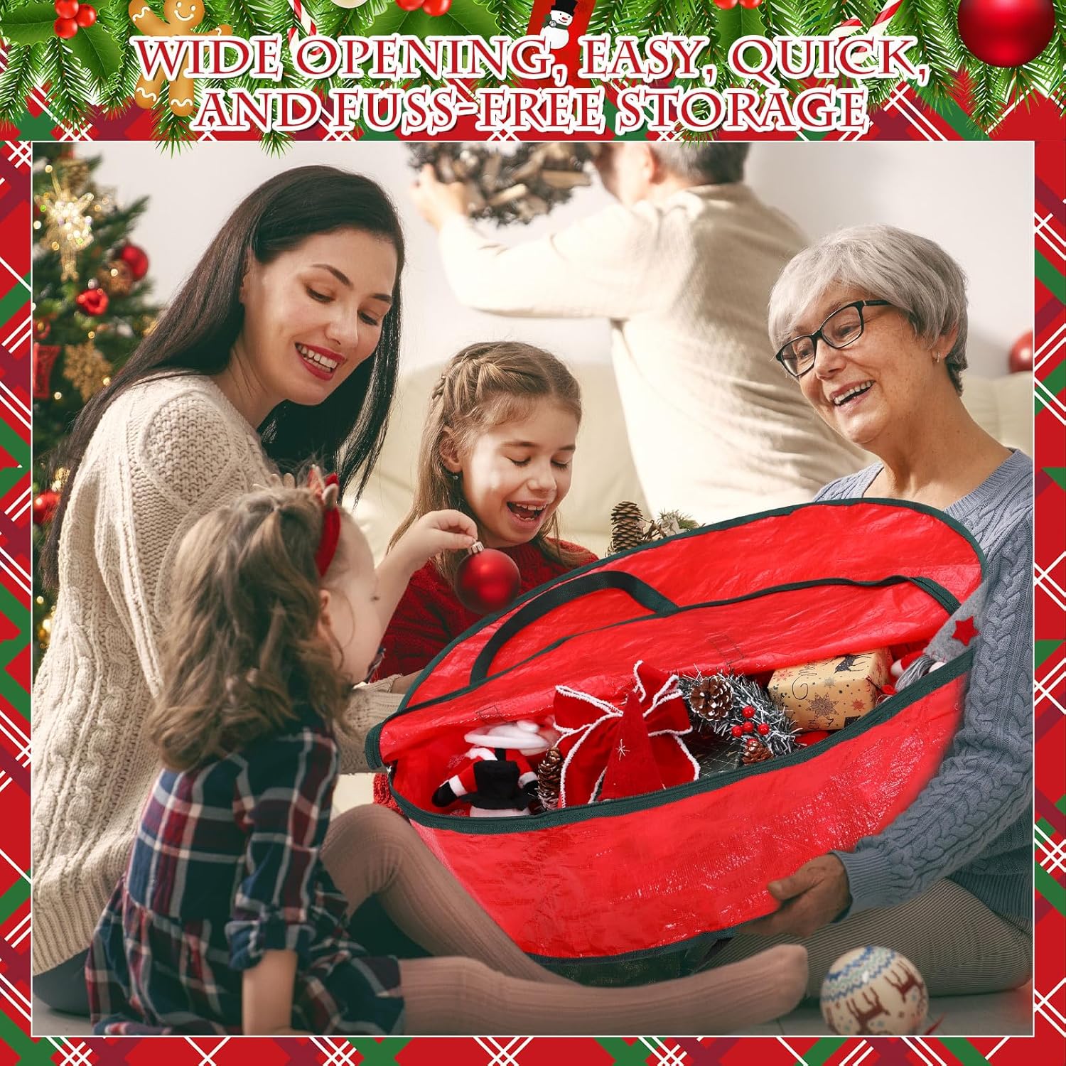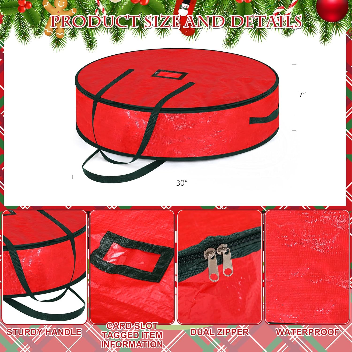 Windyun 8 Pcs Christmas Wreath Storage Container Bulk 30 Inch Plastic Xmas Bags with Handle Durable Tarp Wreath Bag Material Garland Holiday Wreath Box For Heavy Duty Xmas Thanksgiving Holiday(Red)