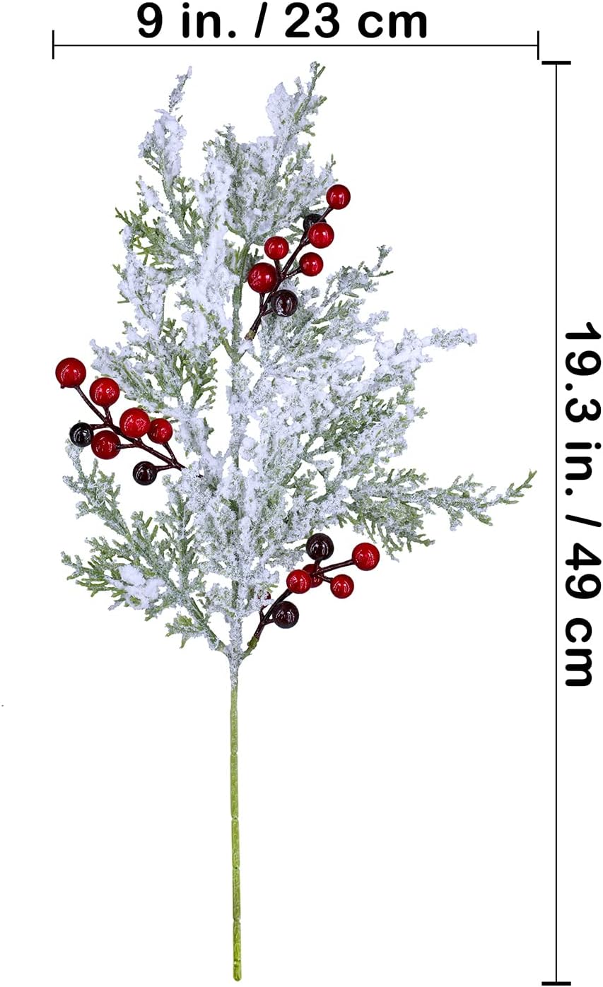Winlyn 6 Pcs Snowy Artificial Cedar Picks with Red Berries Frosted Faux Cedar Sprays Christmas Cedar Greenery Branches Stems for Christmas Tree Wreath Floral Arrangement Vase Winter Holiday Décor