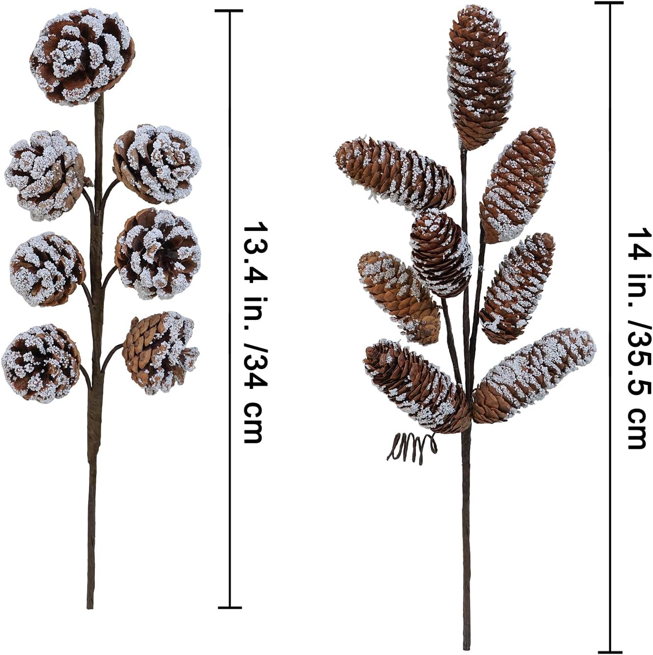 Winlyn 8 Pcs Snowy Natural Pinecone Picks Sprays Christmas Picks Spruce Pine Cones Branches Ornaments 14" Tall for Christmas Tree Rustic Floral Arrangements Wreath Holiday Centerpiece Winter Décor