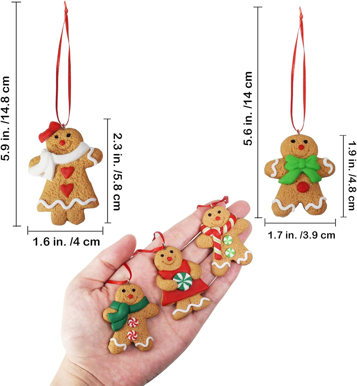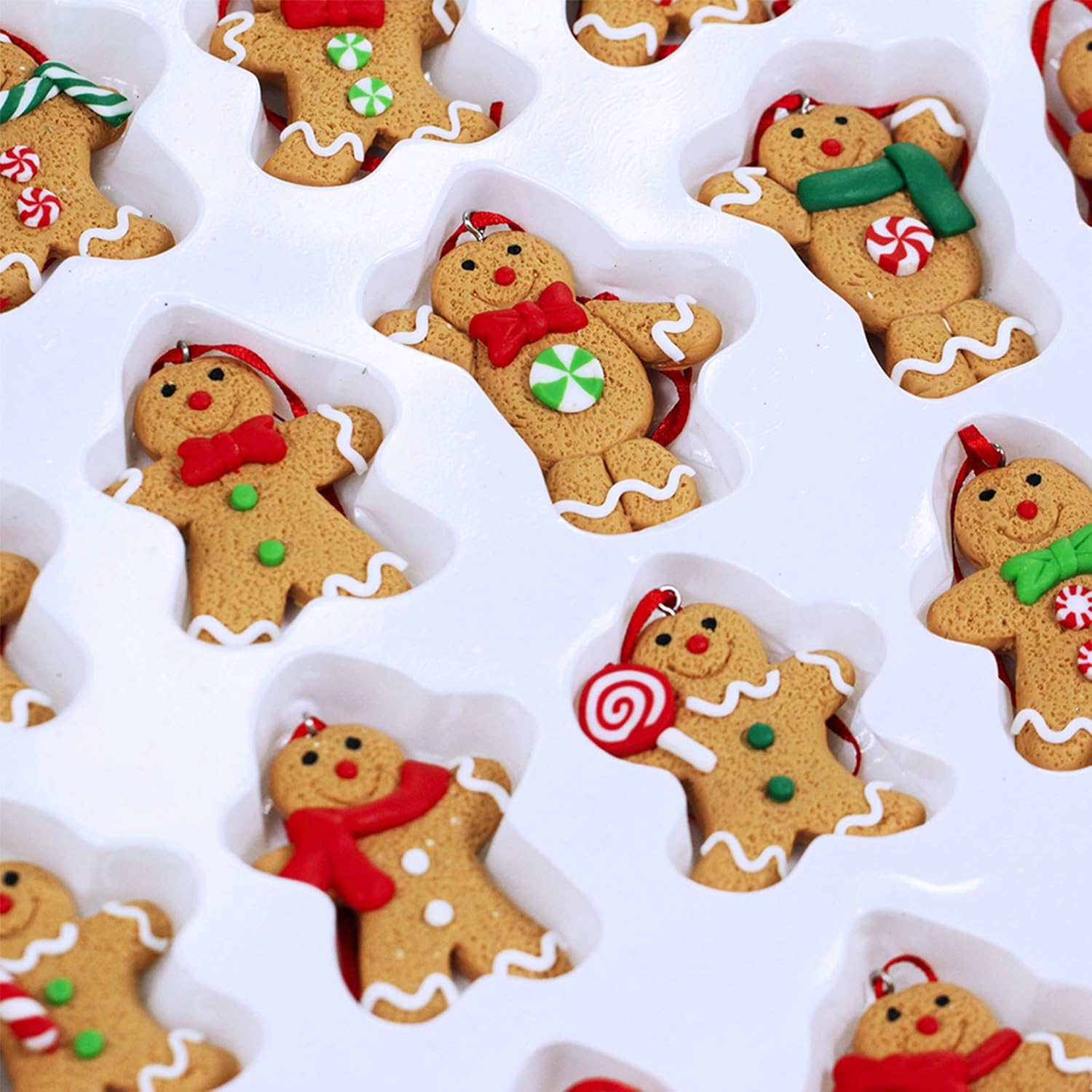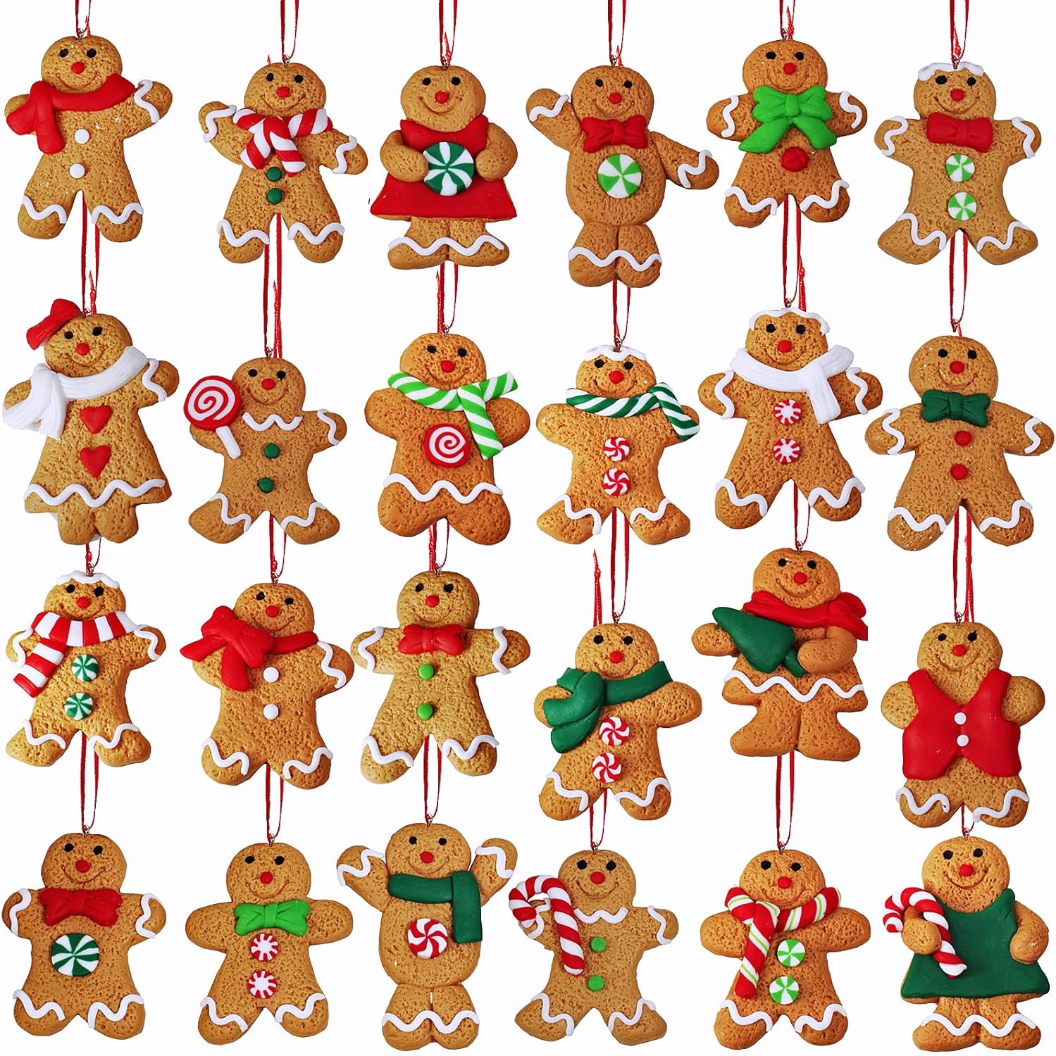 Winlyn Set of 24 Christmas Gingerbread Ornaments Bulk Clay Figurine Ornaments Gingerbread Family Dolls Gingerman Hanging Tree Ornaments for Holiday Stocking Stuffers Tree Wreath Mantel Decor