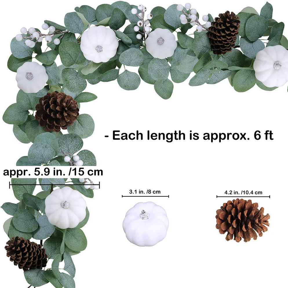 Winlyn White Pumpkin Garland Artificial Eucalyptus Garland with White Pumpkins Pinecones Berries Fall Foliage Garland for Wedding Arch Backdrop Thanksgiving Table Runner Farmhouse Décor 6' Long
