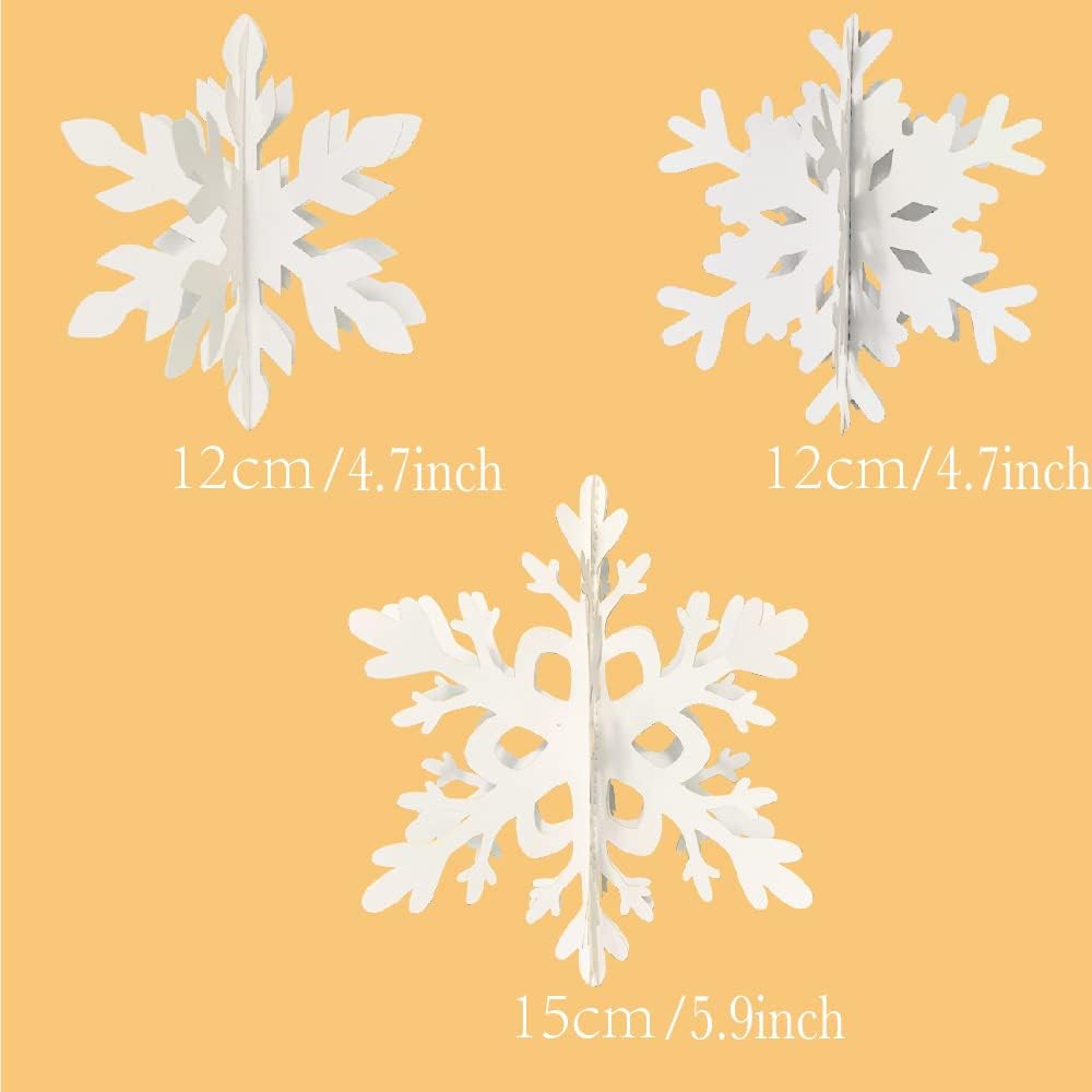 Winter Christmas Hanging Snowflake Decorations 12 Pcs Snowflakes Garland Hanging Snowflake for Christmas Winter Wonderland Holiday Year Party Home Decorations (White)