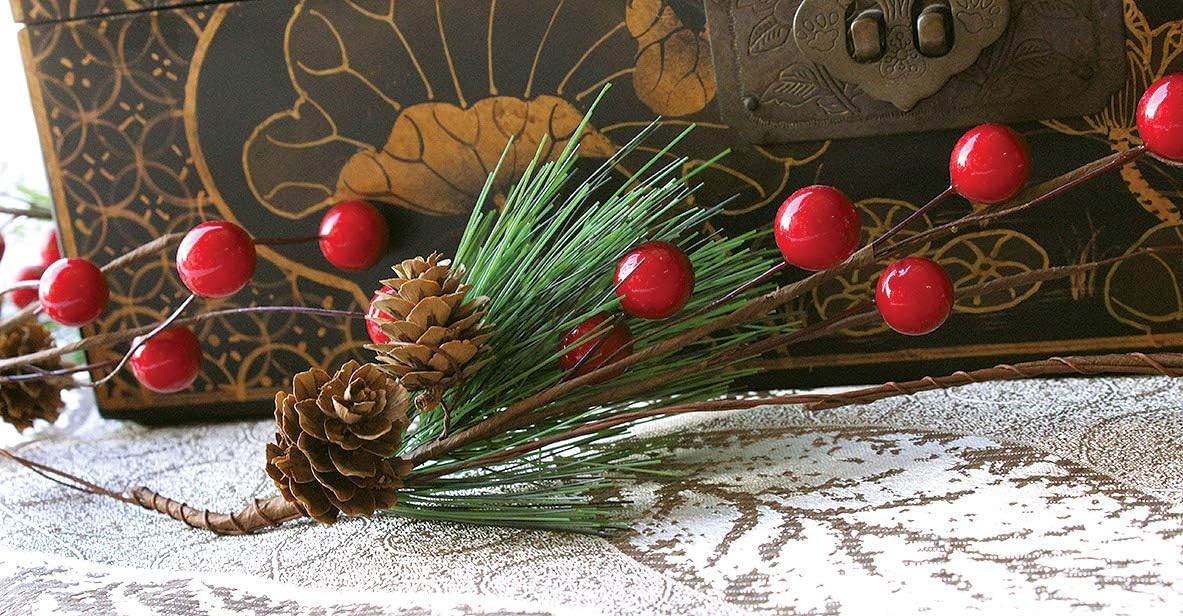 Winter Garland Christmas Decoration of Red Berries, Pine Cones & Evergreen Pine Needle – Unlit Holiday Berry Décor for Home, Kitchen, Bar & Fireplace & Decorative Outdoor Greenery 6 Ft Long Clearance