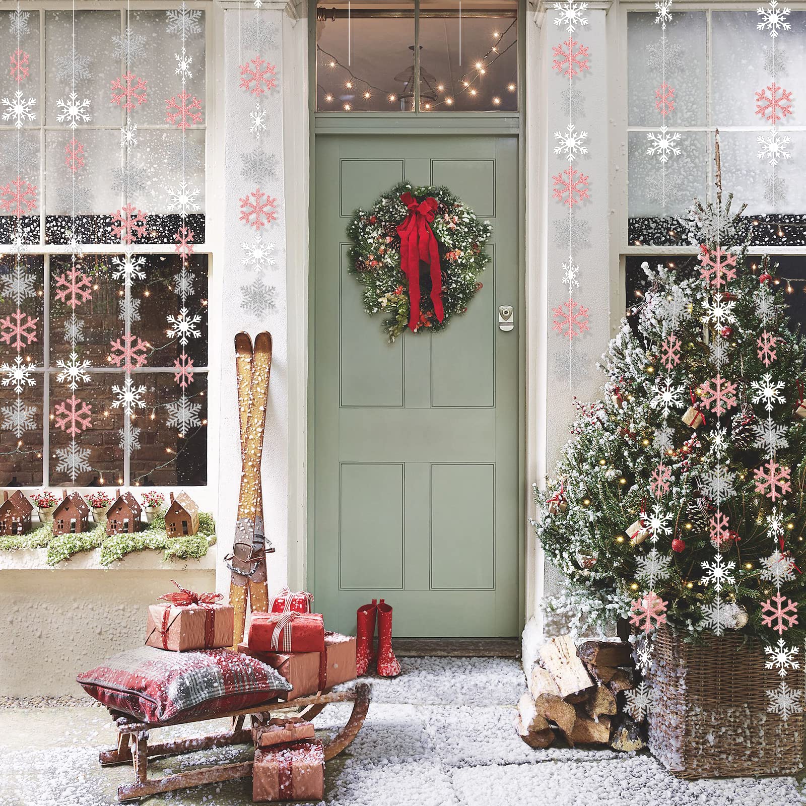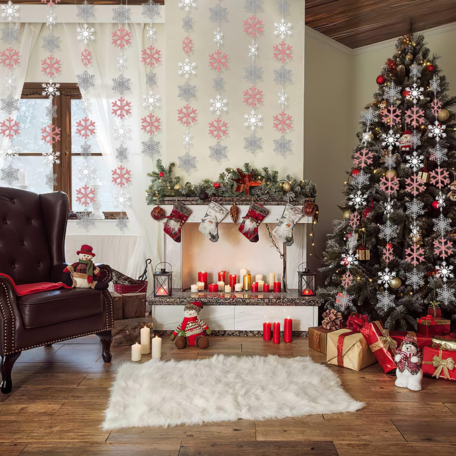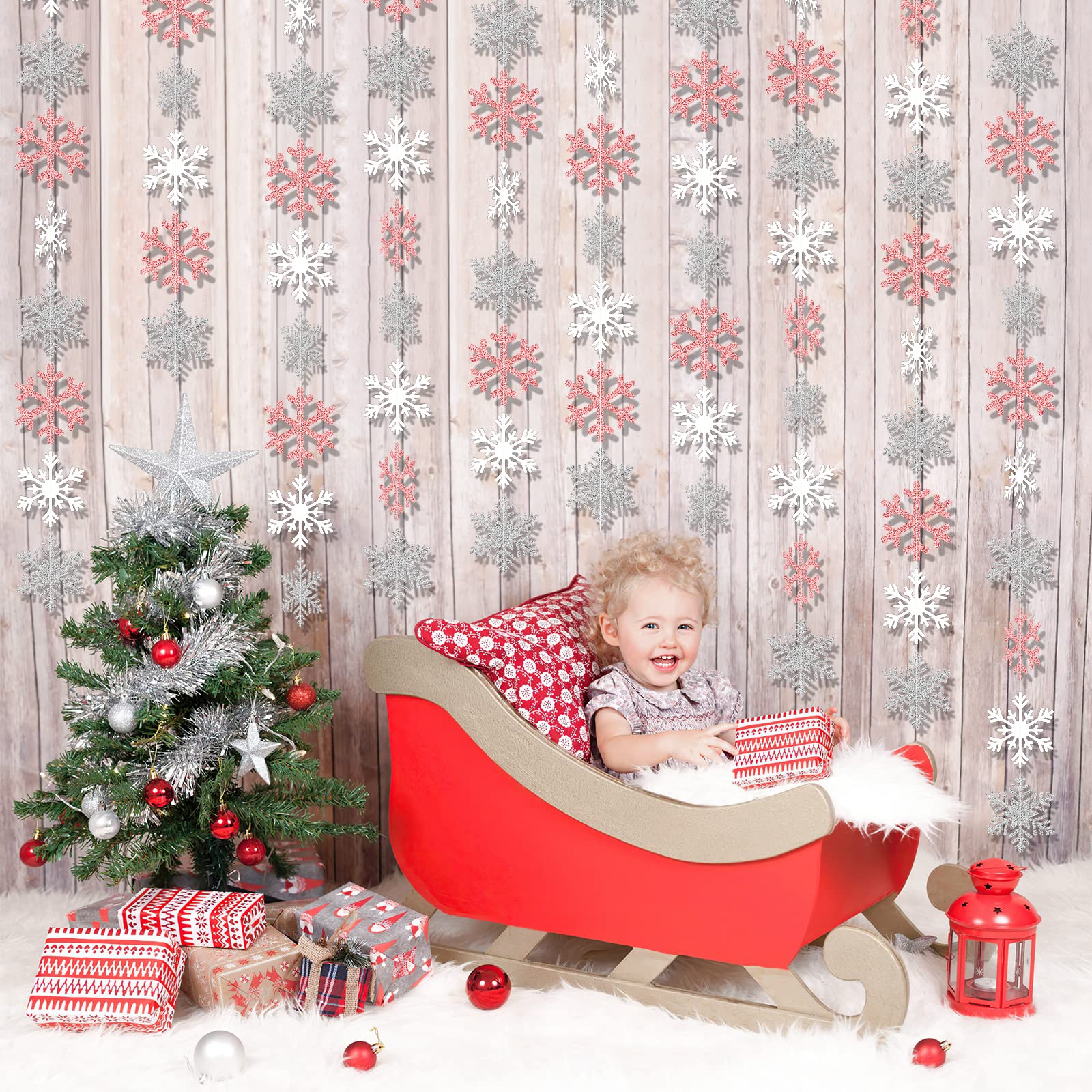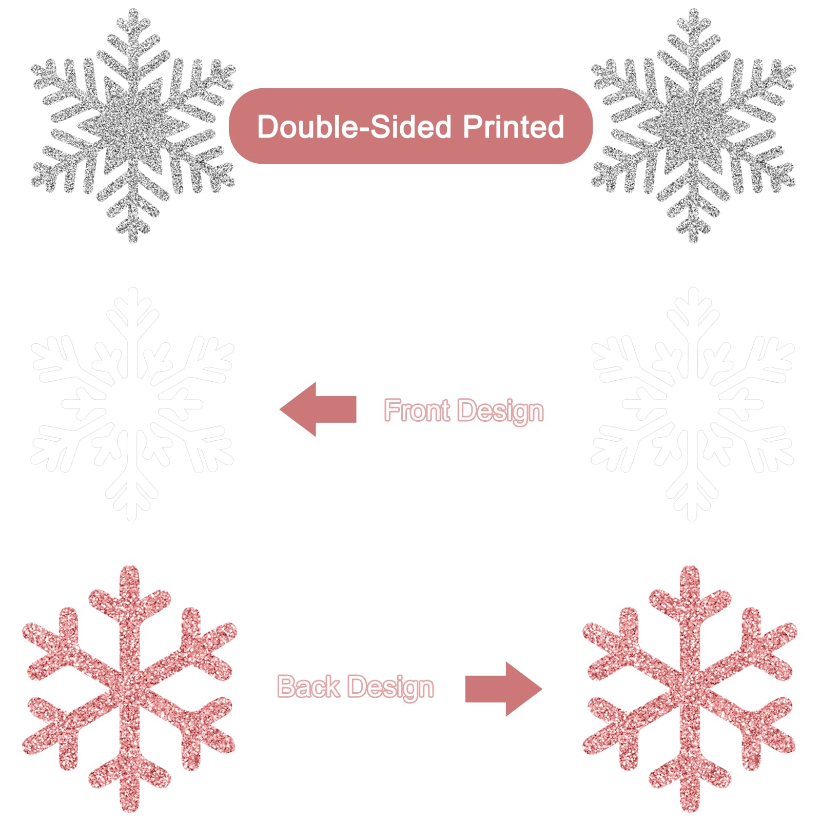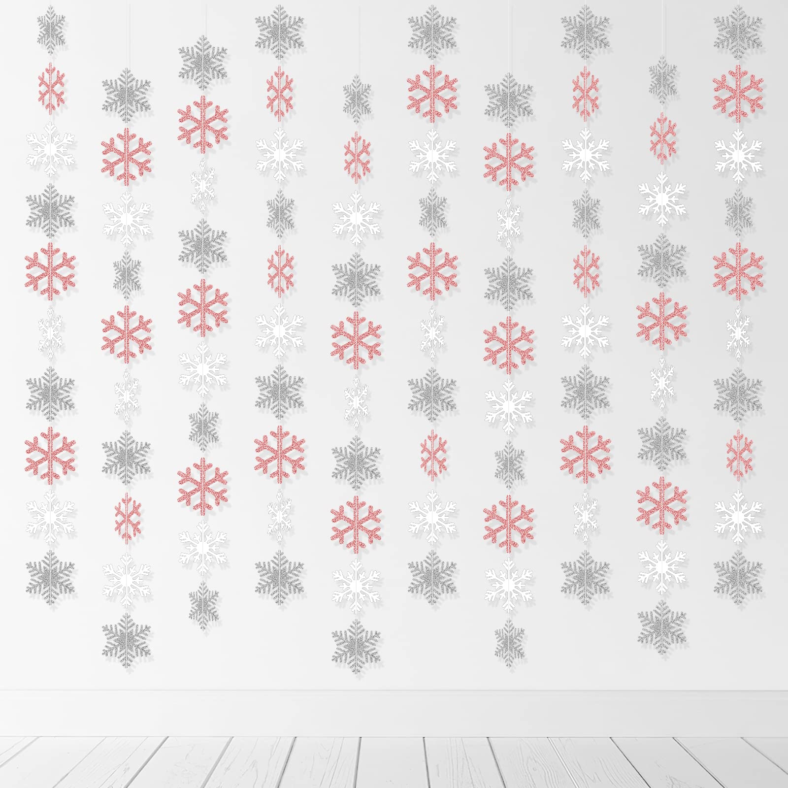 Winter Snowflake Hanging Decorations, Glitter Silver White Rose Gold Snowflakes Christmas Hanging Garland Winter Party Decorations for Winter Wonderland Girls Birthday Christmas Party Decorations