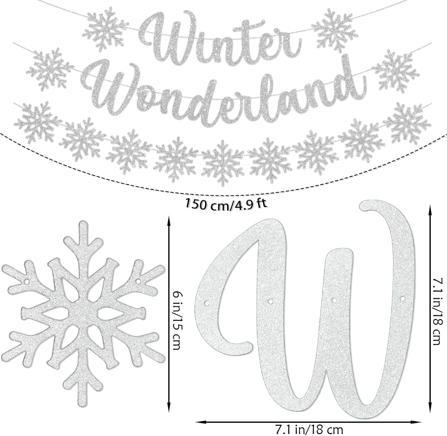 ❄Wonderland Snowflake Decorations/Snowflake Ornaments Garland Winter Wonderland PACKAGE INCLUDES:1pack of big glitter silver snowflake garlands with WINTER WONDERLAND letters2PCS small bue silver glitter Snowflak hanging garlands,each string includes 21pcs snowflakes.long about 7.8ft. These iridescent winter wonderland decorations are perfect for frozen theme party, winter party, Christmas/inter Party Wonderland party decorations Frozen Theme Party birthday Winter Wonderland Decorations .❄【Winter Theme Party Decor】 This gorgeous garland string kit is made by double sided glitter cardstock, this snowlfake garland will show your guest a classic and romantic atmosphere, it will surely brighten up your party, especially perfect for Winter Themed Christmas Holiday Decor
