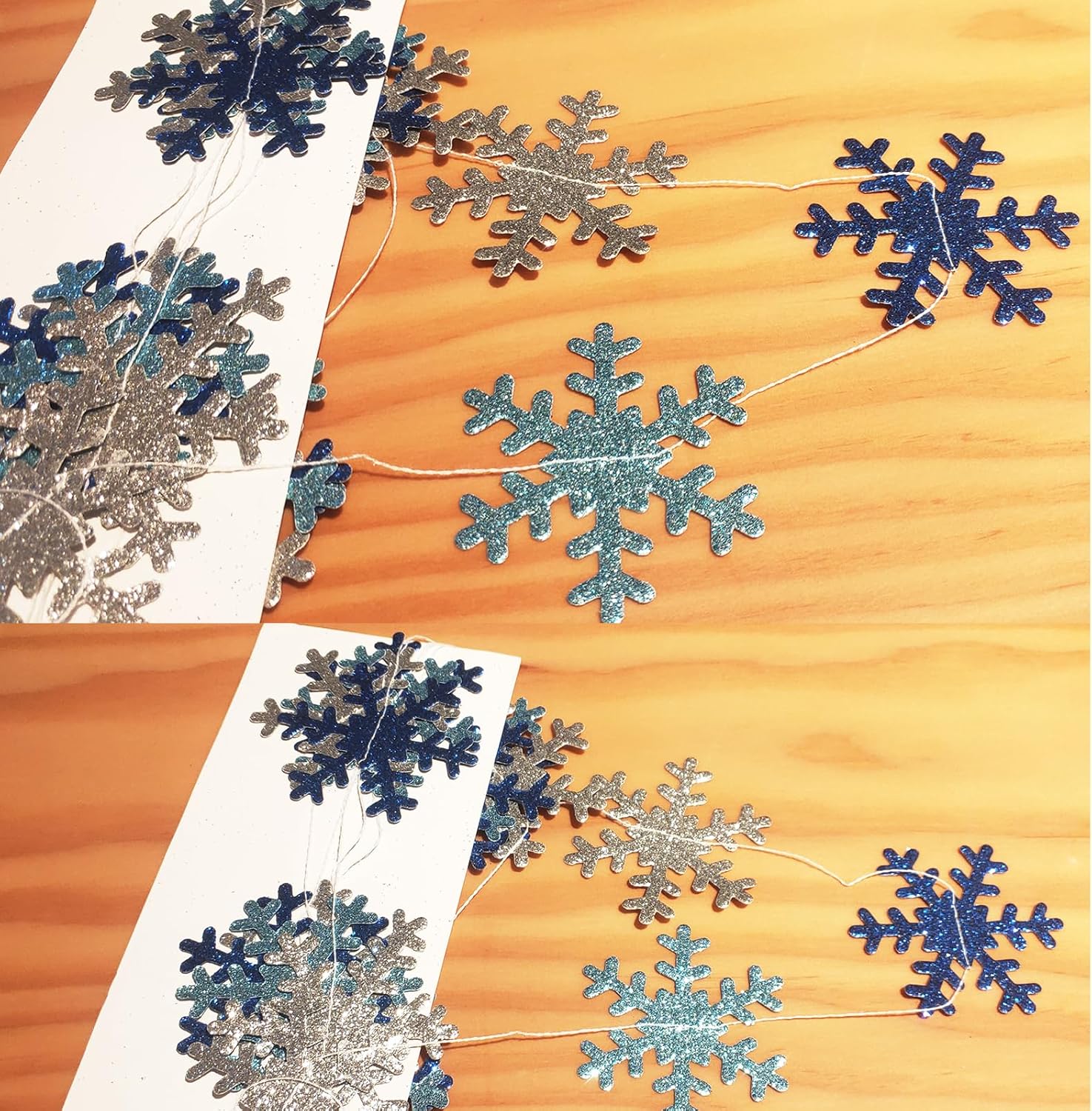 • ❄【Easy To Assemble】 NO DIY NEEDED, The lovely snowflake garland are sewn with sturdy silver thread. Hang this bunting around your party or even your home or easily attach to Walls, Mantel, Ceiling, Doorway, Bedroom, Marquees and furniture to create a dreamy home party atmosphere for your guests to enjoy. The garlands can be cut to different lengths if needed.