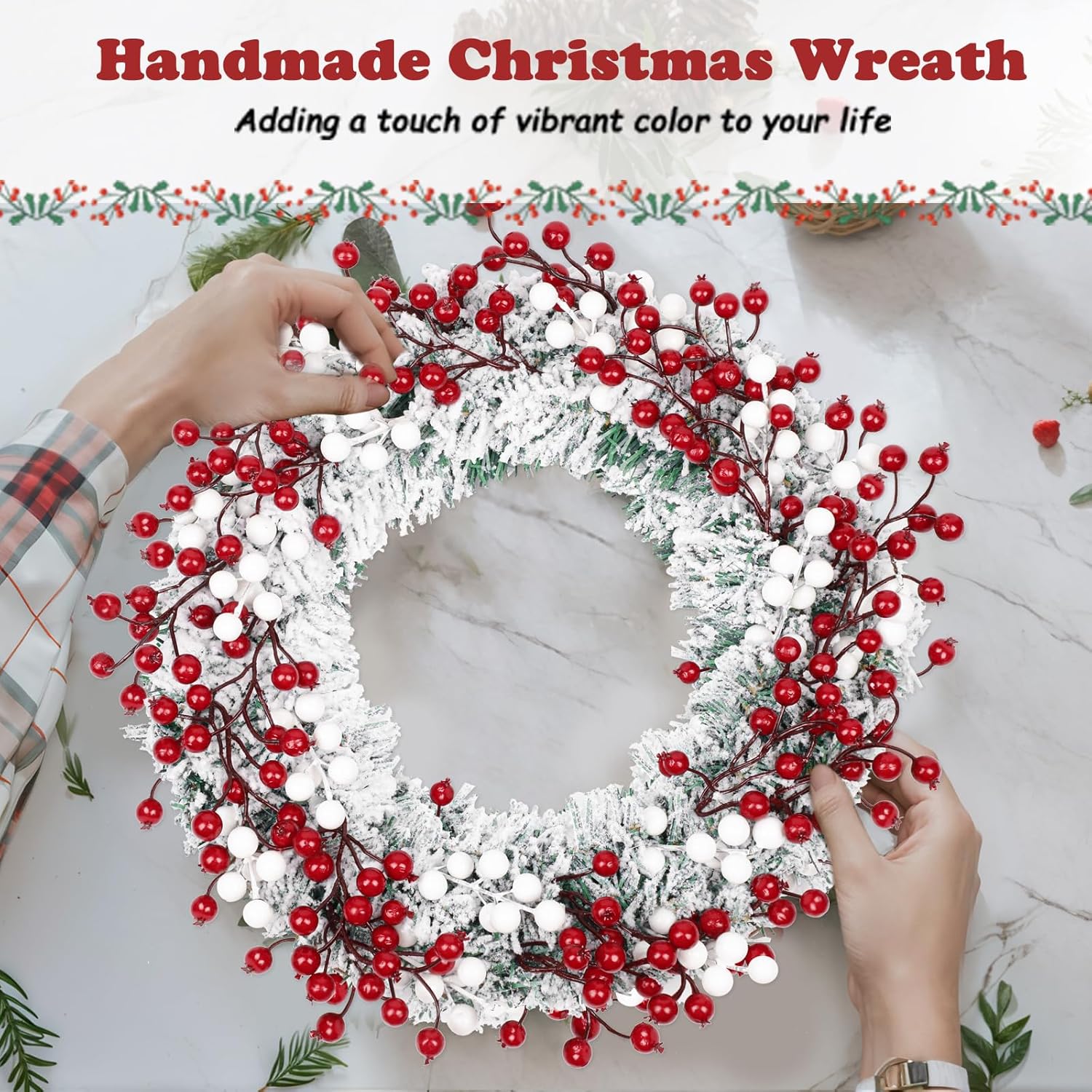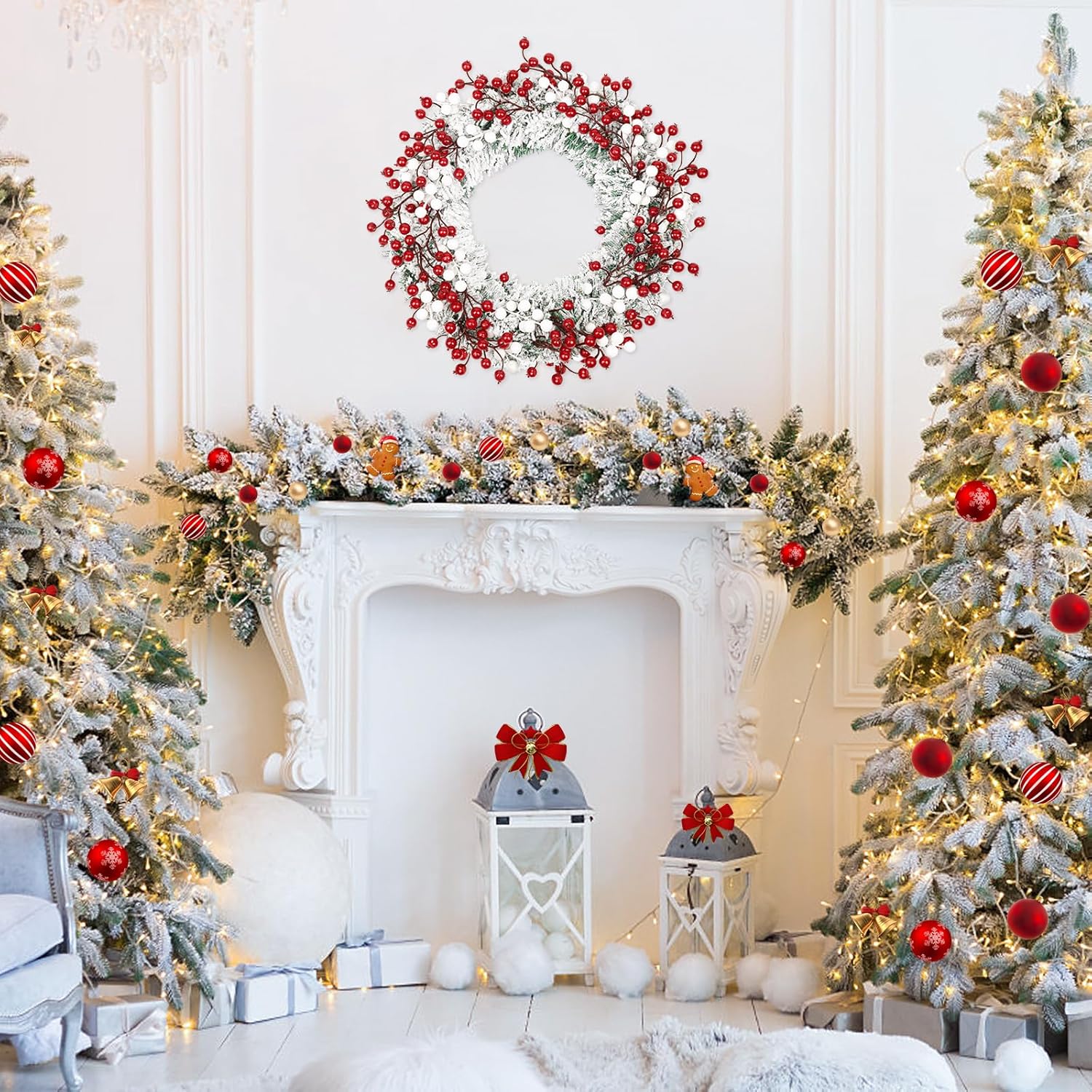 Winter Wreaths for Front Door, Outdoor Christmas Wreath Large White Xmas Reef Decorations with Snow Flocked Pine Red Berry 16" 20 inch Handmade Premium Holiday Indoor Outside Decor