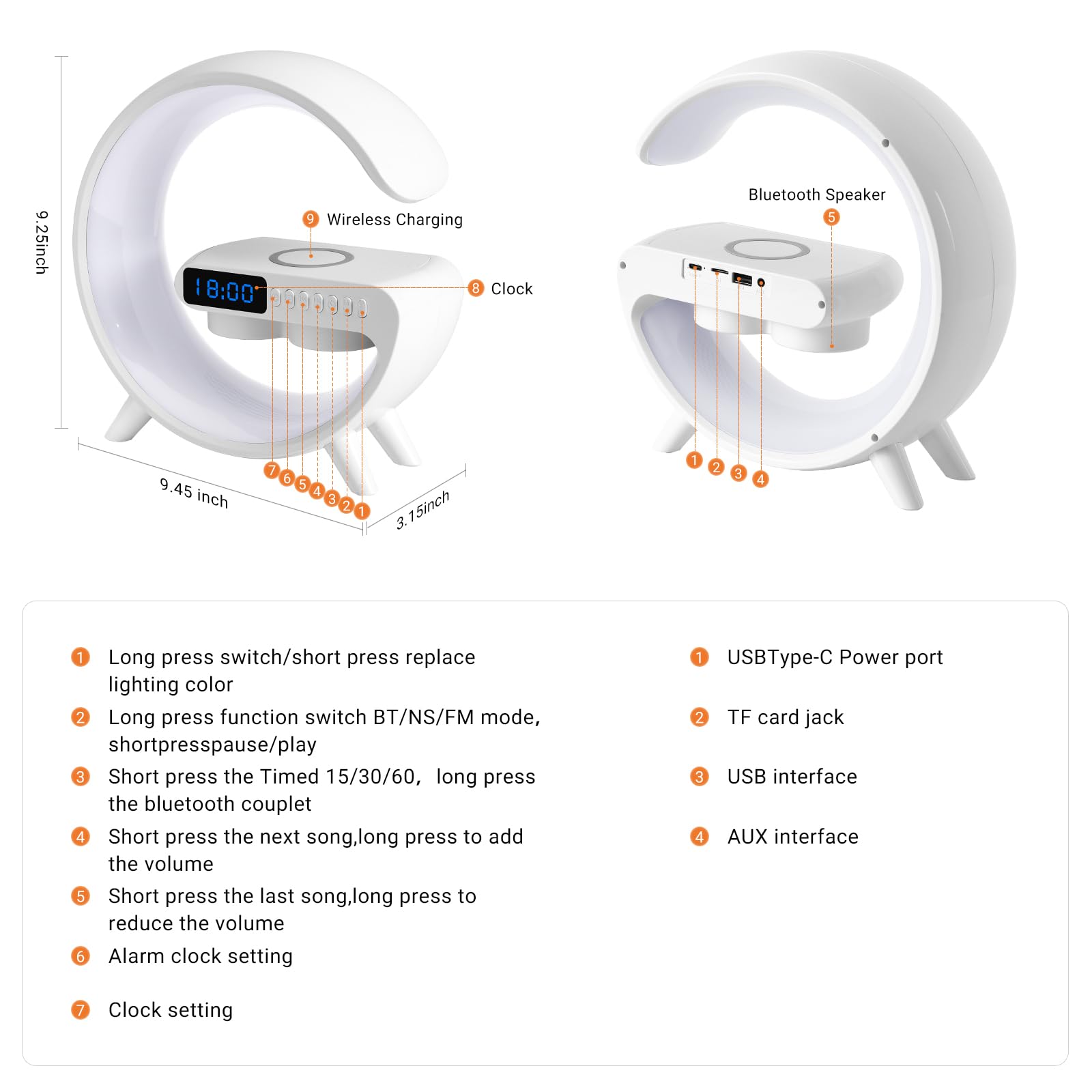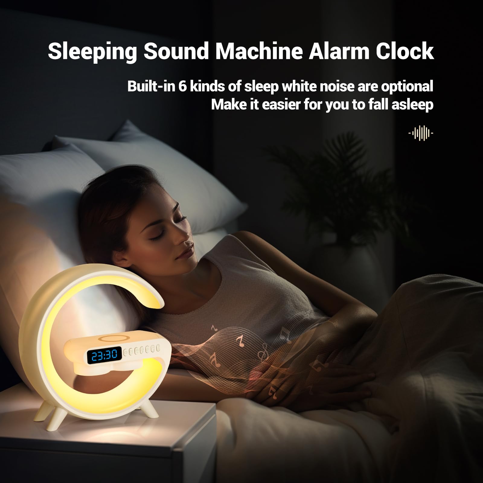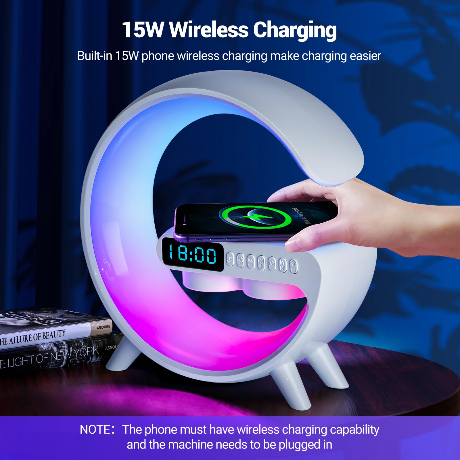 Wireless Charging Atmosphere Table Lamp with Bluetooth Speaker Alarm Clock Night Light 15W Wireless Charger Speaker for Bedside Lamp Desk Clock Sound Machine Ambient Lighting for Christmas