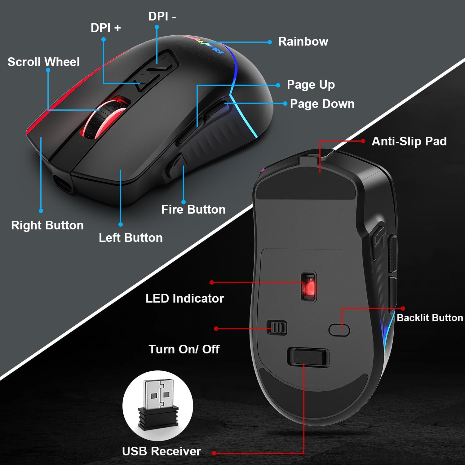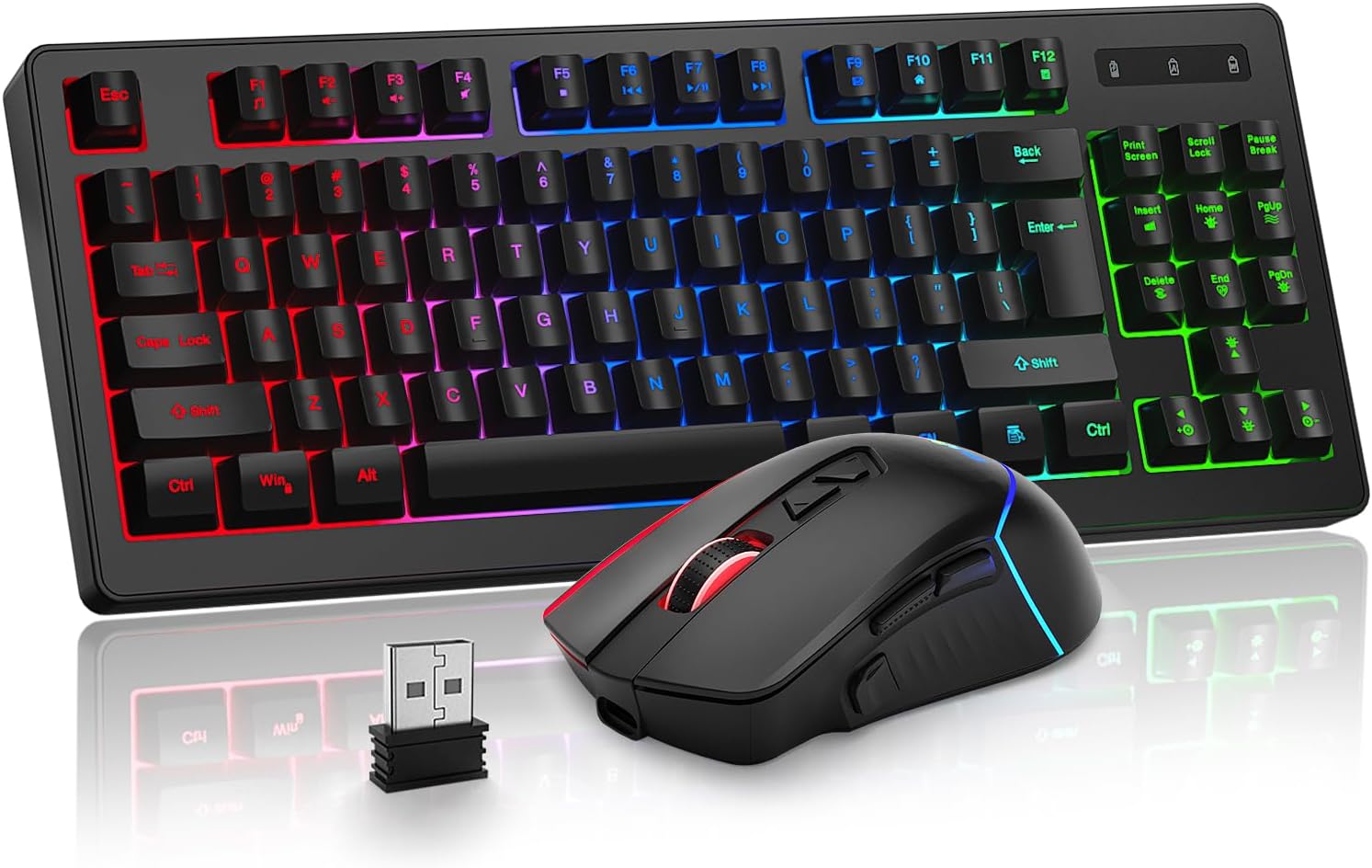 Wireless Gaming Keyboard and Mouse Combo, Long Lasting Rechargeable Battery 87 Keys RGB Rainbow Backlit Gaming Keyboard & Ergonomic Light Up Gaming Mice for Mac Laptop Computer PC Gamer