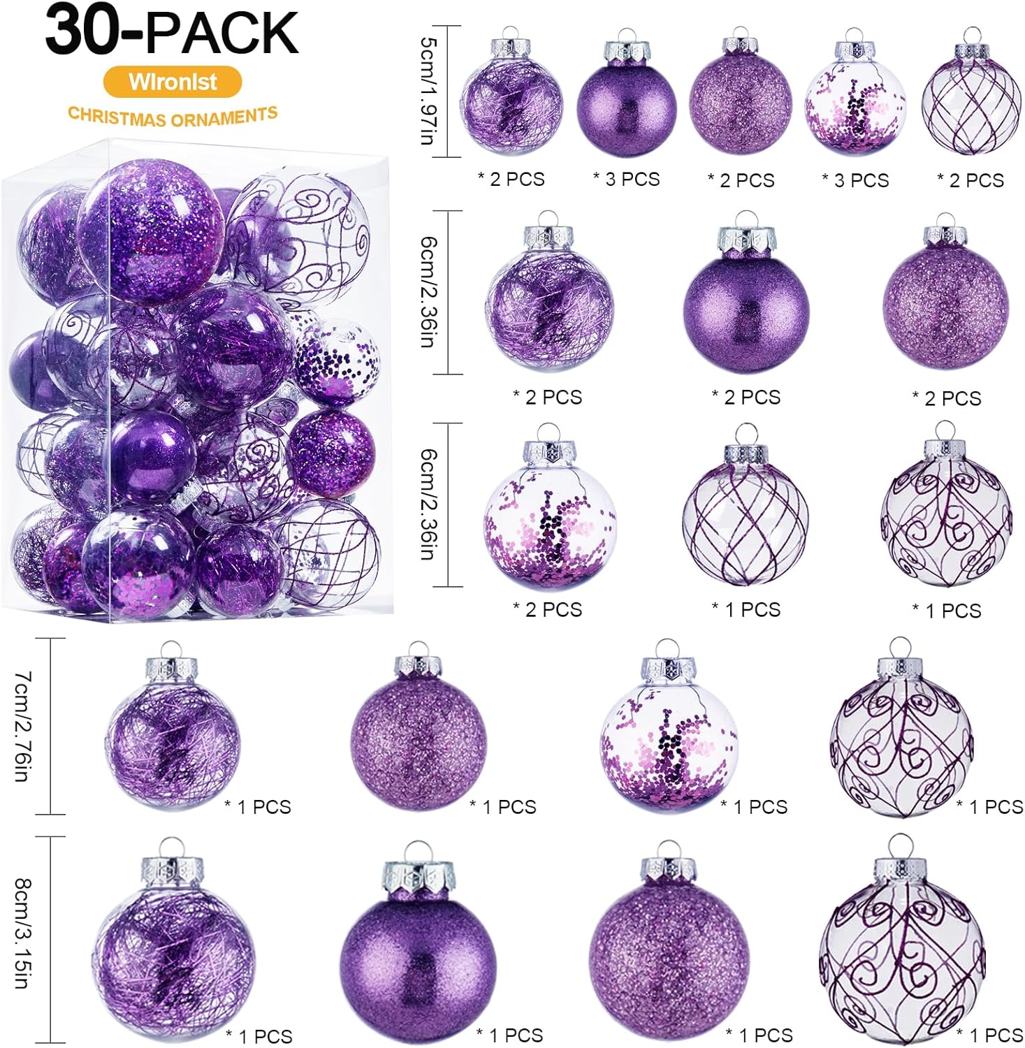 Wironlst Christmas Ball Ornaments Shatterproof Clear Large Plastic Hanging Ball Decorative Baubles Set with Stuffed Delicate Decorations (Multi-Size, Purple)