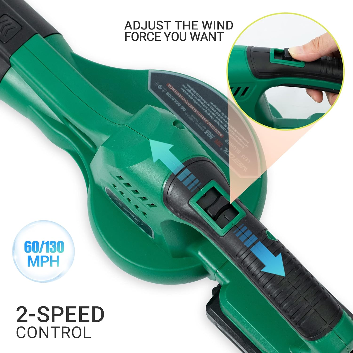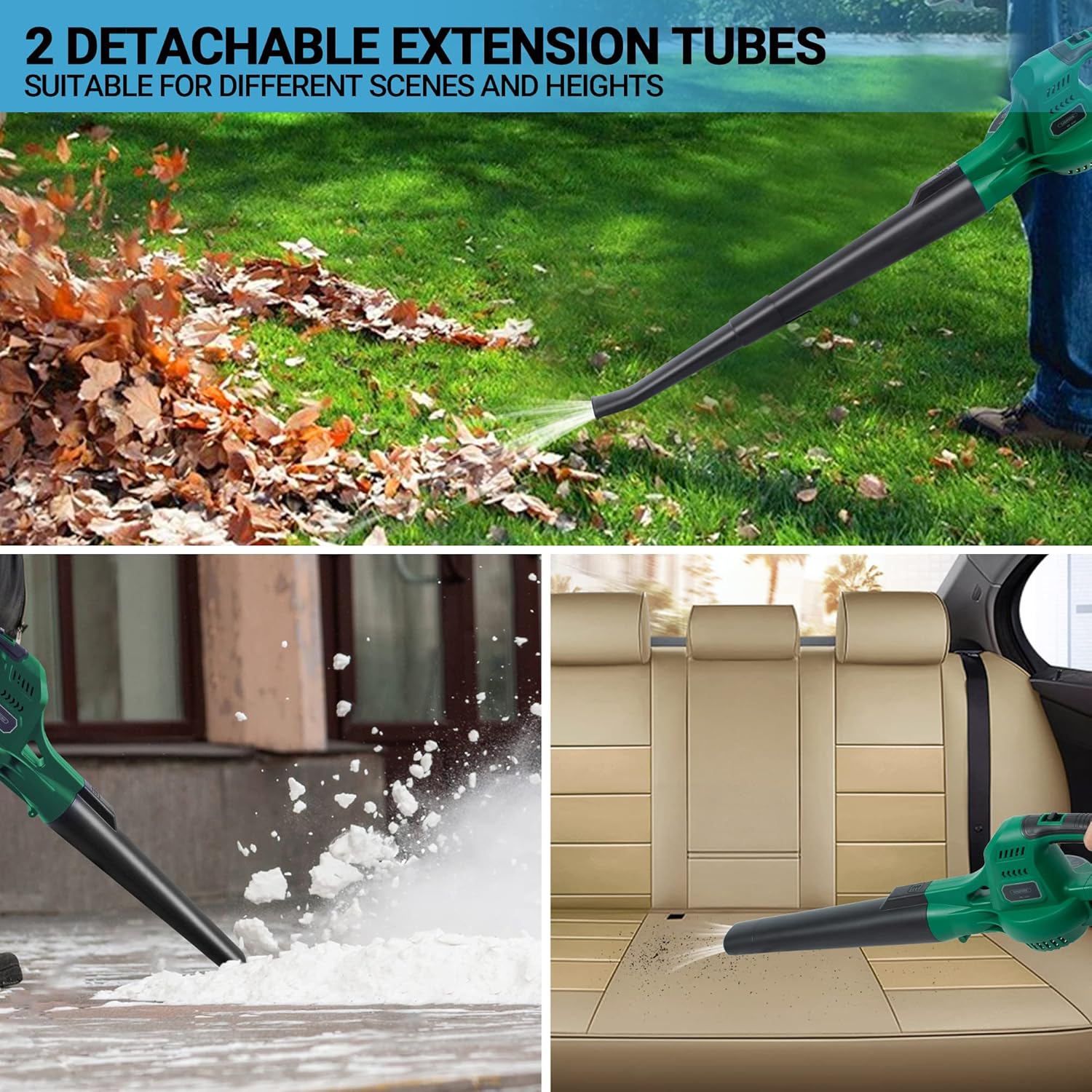 WISETOOL 20V Cordless Leaf Blower with Battery and Charger, Leaf Blower Battery Operated, Rechargeable Electric Handheld Leaf Blower Variable Speed with 2 Tubes for Patio, Leaves & Snow Blowing-Green