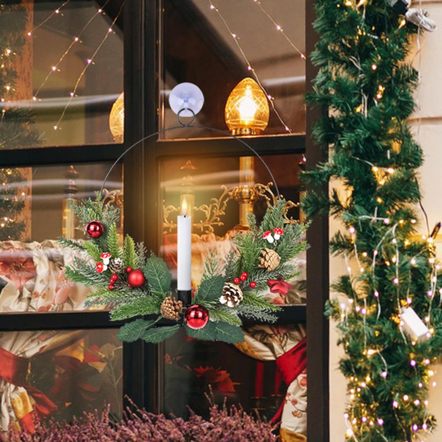 Wondise Flameless Candles with Remote and Timer Wreaths, Real Wax Battery Operated Wreaths with LED Flickering 3D Flame, Christmas for Front Door Window Holiday Christmas Decor