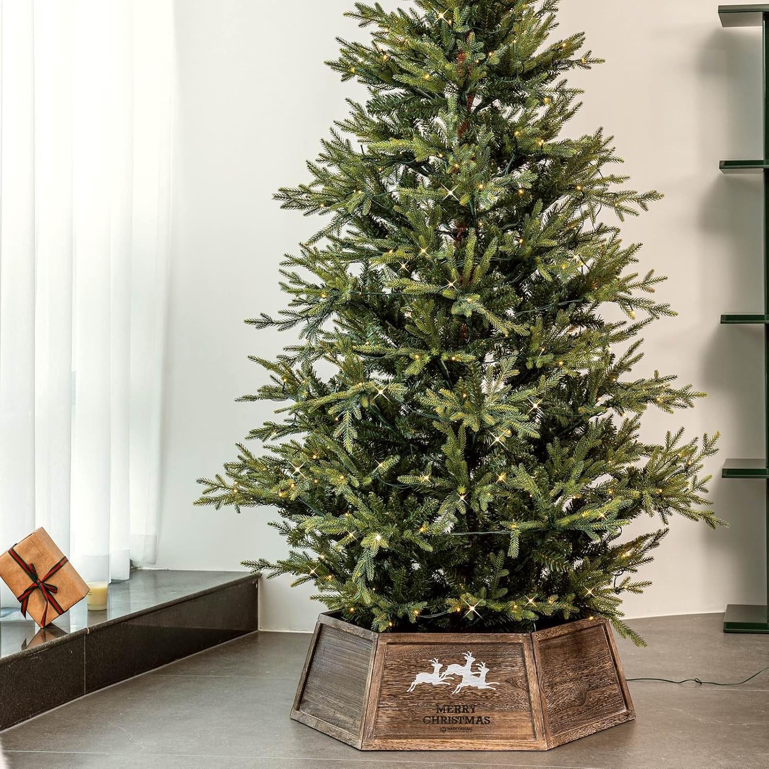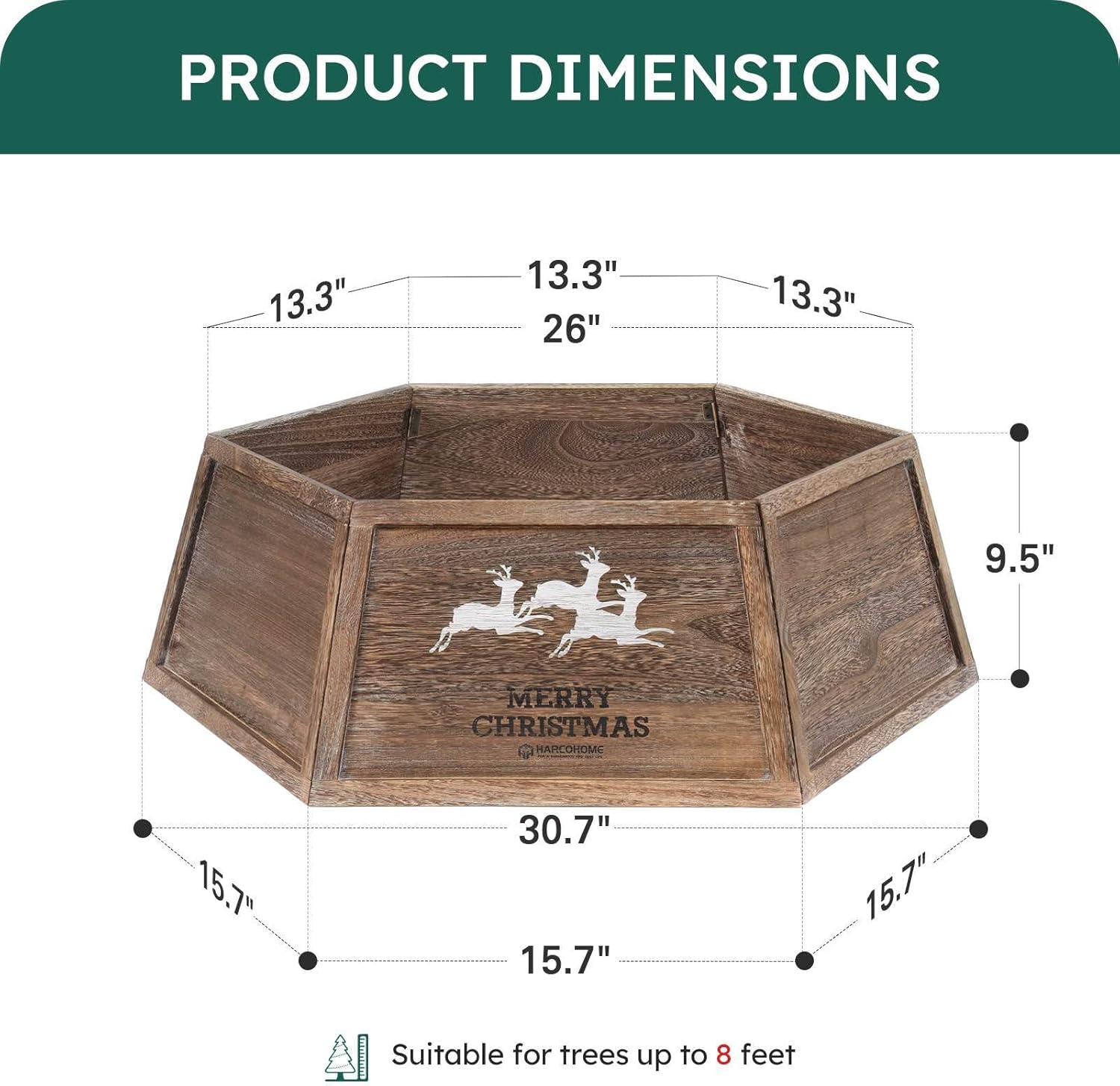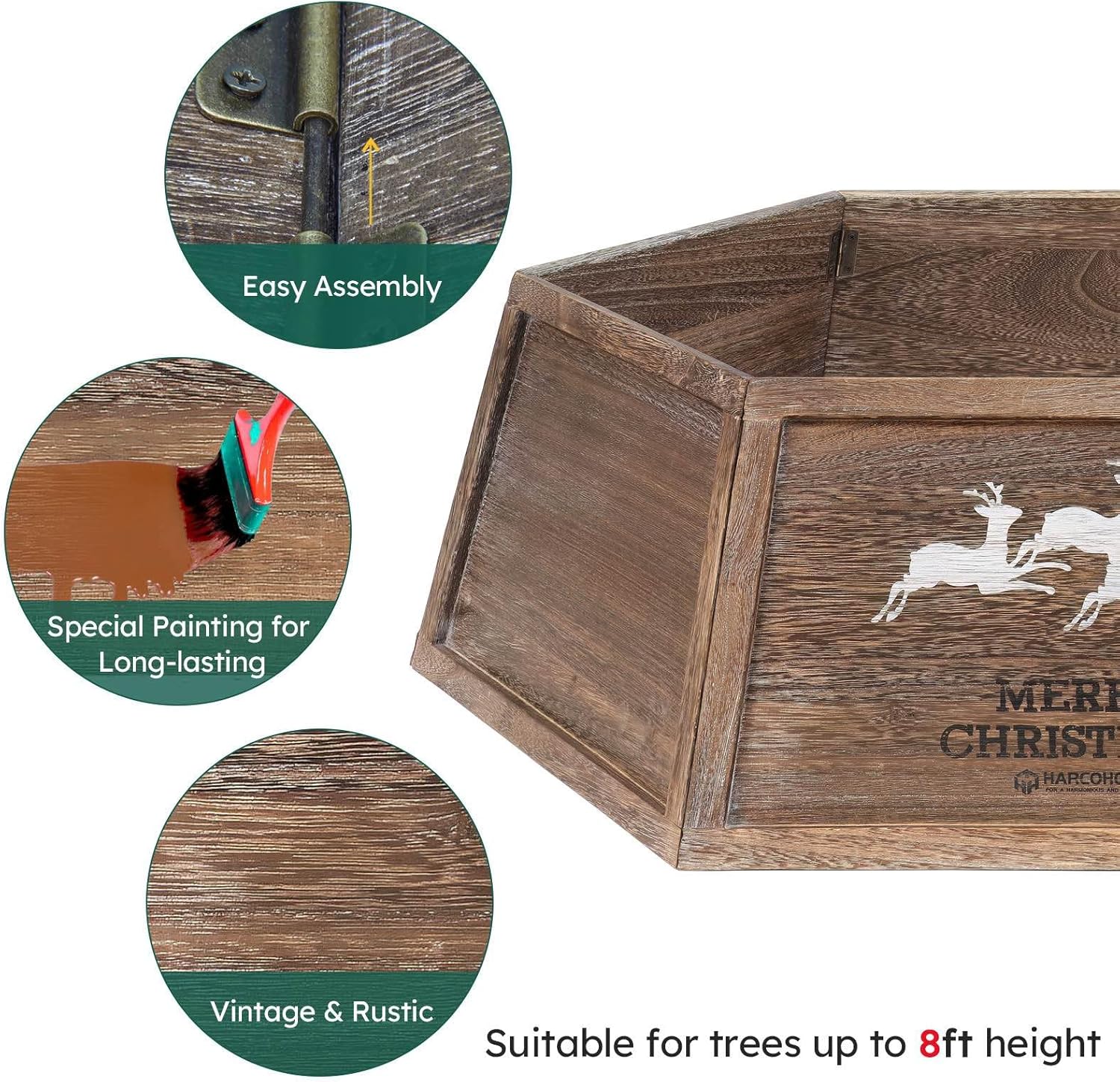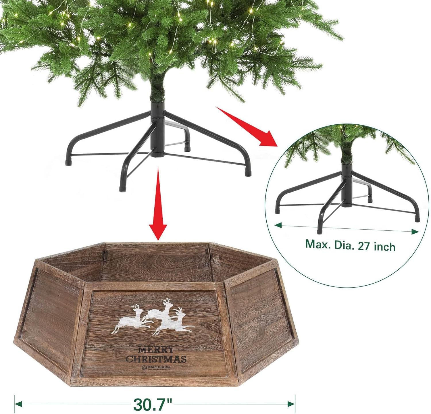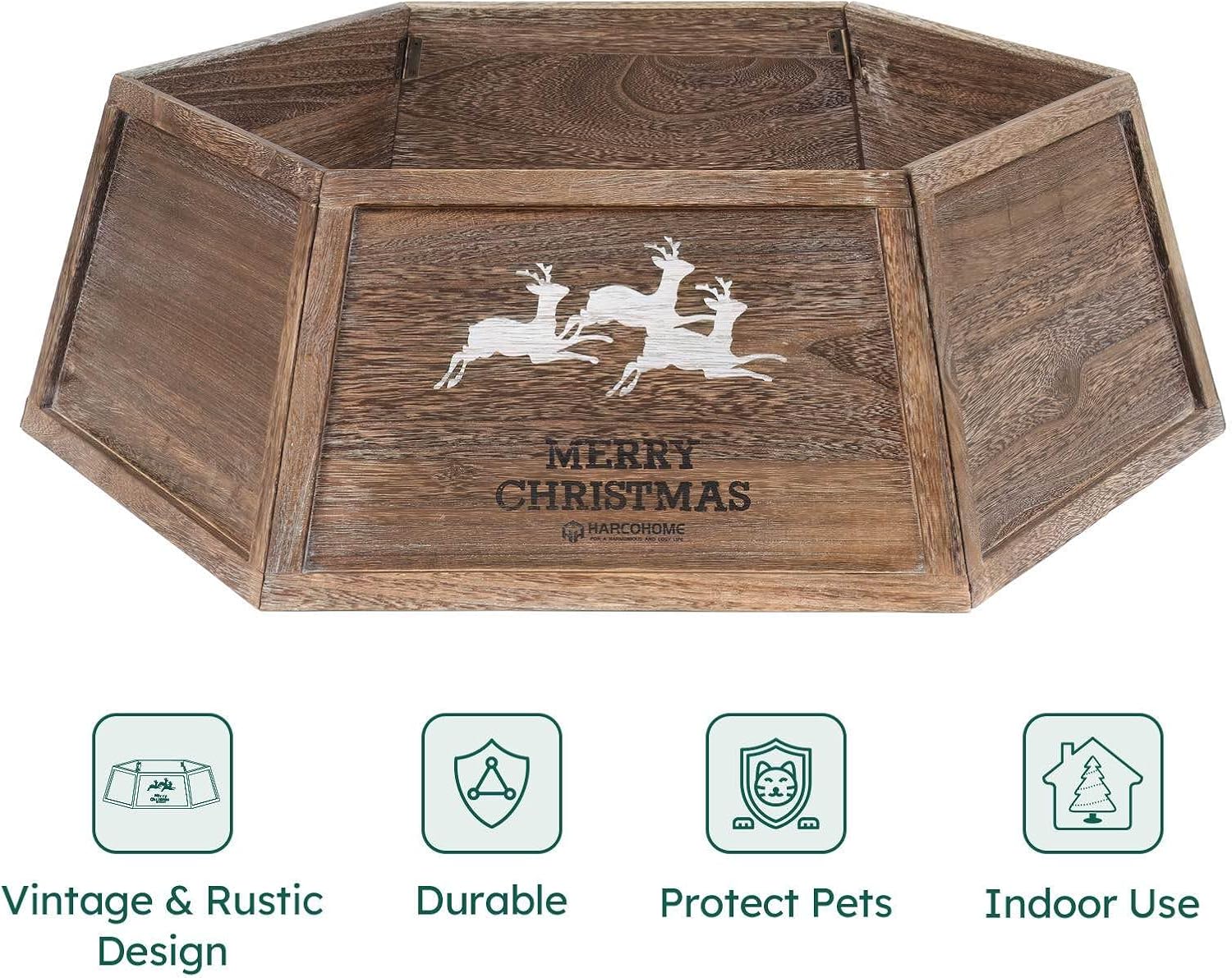 Wood Christmas Tree Collar, 30.7" Hexagon Christmas Tree Base Cover, Handcrafted Natural Wooden Christmas Tree Ring, Vintage Weathered Tree Skirt, Rustic (Archaize)