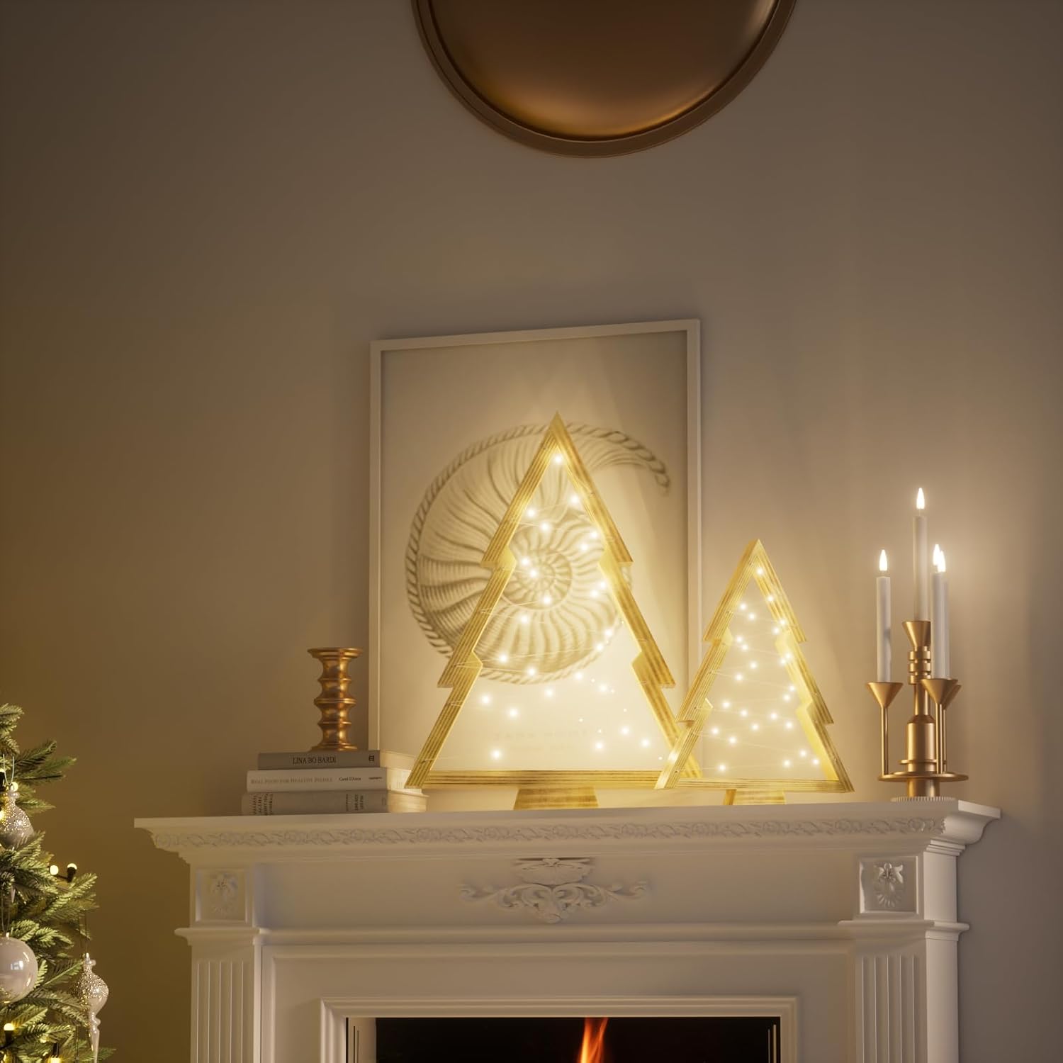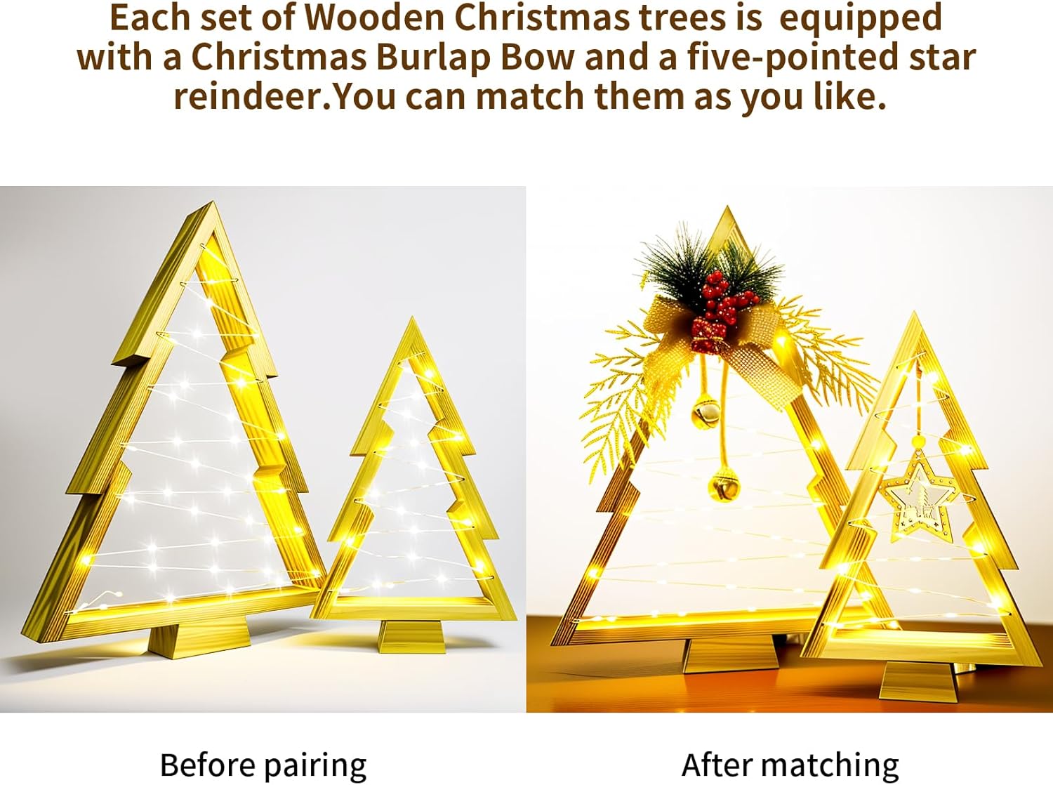 Wooden Christmas Tree, Modern Farmhouse Lights Christmas Tree, Tabletop Christmas Decor 2-Piece Set(Large 13.78" & Small 9.6") fit for Mantelpiece, Coffee Table, TV Cabinet