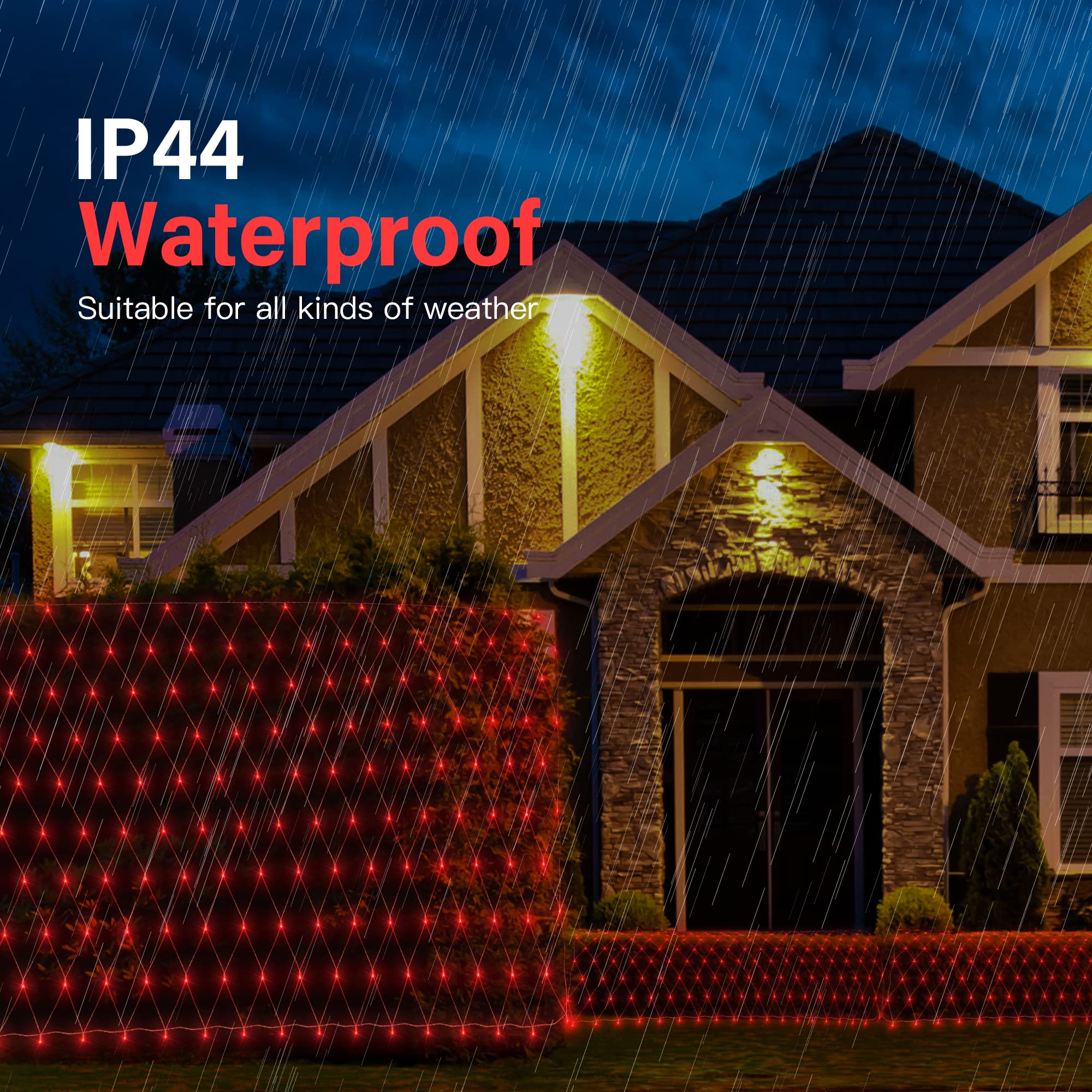 ⢠šćPremium Quanlity & WaterproofćEach net lights outdoor use high quality clear wire with insulation coating that can better avoid overheat usage, which is corrosion resistant, aging resistant.With IP44 waterproof can resist for rainy and normal weather that perfect fit for both outdoor use. But please don't dip direct into the water.