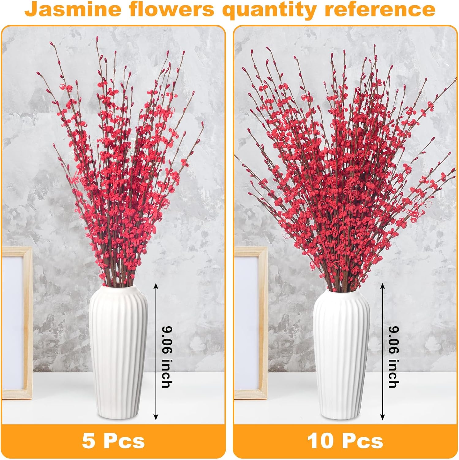 Wootkey10 Pcs 29.5" Long Jasmine Christmas Flowers Artificial Red Flowers Fake Christmas Picks for DIY Wreath Wedding Home Office Table Centerpieces Restaurant Vase Decorations