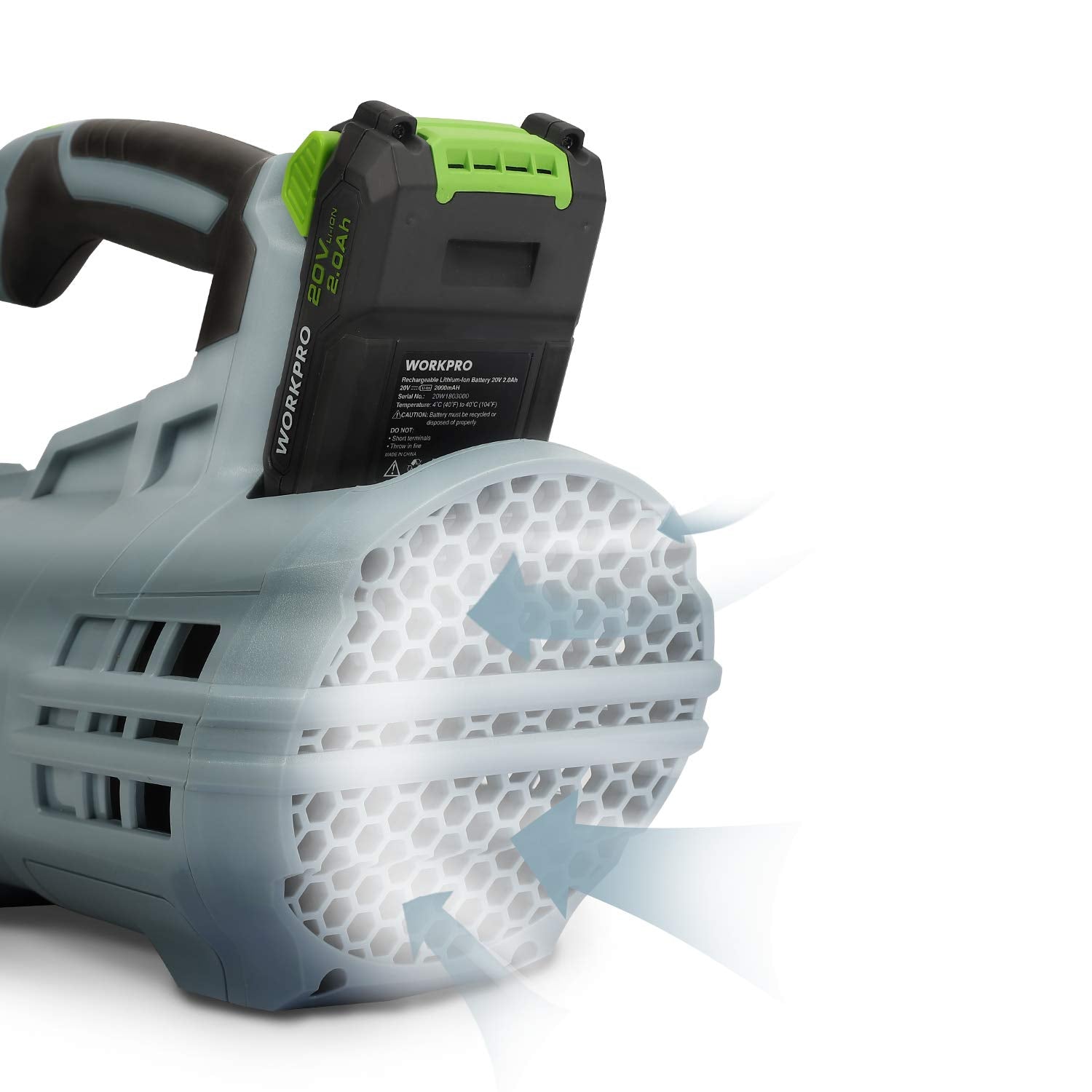 WORKPRO 20V Cordless Leaf Blower, Electric Gardening Tool Powered Sweeper, with 2.0Ah Battery and 1 Hour Quick Charger Included