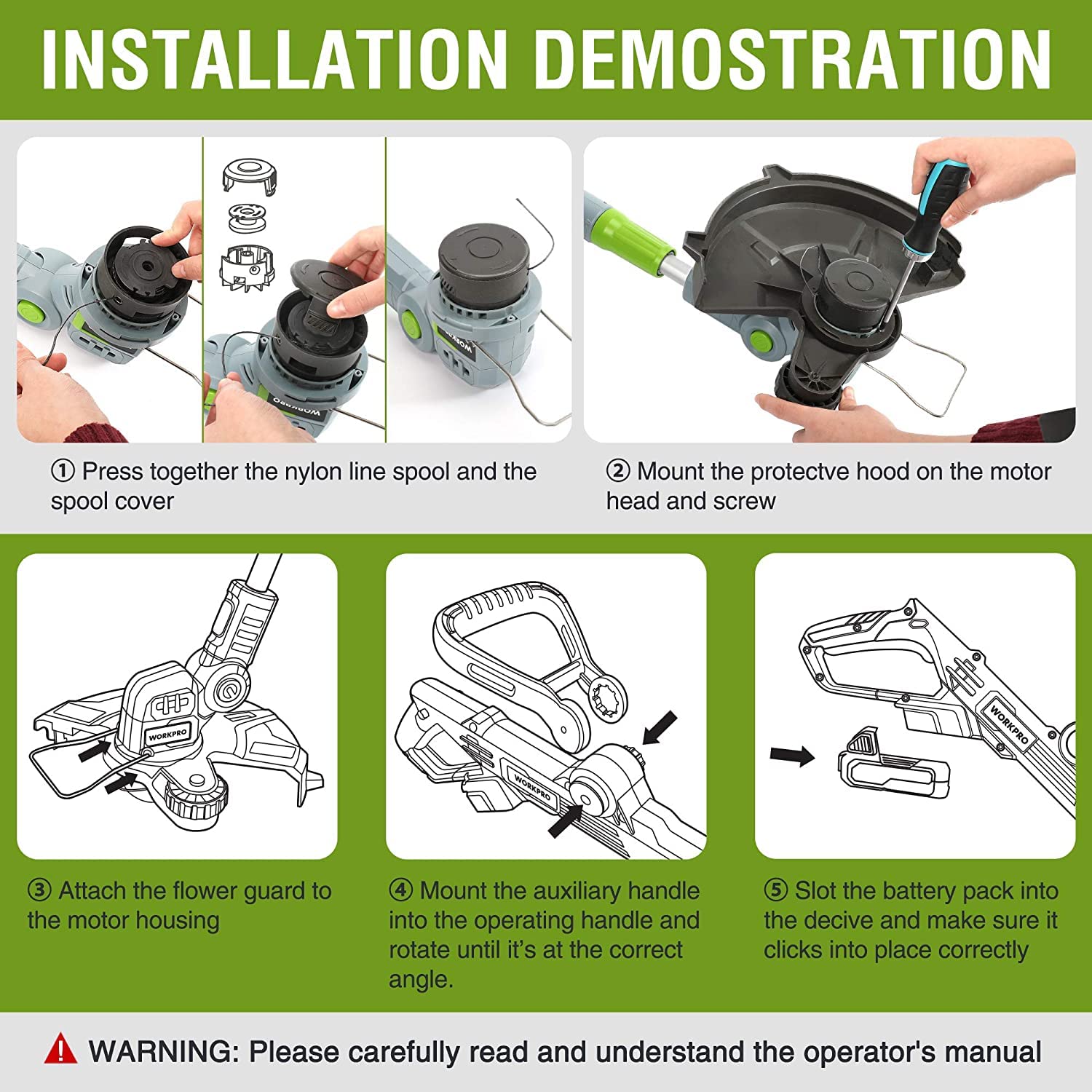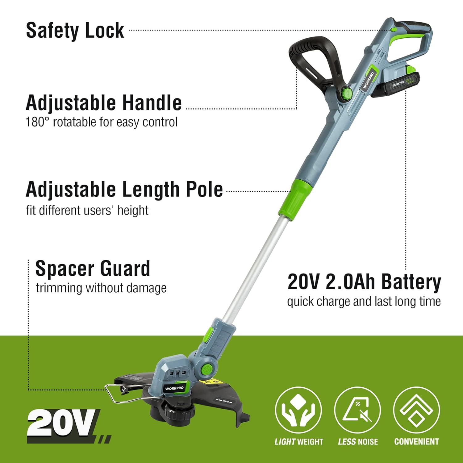 WORKPRO 20V Cordless String Trimmer/Edger, 12-inch, with 2Ah Lithium-Ion Battery, 1 Hour Quick Charger, 16.4ft Trimmer Line Included
