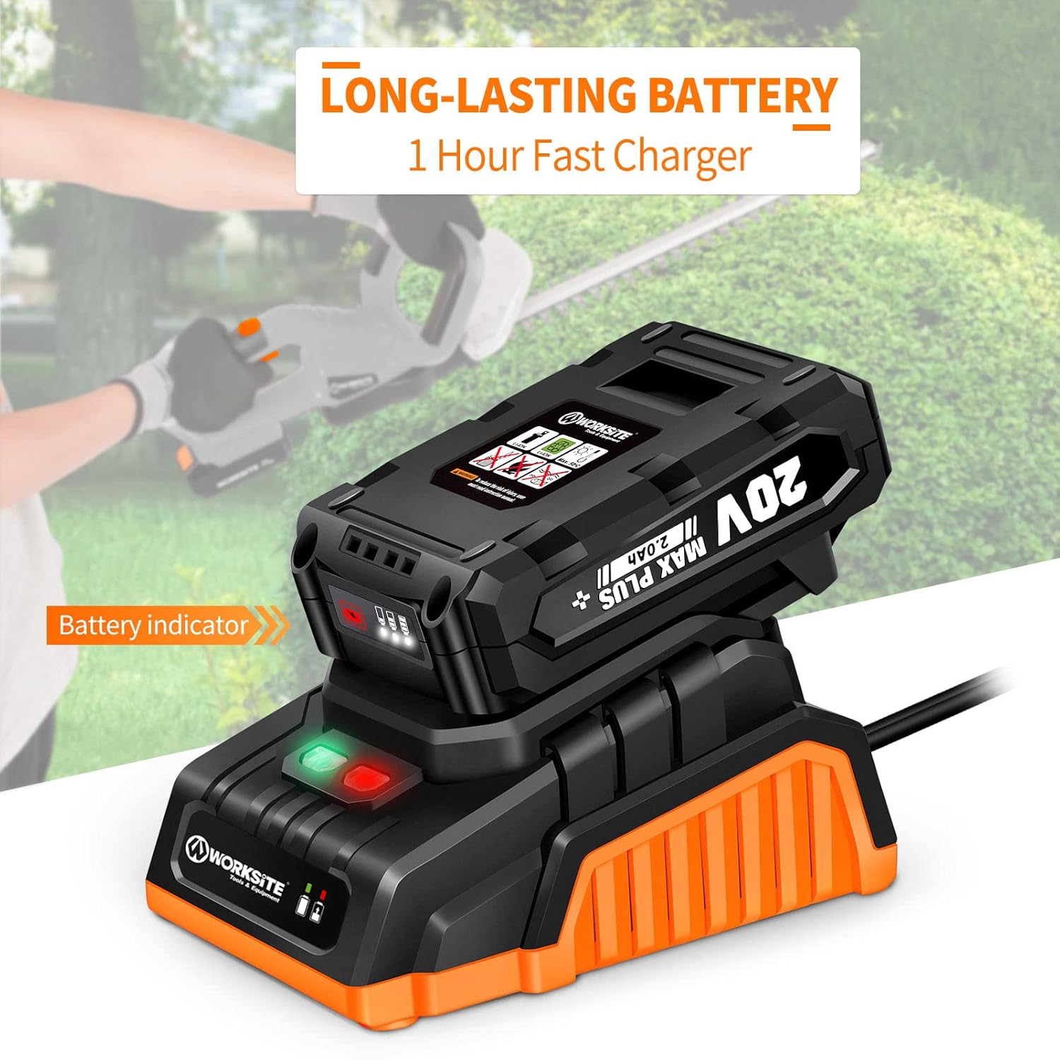 WORKSITE 20V Hedge Trimmer Cordless, Lightweight Bush Trimmer with 20-Inch Dual Steel Blade, Battery & Fast Charger Included
