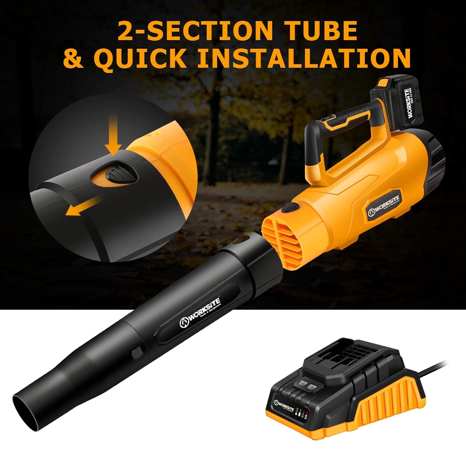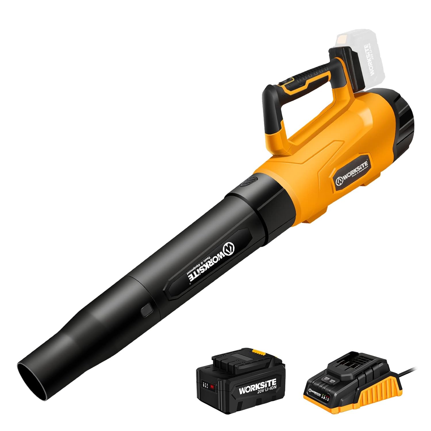 WORKSITE Leaf Blower, 20V Cordless Electric Handheld Lightweight Blower Battery Powered, 330 CFM with Variable Speed, 4.0A Battery & Charger Included, WORKSITE