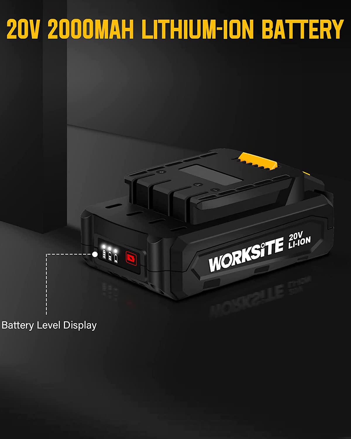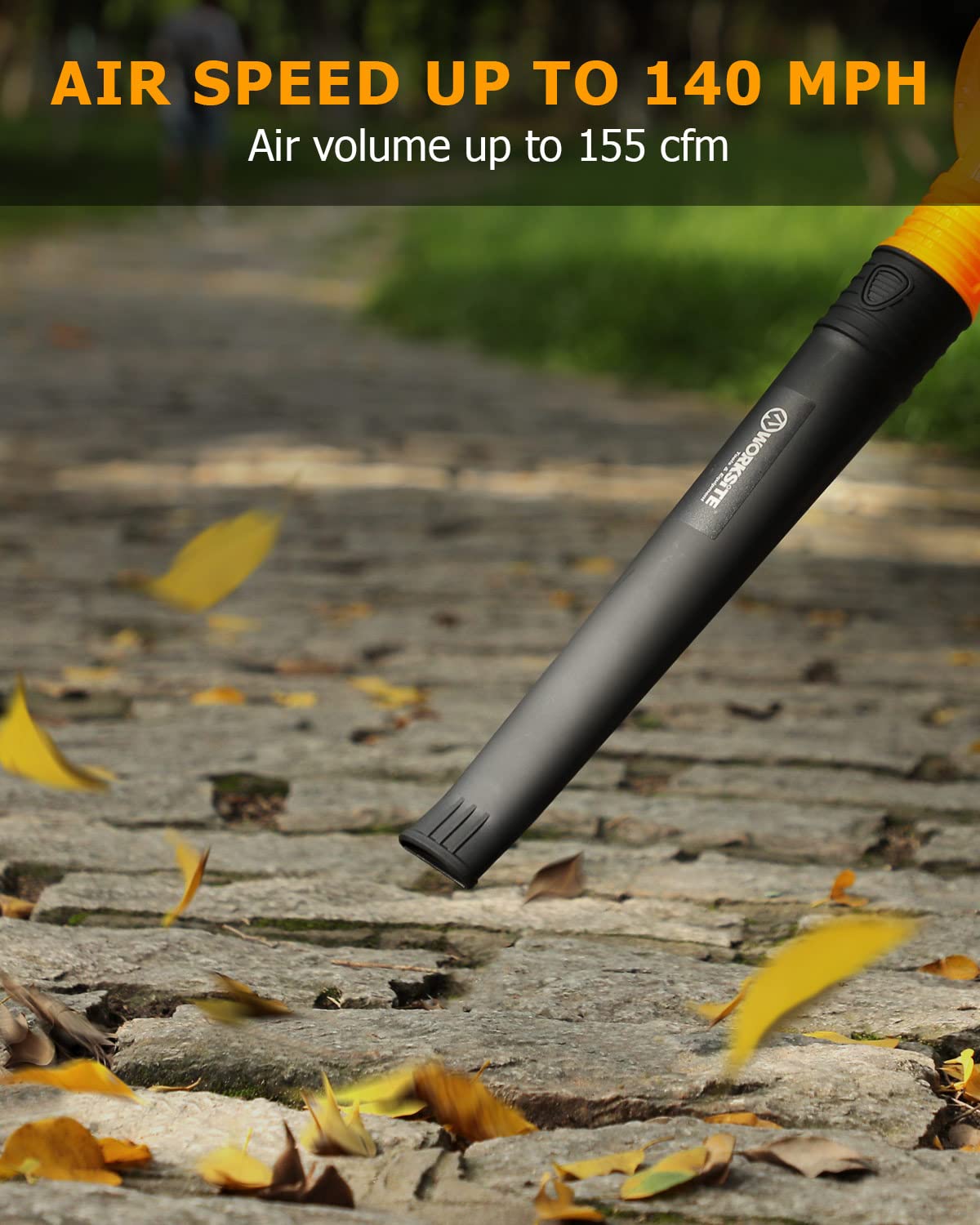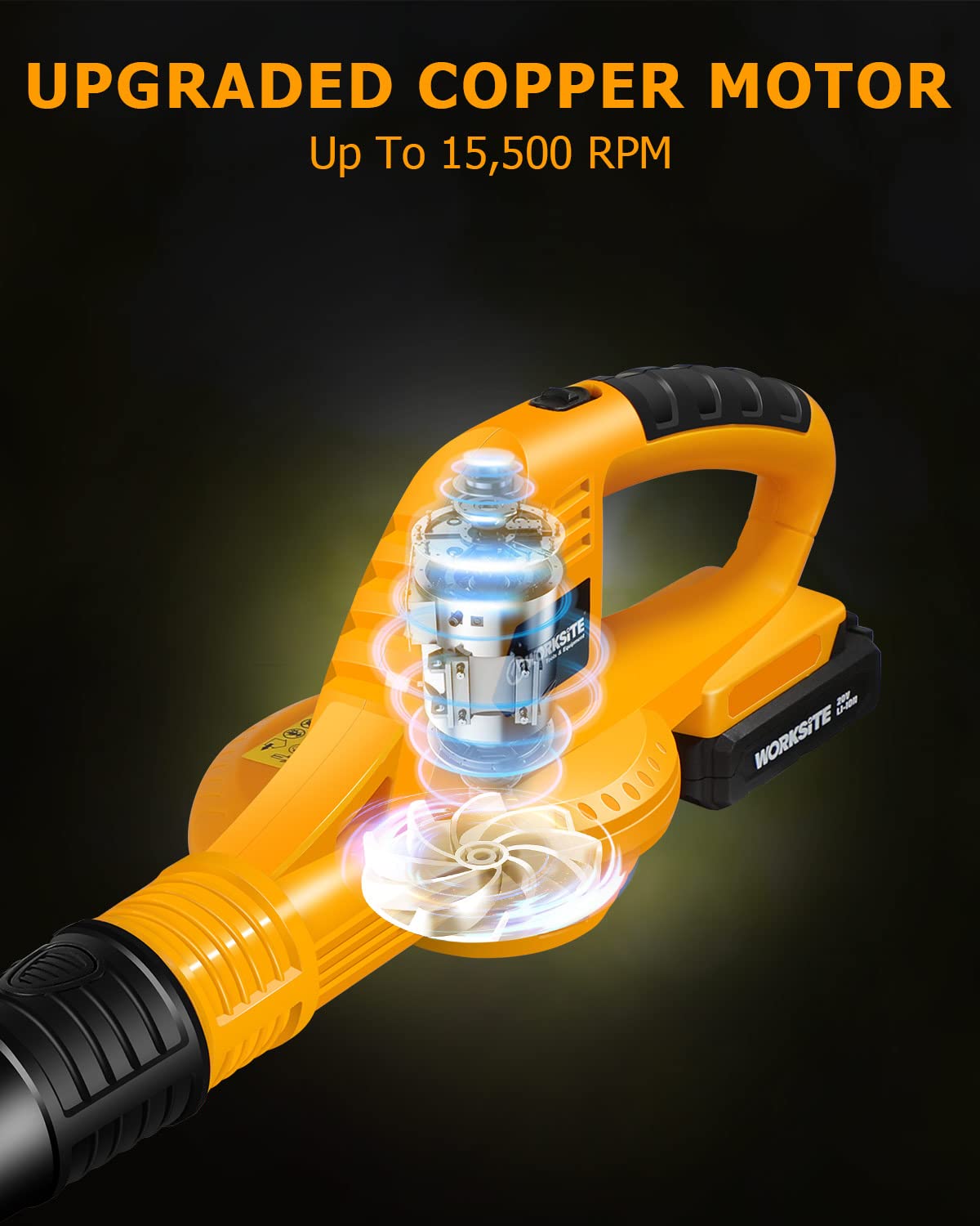 WORKSITE Leaf Blower, 20V Cordless Leaf Blower, 140 MPH 155 CFM Battery Powered Leaf Blower with 2.0Ah Battery & Fast Charger