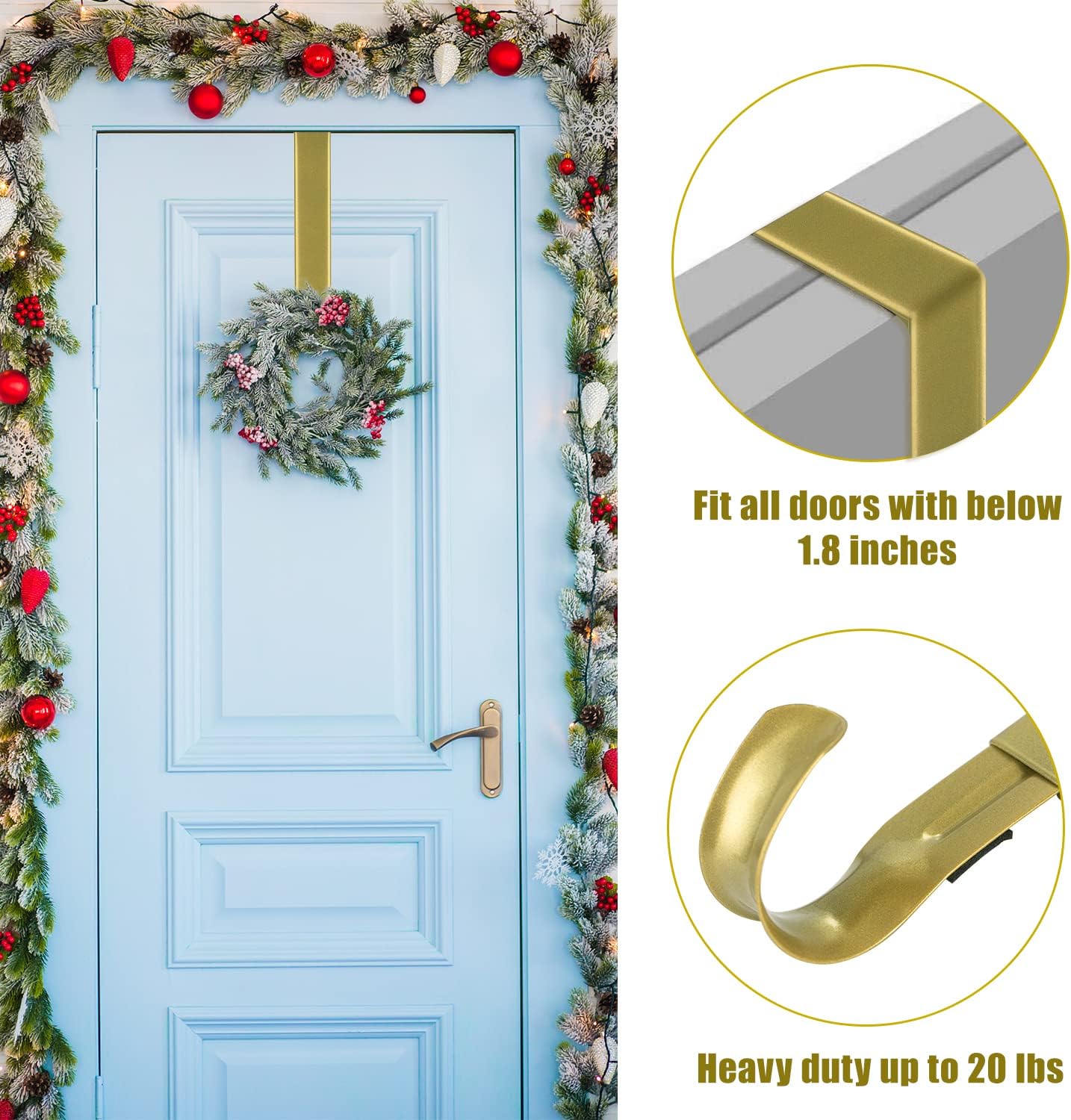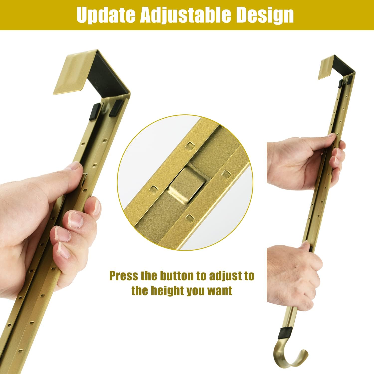 Wreath Hanger for Front Door, Adjustable Wreath Door Hanger Gold Wreath Holder Over The Door Hooks from 15-25inch for Christmas Wreath Decor