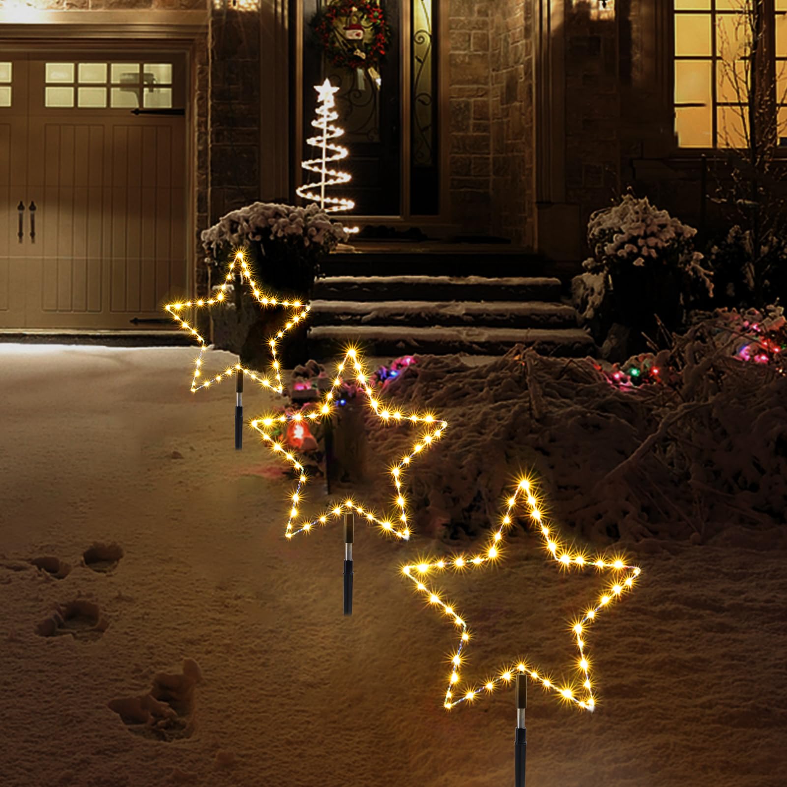 Wuhoo Pathway Lights 3 Pack Christmas Pathway Star Lights Christmas Decorations 8 Modes Waterproof Led Garden Stake Lights for Outdoor Walkway Yard Lawn Porch Party (Warm White)