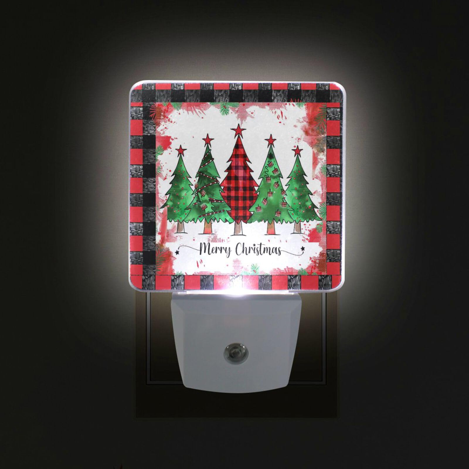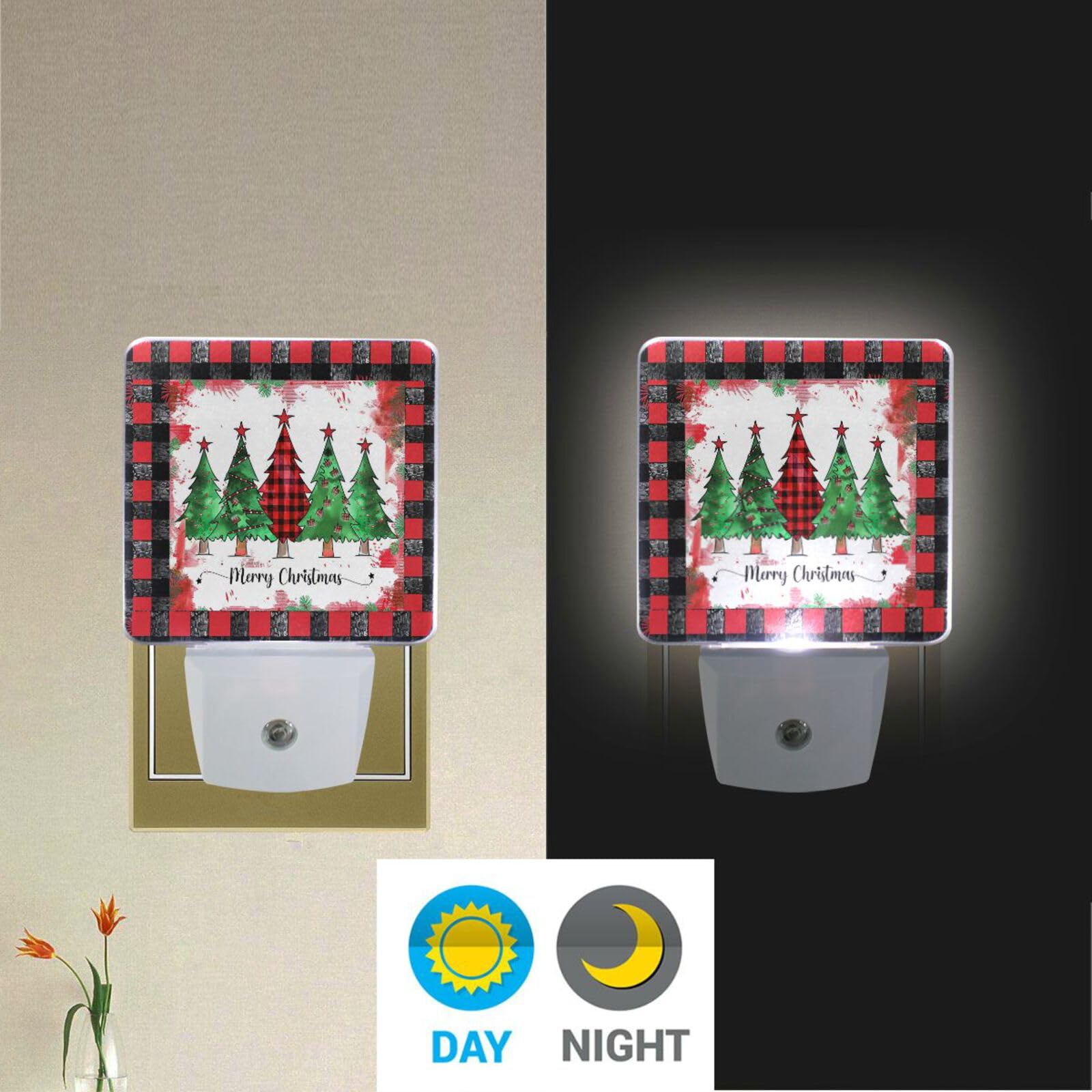 Wusikd Christmas Trees Night Light Set of 2 Buffalo Plaid Plug-in LED Nightlights Auto Dusk-to-Dawn Sensor Lamp for Bedroom Bathroom Kitchen Hallway Stairs Decorative