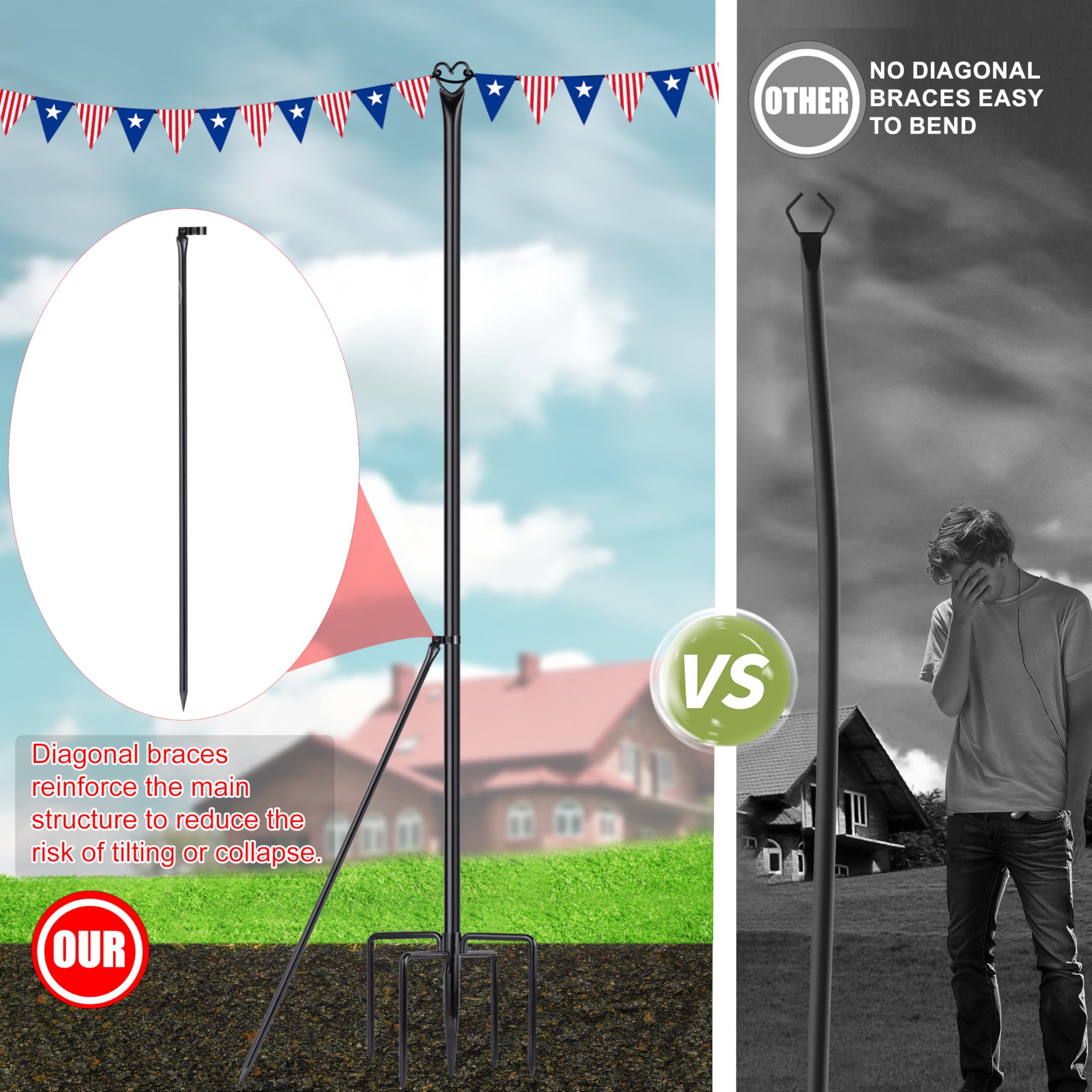 XDW-S String Light Pole - Steel Poles for Outdoor String Lights Hanging, Garden, Backyard, Patio Lighting Stand for Parties, Christmas, Wedding, 2 Pack