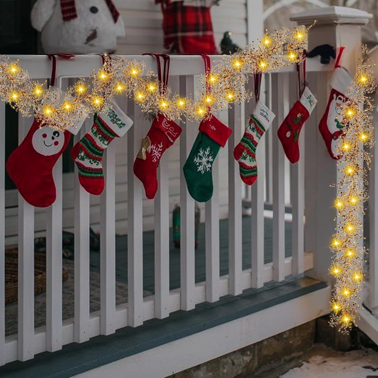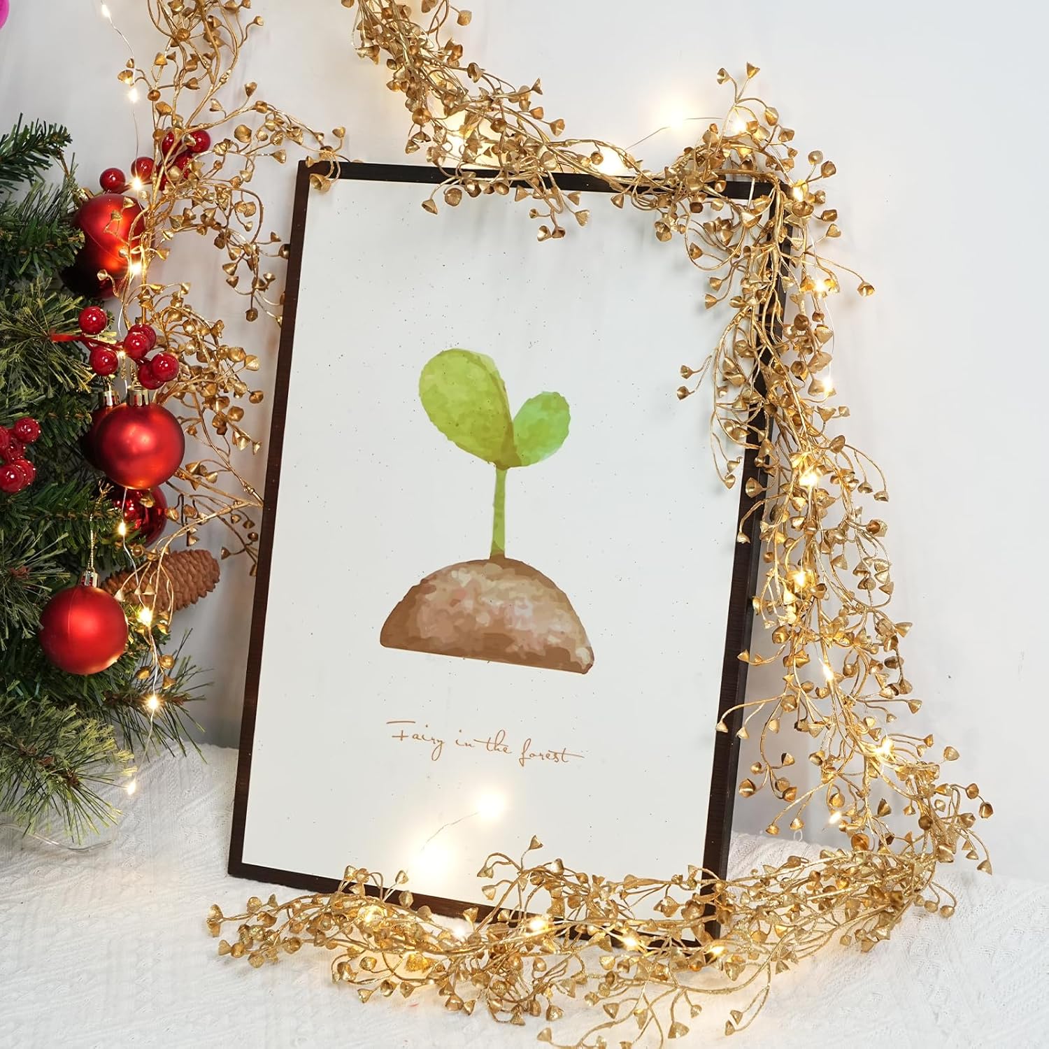 XHXSTORE 2 Pack Gold Christmas Garland 5.9 FT Berry Garland with Warm Lights Christmas Tree Garland Indoor for Home Mantel Fireplace Xmas Tree Party Holiday Winter Christmas Decorations