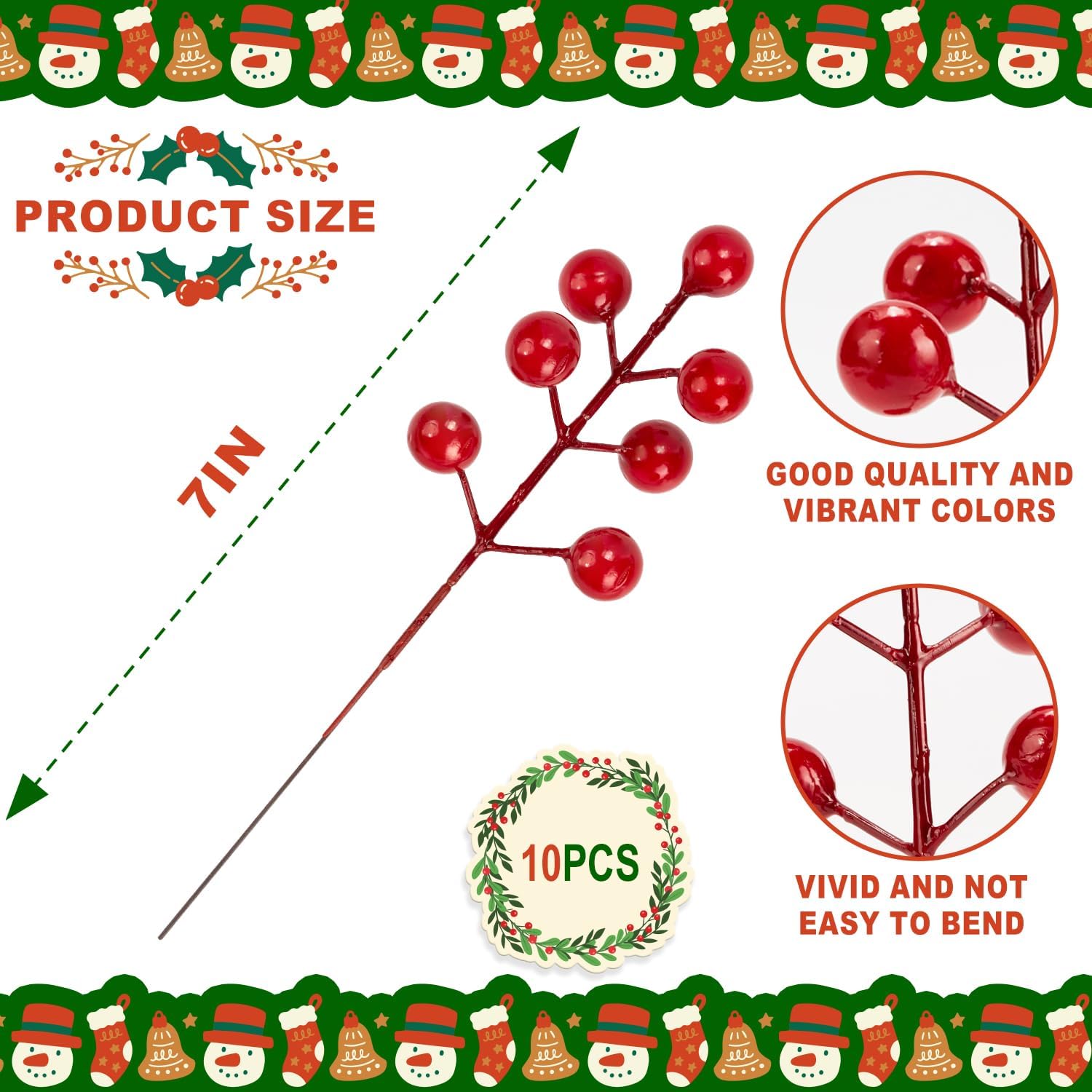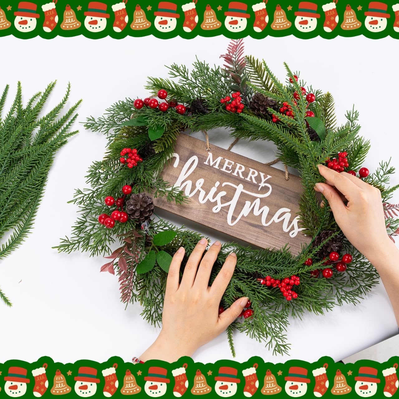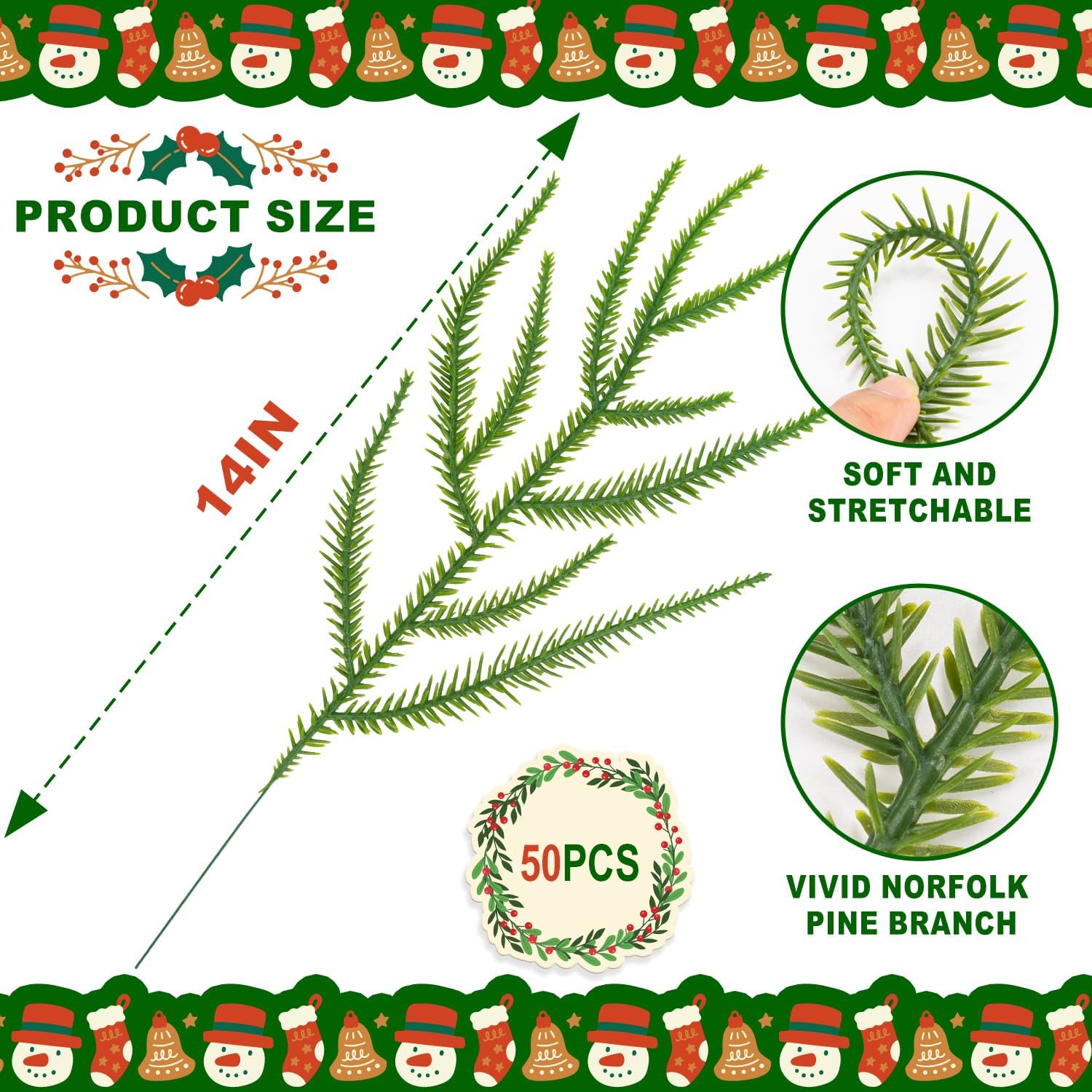 XIFAN 60 Pcs Christmas Norfolk Pine Branches and Red Berry Stems, 14'' Artificial Pine Picks, Faux Greenery for DIY Crafts, Indoor/Outdoor Garland, Wreath, and Home Decoration