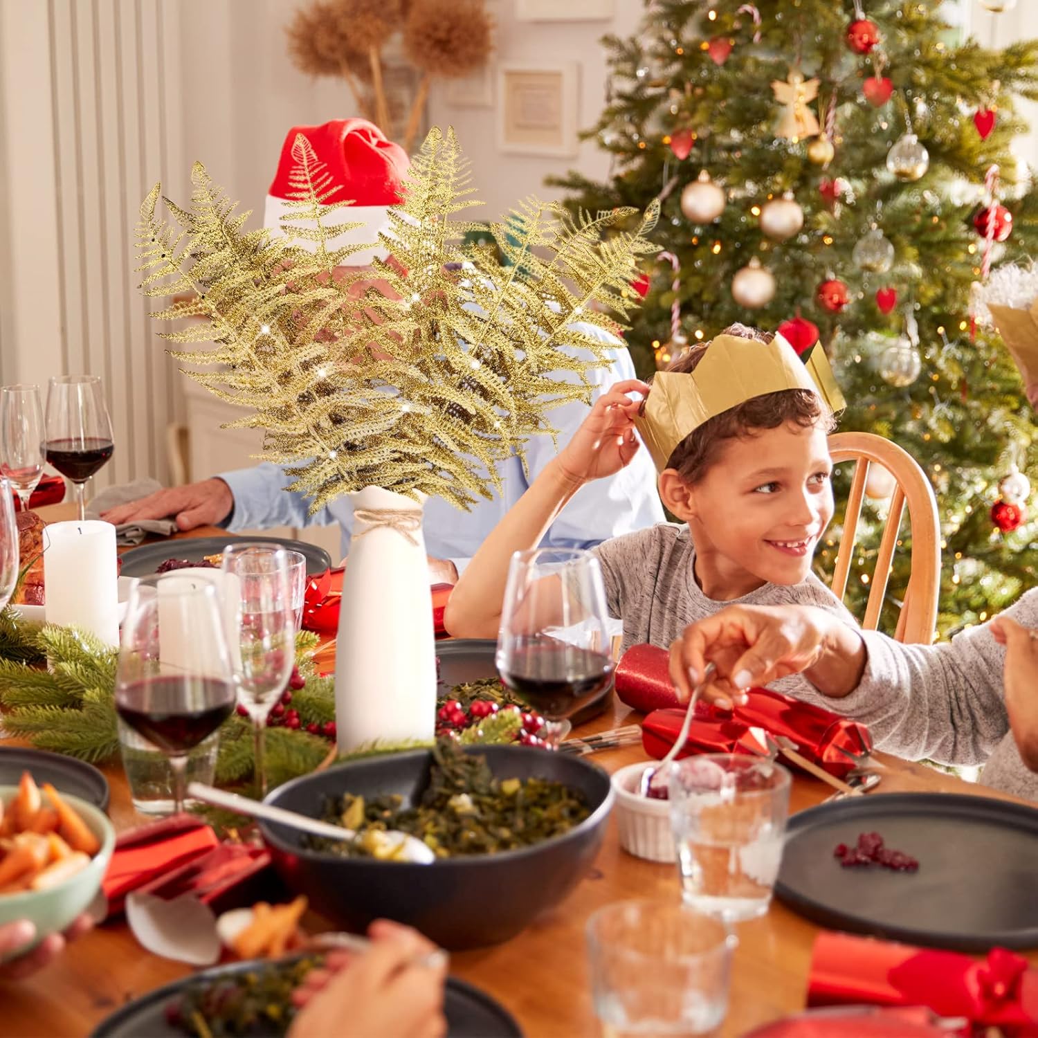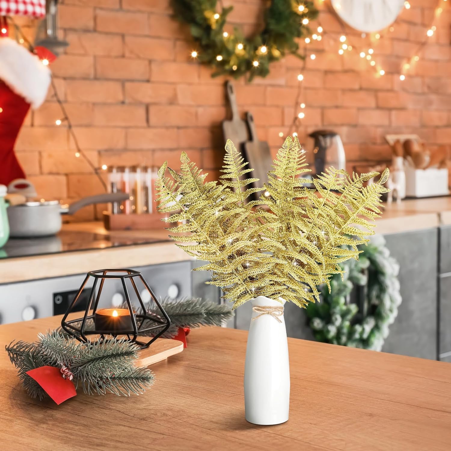 Xinnun Christmas Glitter Leaves Artificial Tropical Leaf Christmas Tree Sprays Glitter Leaf Garland Flashing Christmas Picks DIY Bouquet Stem Floral Branches for Wedding Xmas Wreath (Gold,48 Pcs)