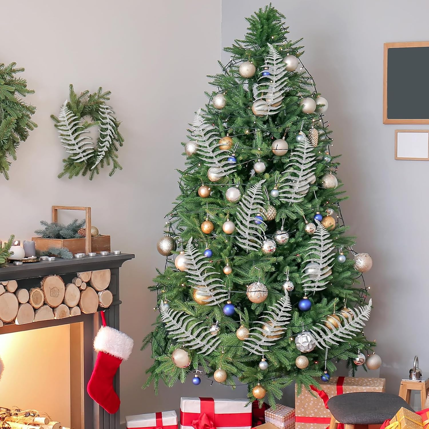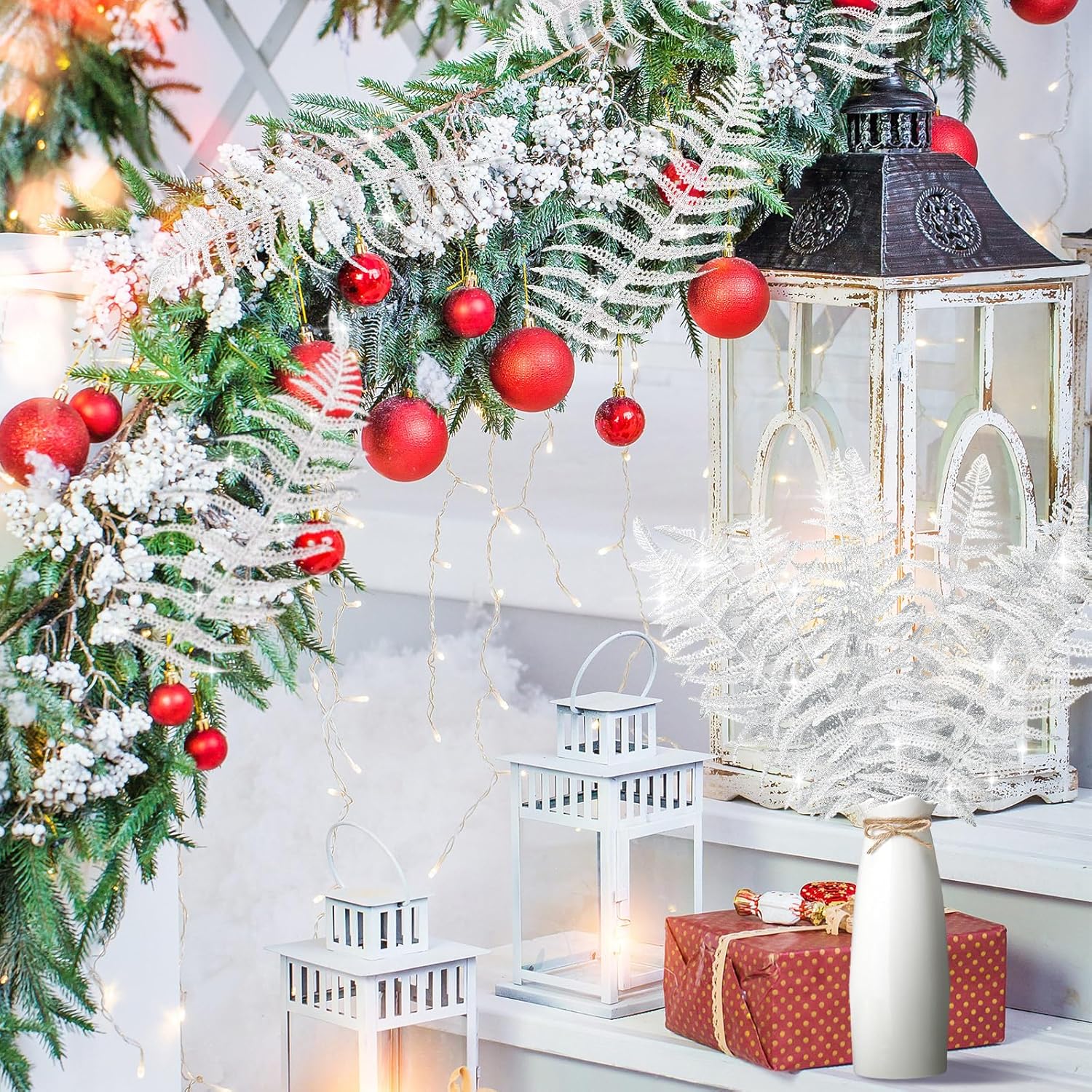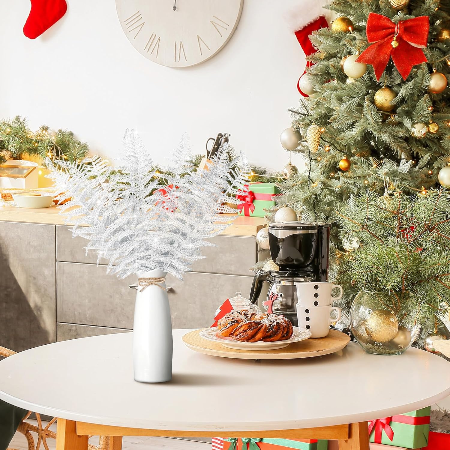 Xinnun Christmas Glitter Leaves Artificial Tropical Leaf Christmas Tree Sprays Glitter Leaf Garland Flashing Christmas Picks DIY Bouquet Stem Floral Branches for Wedding Xmas Wreath (White,12 Pcs)