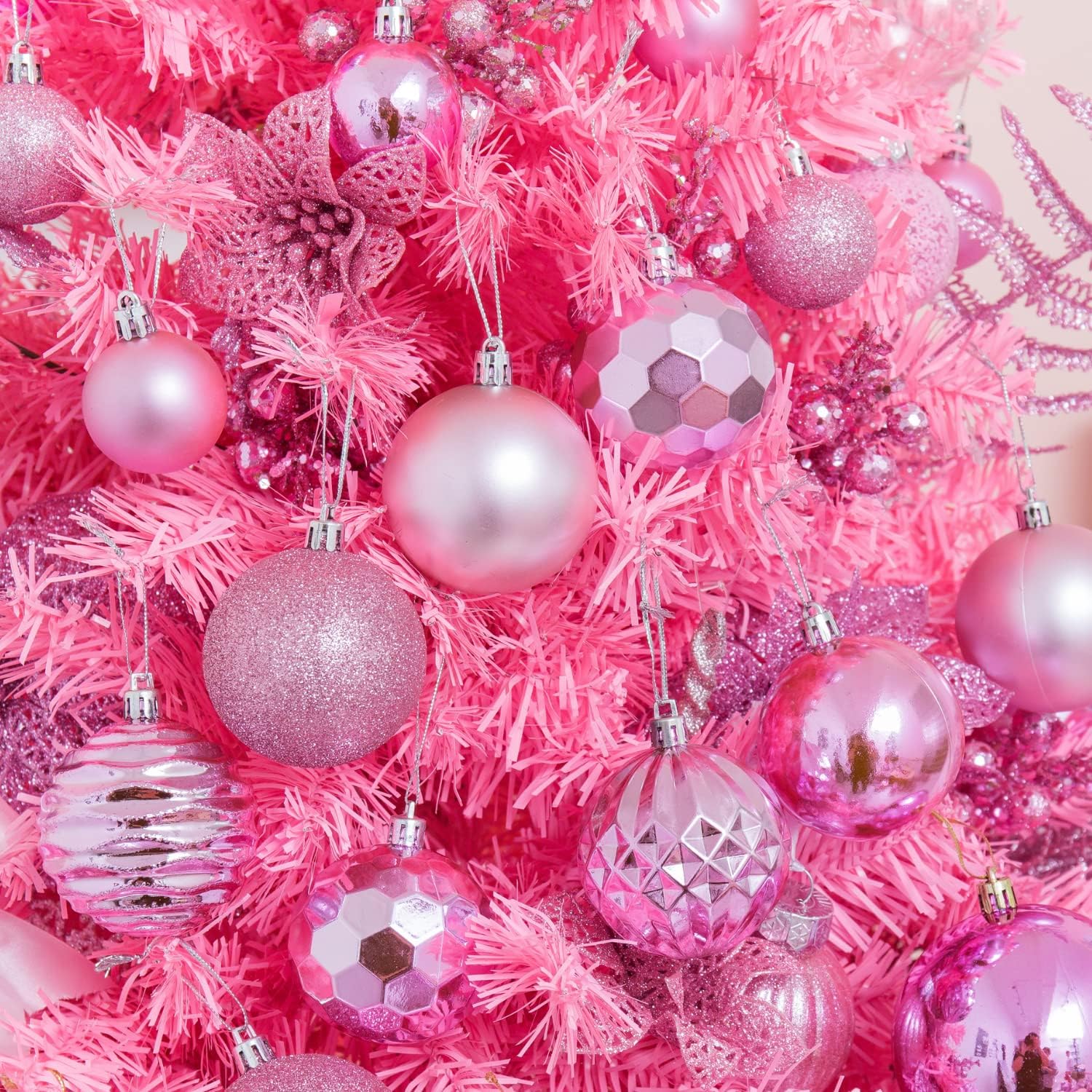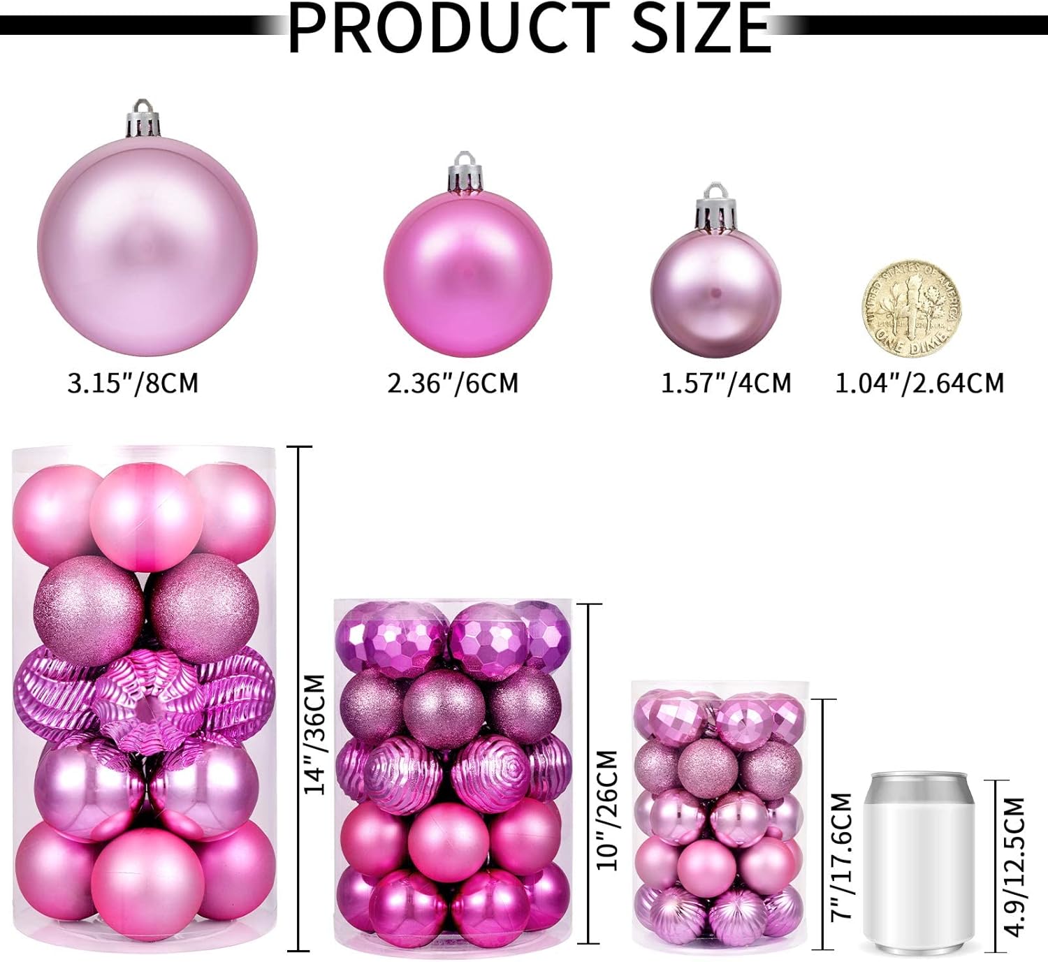 XmasExp 60mm/2.36" Christmas Ball Ornaments Shatterproof Christmas Ornaments Set Decorations for Xmas Tree Balls - 24ct (2.36'', Pink)