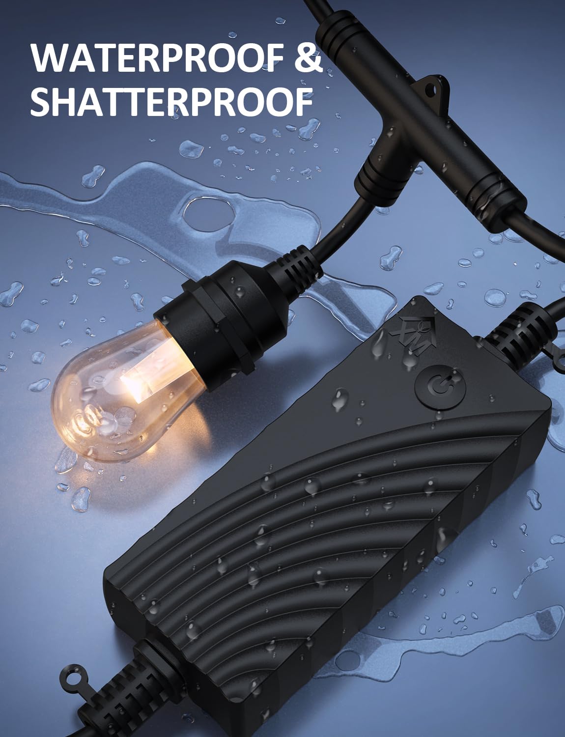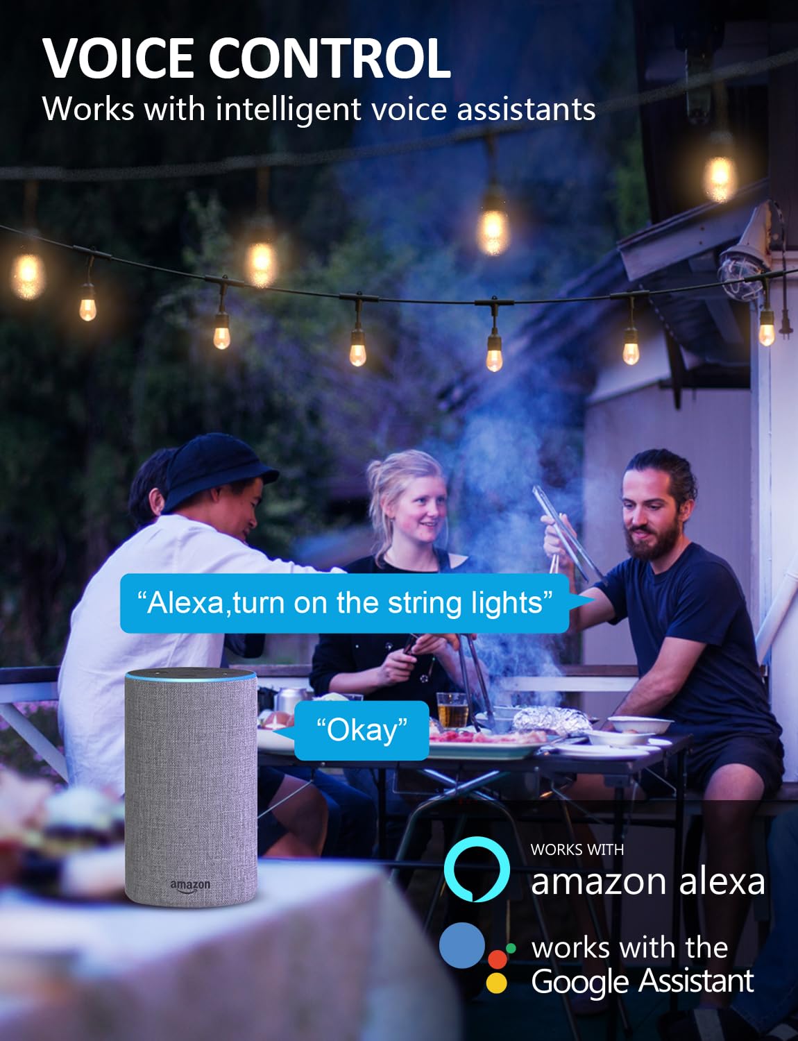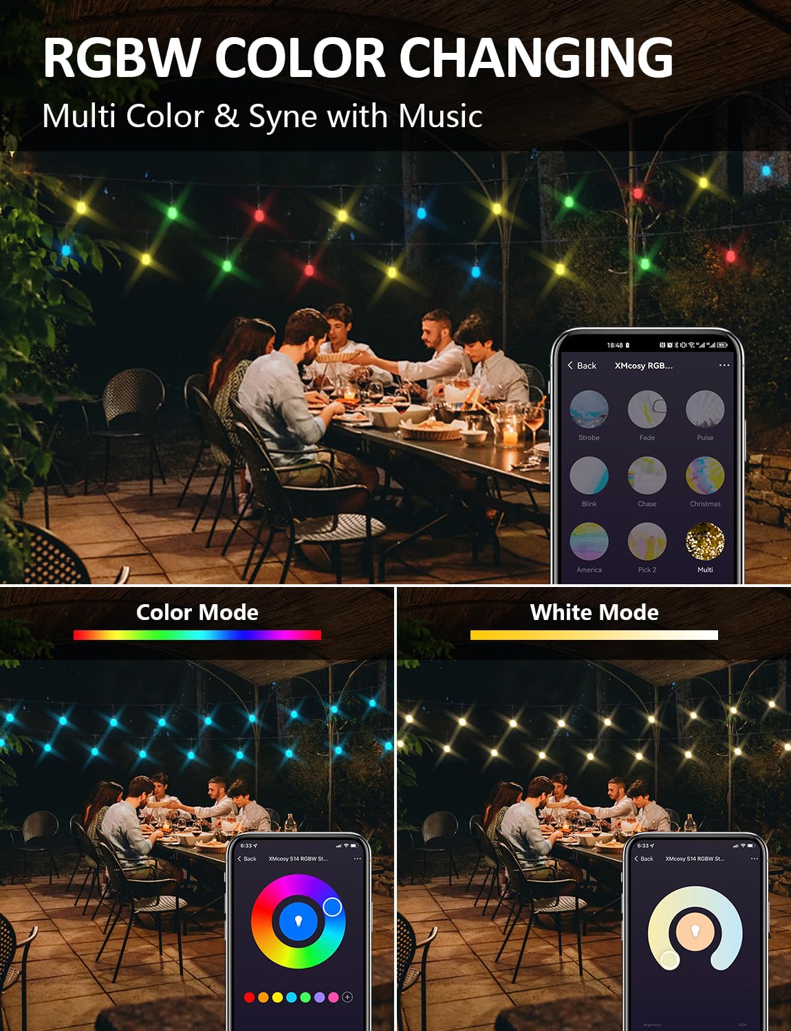 XMCOSY+ Outdoor String Lights, Smart 98Ft RGBW Patio Lights Waterproof, App Control, Work with Alexa, Color Changing LED String Light for Outside Yard