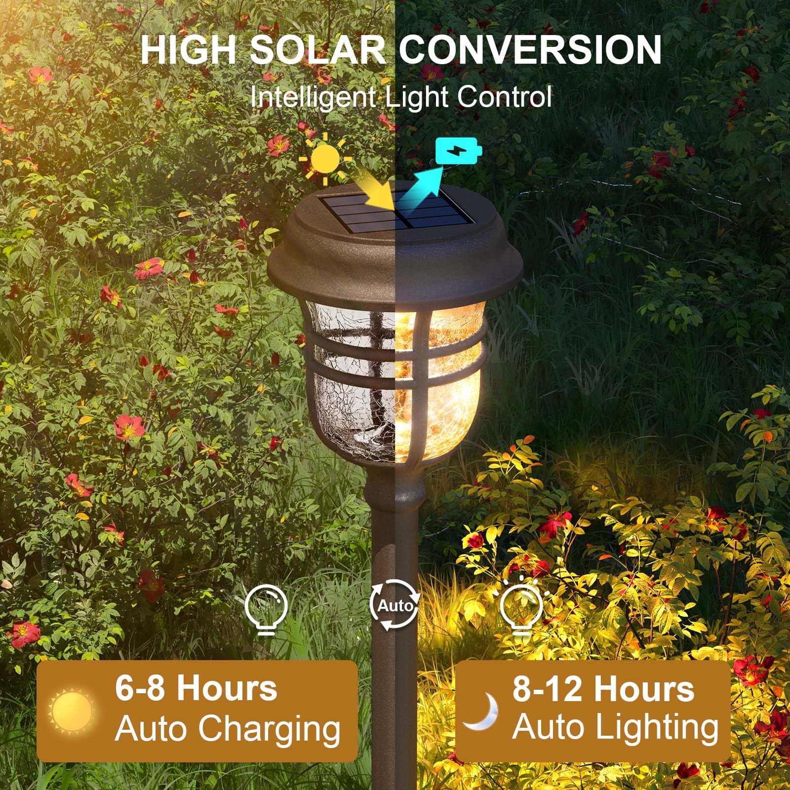 XMCOSY+ Solar Outdoor Lights, 2 Lighting Modes RGBW LED Solar Garden Lights, Solar Pathway Lights, IP65 Waterproof Solar Powered for Yard Patio Walkway Driveway (6 Pack, Warm White & RGB)