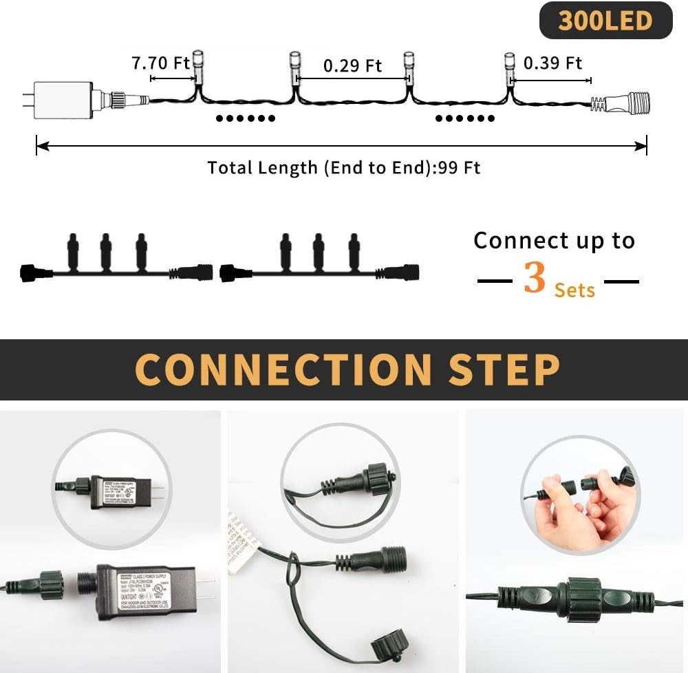 XTF2015 105ft 300 LED Christmas String Lights, End-to-End Plug 8 Modes Christmas Lights - UL - Outdoor Indoor Fairy Lights Christmas Tree, Patio, Garden, Party, Wedding, Holiday (Multicolor)