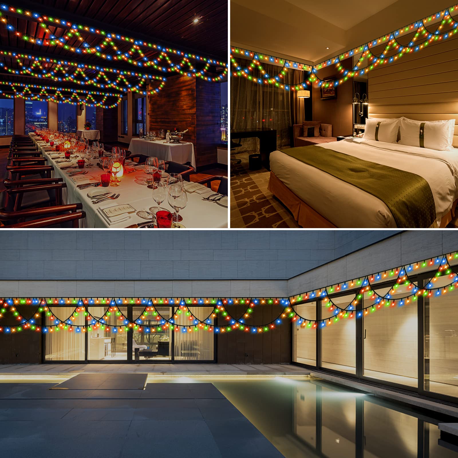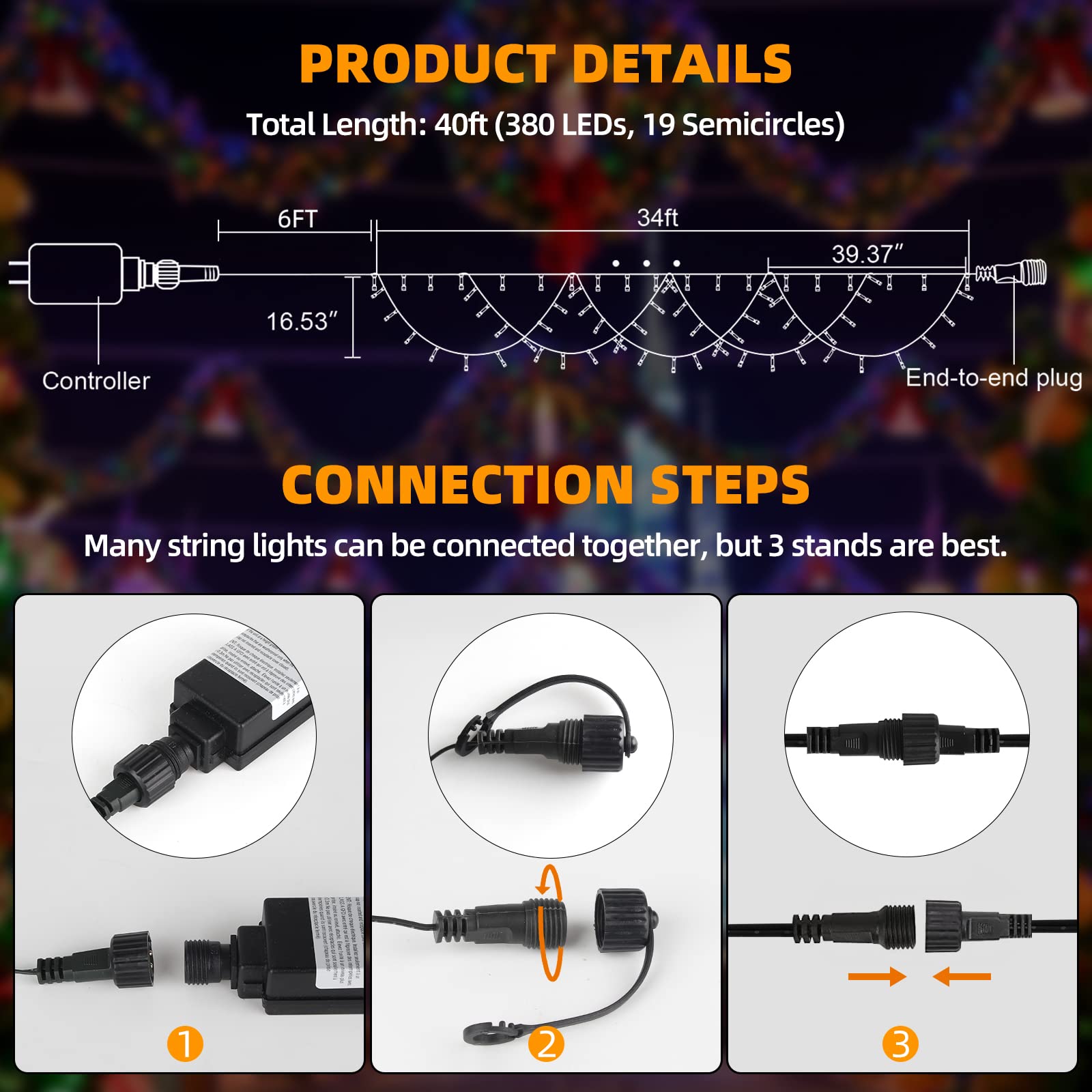 XTF2015 Christmas Lights Outdoor Color Changing 40FT 380 LED Christmas String Lights Extendable 8 Modes, Waterproof Half-Round Christmas Lights for House Roof Eaves Garden Patio(Multicolor)