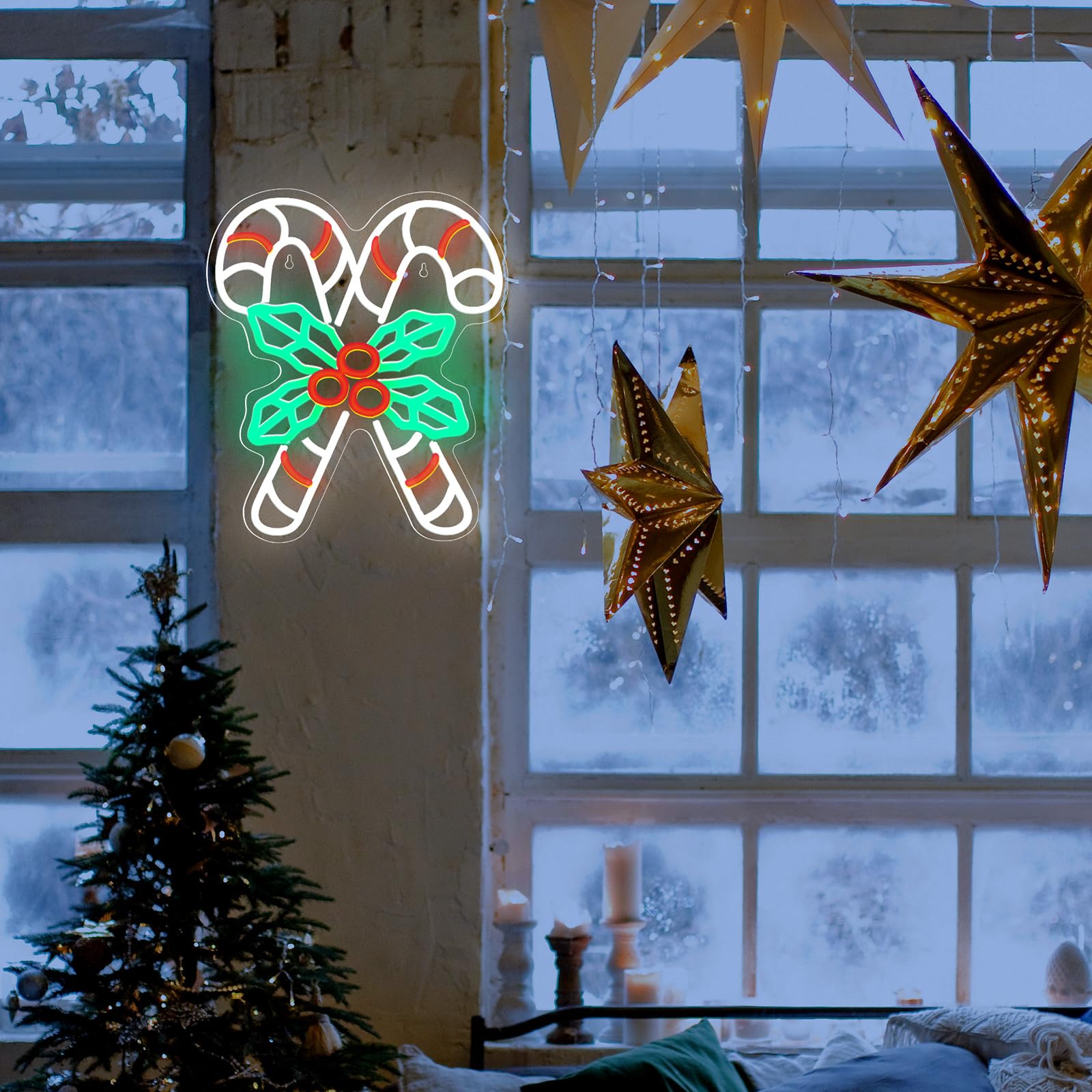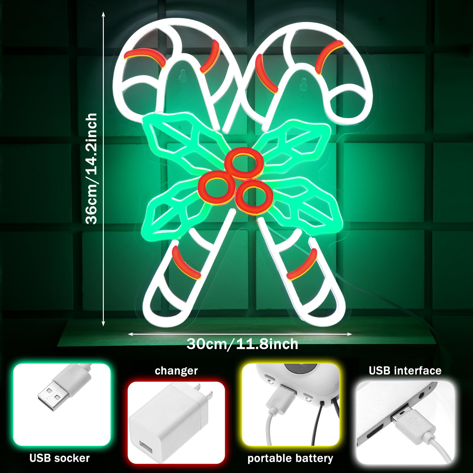 Candy Designed: light your holiday festivities with the candy neon sign, featuring a charming candy design, adding a touch of vivid elegance, to celebrate in style and create a joyful atmosphere, attract your guests with its exquisite craftsmanship Reliable and Serviceable: crafted with quality clear acrylic and LED, vivid and cute, the LED neon light ensures a lasting and reliable addition to your Christmas collection, allowing you to enjoy its enchanting glow for many joyful times