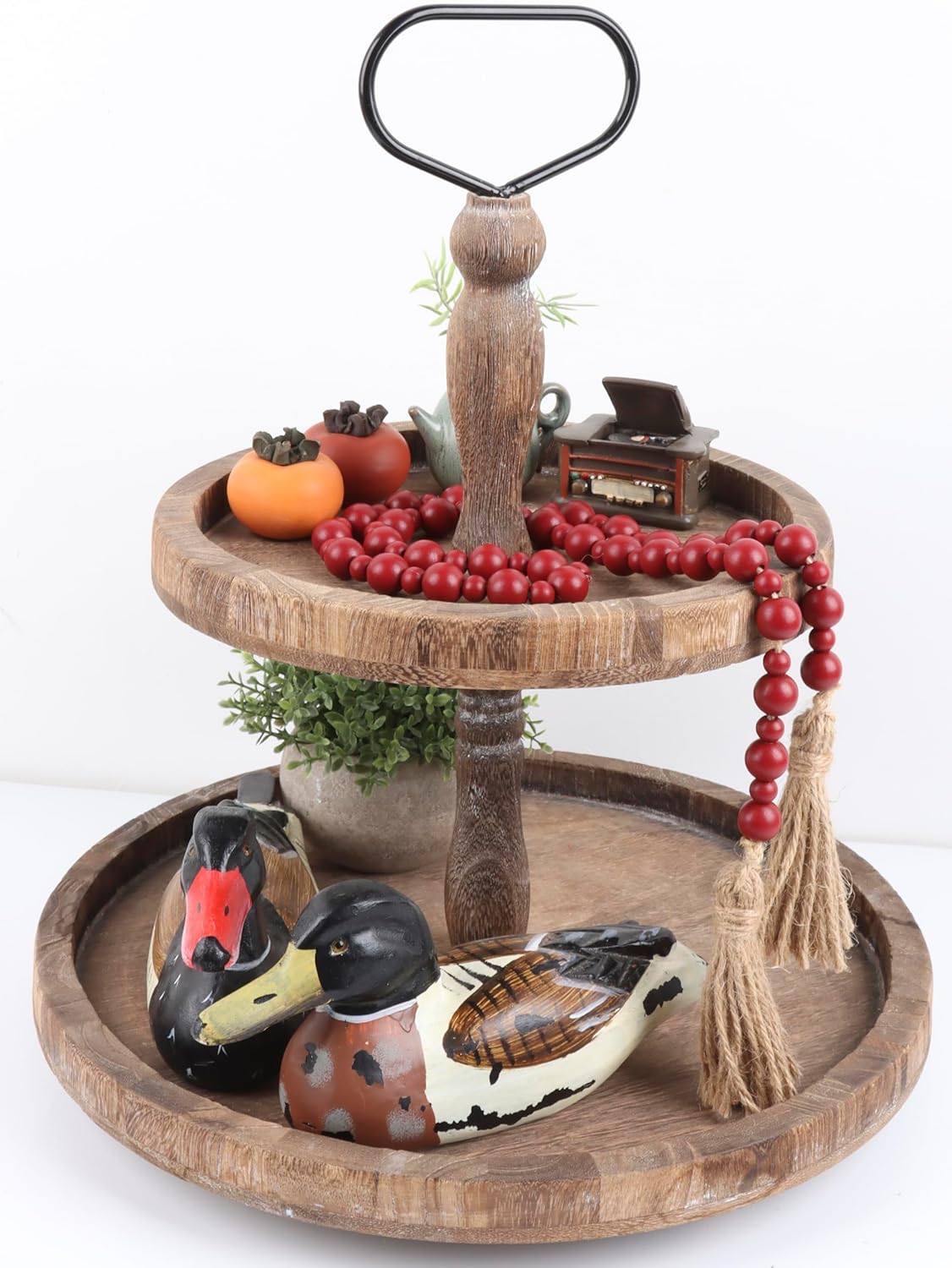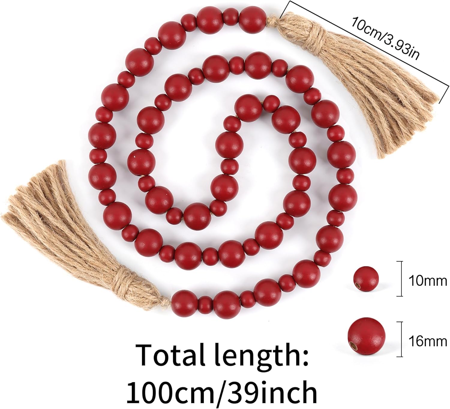 Yagoo Wood Bead Garland with Tassels, Farmhouse Rustic Decor Prayer Beads Boho Tassel Garland Decorative Beads for Home Decor (Burgundy)