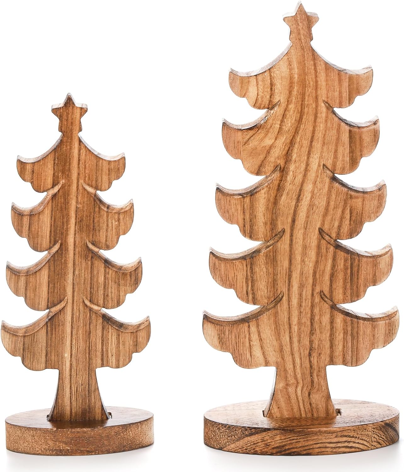 yarlung Set of 2 Wooden Christmas Trees, Standing Tabletop Christmas Decoration with Oval Base Rustic Wood Trees for Hanging Christmas Ornament, Farmhouse Decor, Home, Office, 2 Sizes