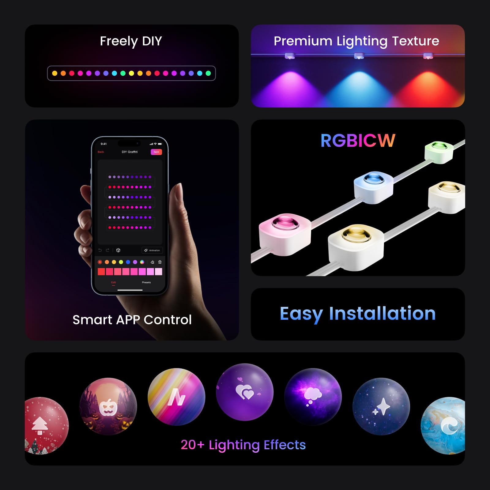 YEELIGHT Smart Outdoor Permanent String Light, 50 Ft, 20+ Lighting Effect, RGBIC LEDs, Music Sync, APP Control for DIY, IP67 Waterproof, lighting decoration for Eaves/Halloween/Christmas/Party/Holiday