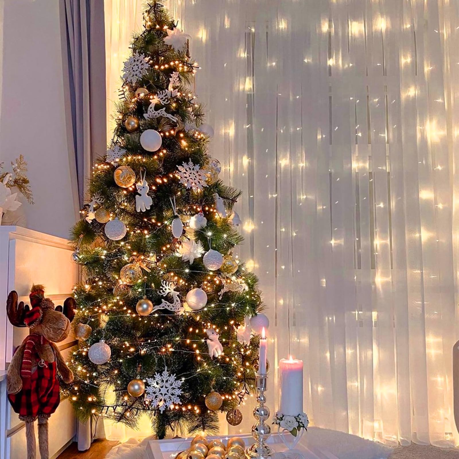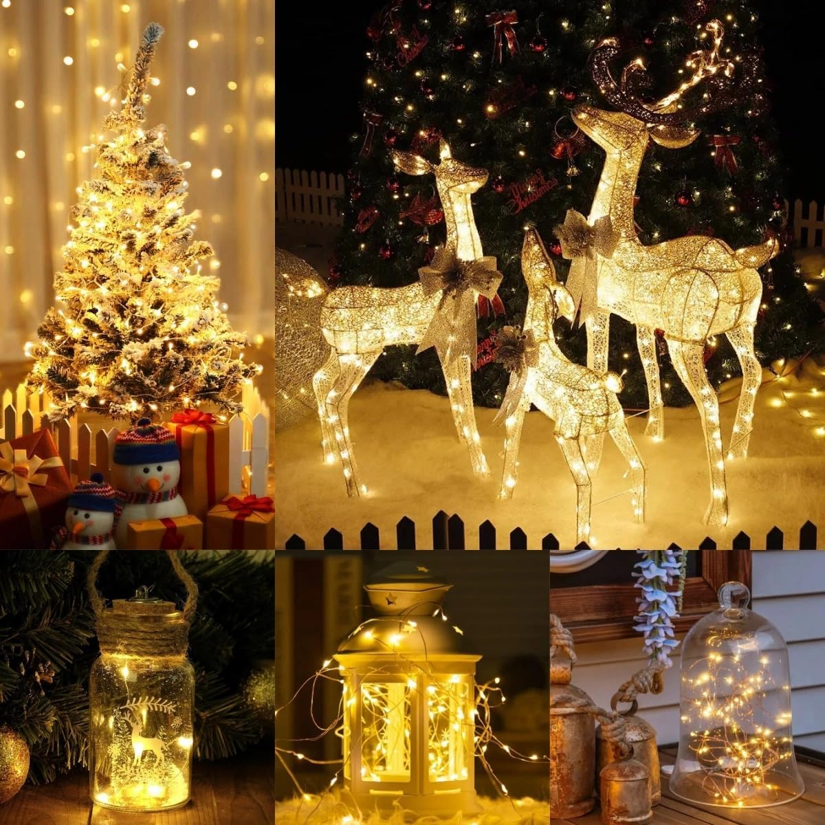 • Brilliant Outdoor Decor: 100 LED starry-style fairy lights with warm white light accent your space with a unique, inviting glow. 33ft length is perfect to put around a garden or porch railing.They were the finishing touch for a back yard bbq, party, wreath, fence, patio, pools, bush, holiday, indoor, outdoor. In the dark, the wire fades to invisible, leaving only the fairy lights, create a classy and romantic atmosphere.