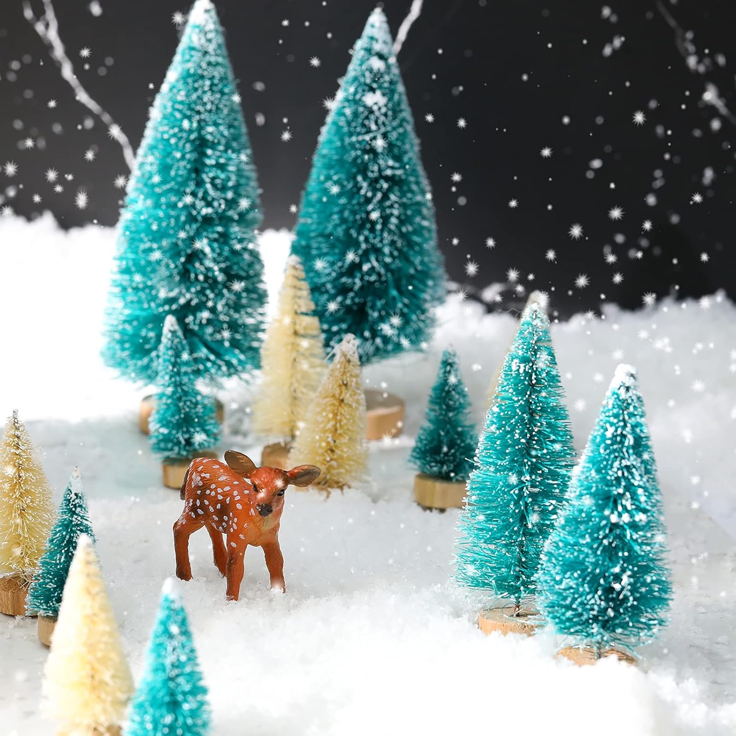 Package includes: the package comes with 28 pieces of artificial Christmas tree set, including 20 pieces of Christmas trees, 2 pieces of street lamps, 2 pieces of Christmas characters, 1 piece of snow blanket, 2 pieces of cute elks, and 1 pieces of small house(randomly send one out of four small houses), enough quantities are sufficient for you to meet your various DIY demands and replacementsQuality material: these miniature ornaments are made of different materials, the Christmas characters, street lamp, and houses are made of resin material, and the snow blanket is made of polyester, the artificial Christmas tree is made of jute silk plant fibre, and the elk is made of PVC material, which is safe and wear resistant, can support you for a long-term application
