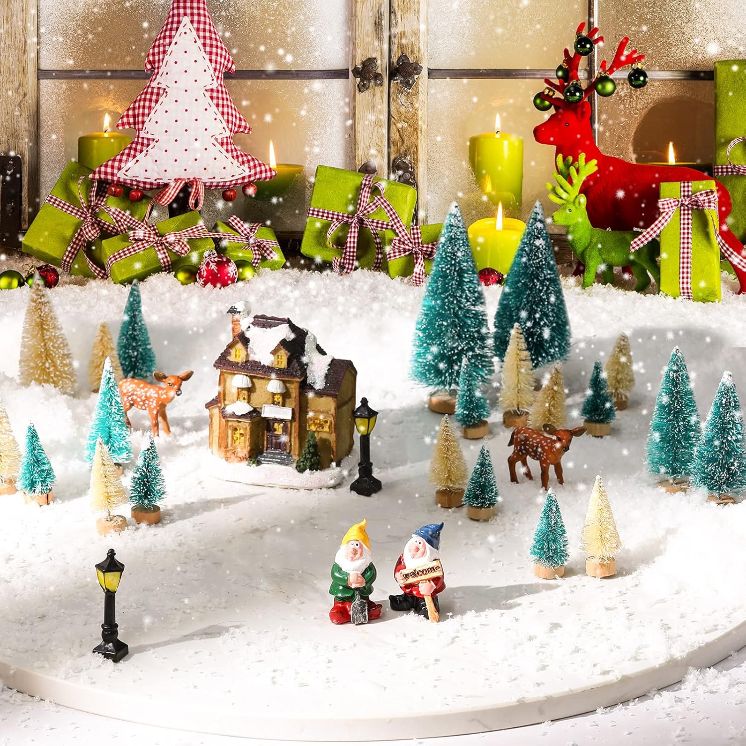 • Beautiful appearance: these decorative and vivid Christmas trees, elks, houses, street lamps, and houses are designed in a vivid appearance, cute and realistic, and the appealing color and attractive poses can well attract others' attentions